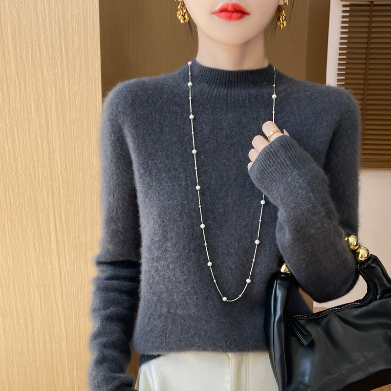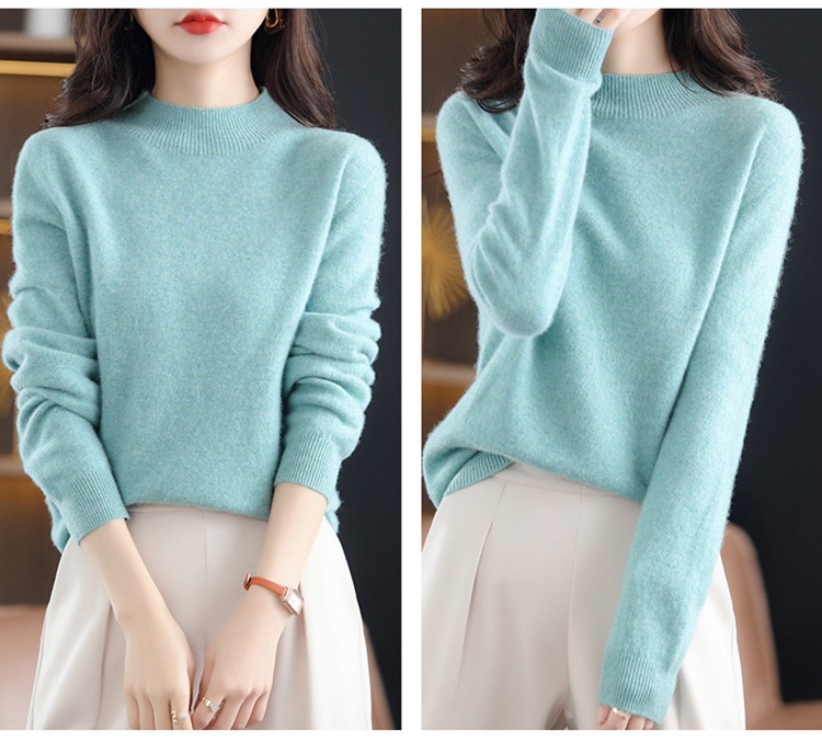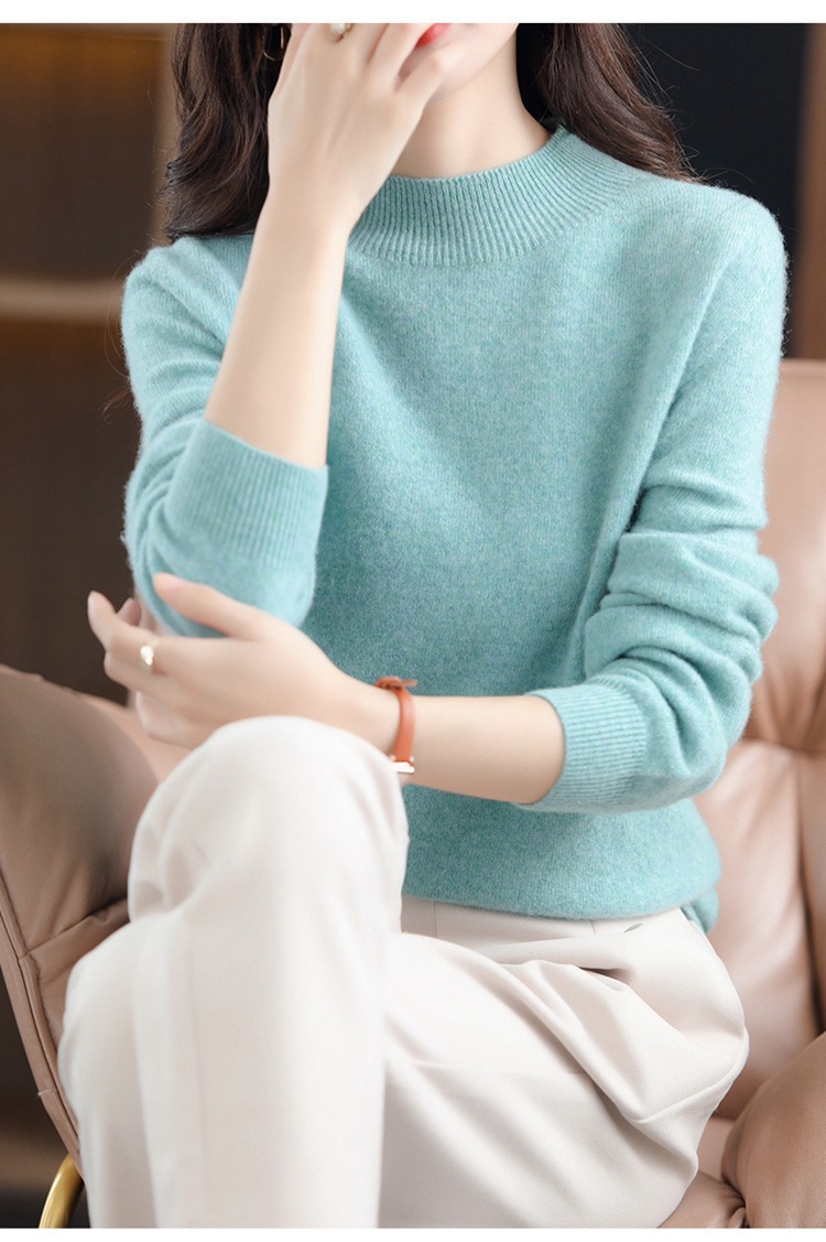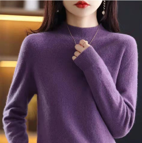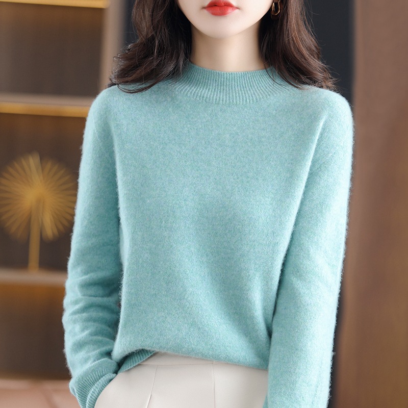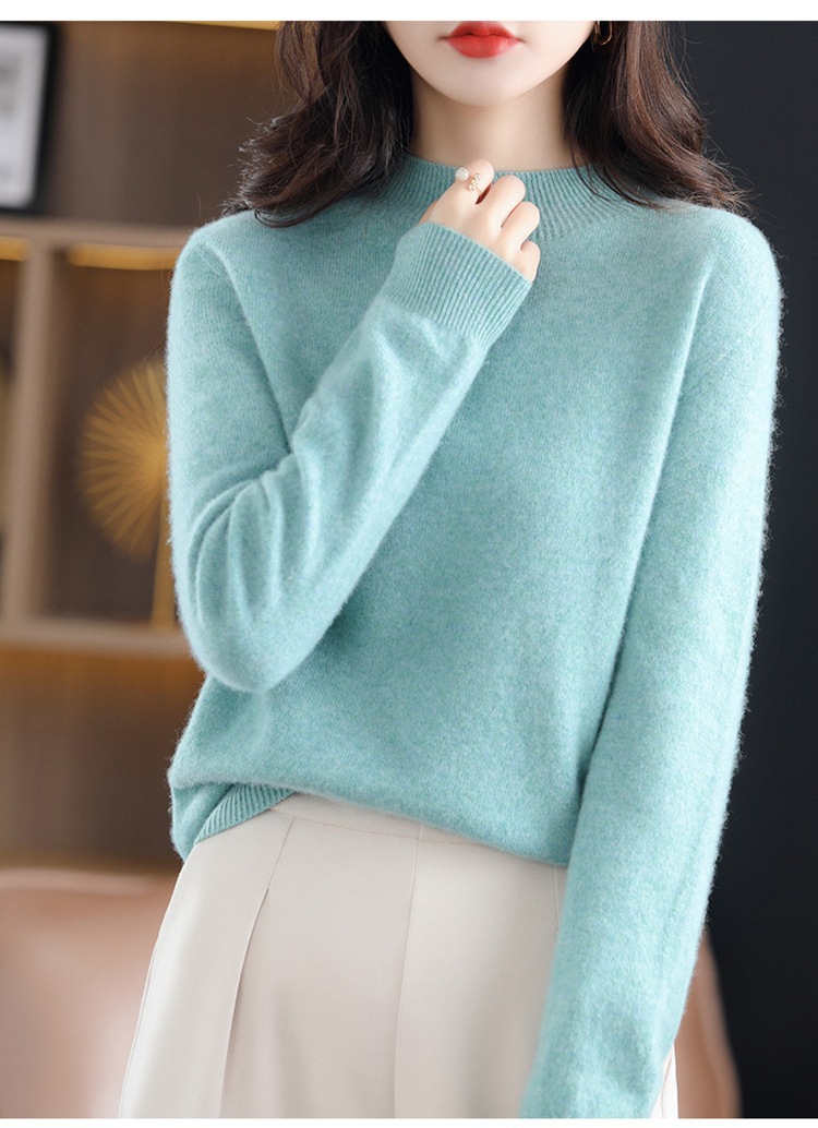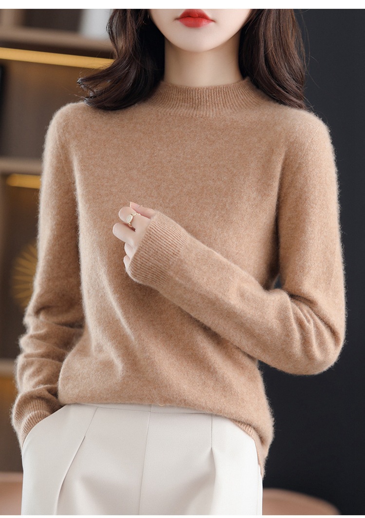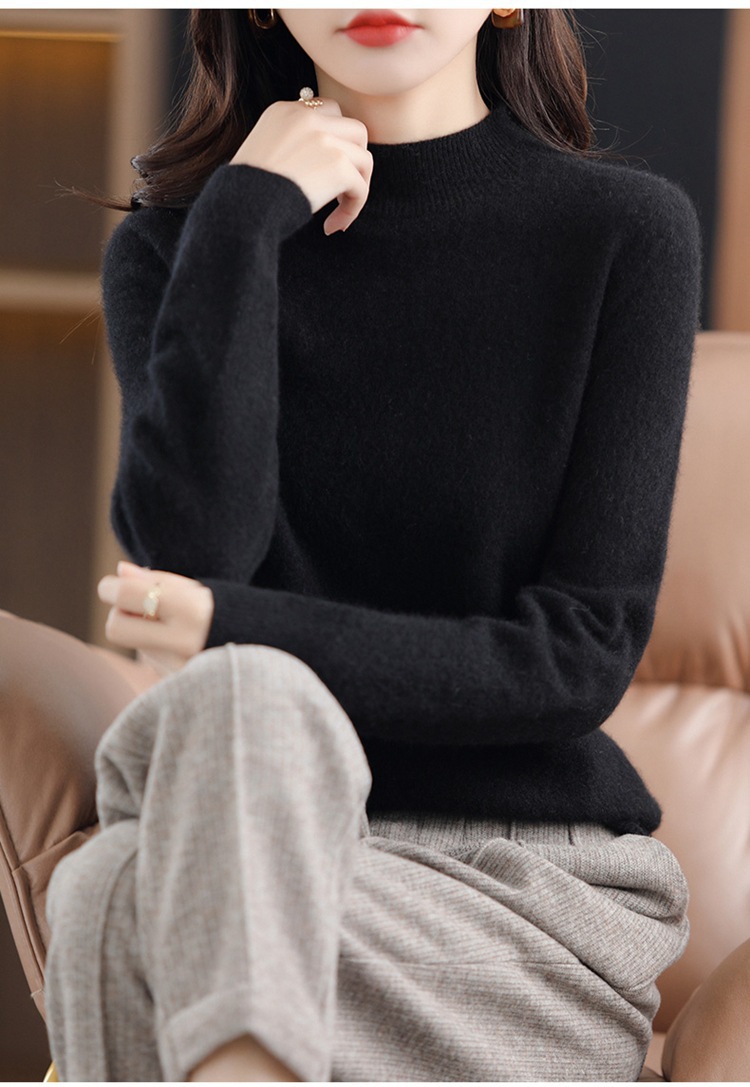 Осенний и зимний новый свитер с половиной водолазкой женский свободный пуловер с нижней нитью трикотаж с длинной линией одежды с длинными рукавами 100% шерстяной свитер