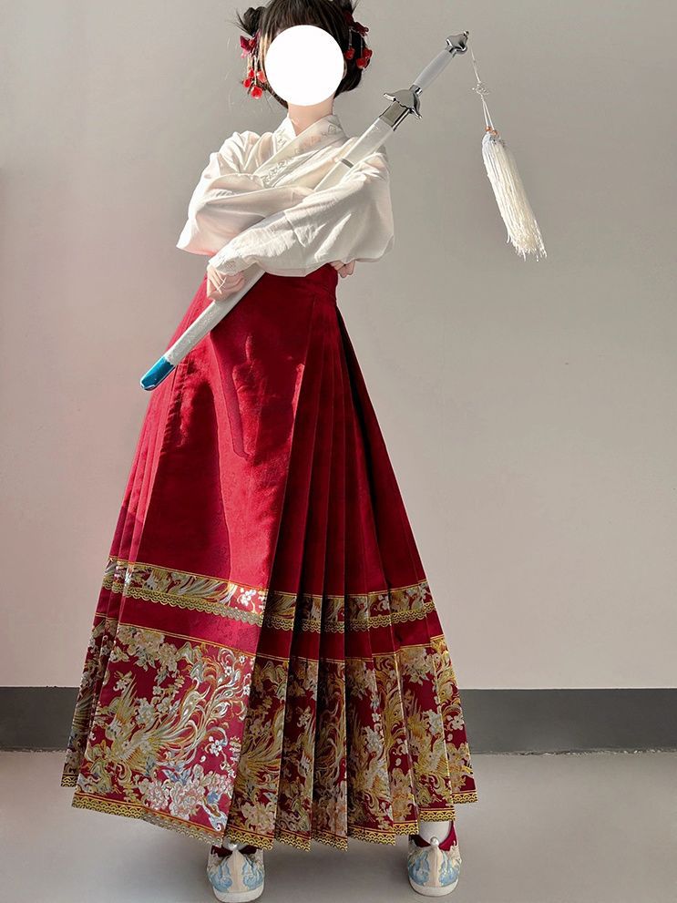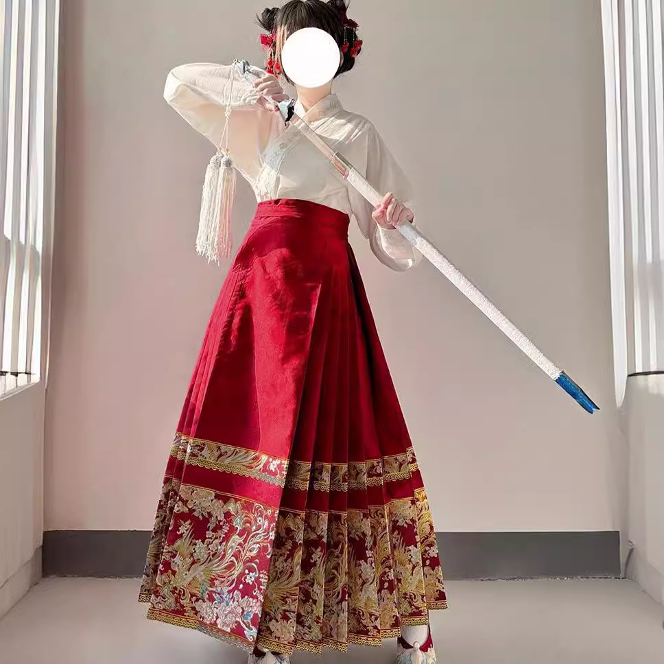 Новая модель 2024 года: юбка-мамянь в китайском стиле для торжественных мероприятий, нежная и элегантная женская осенняя модель в традиционном китайском стиле, улучшенная версия ханьфу для повседневной носки и возвращения домой.