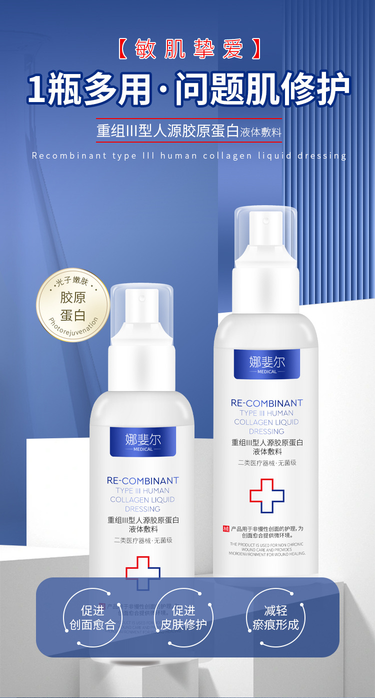 Медицинский рекомбинантный коллаген типа III, спрей для перевязки, лазерная медицинская косметическая микроигла для послеоперационного восстановления ран