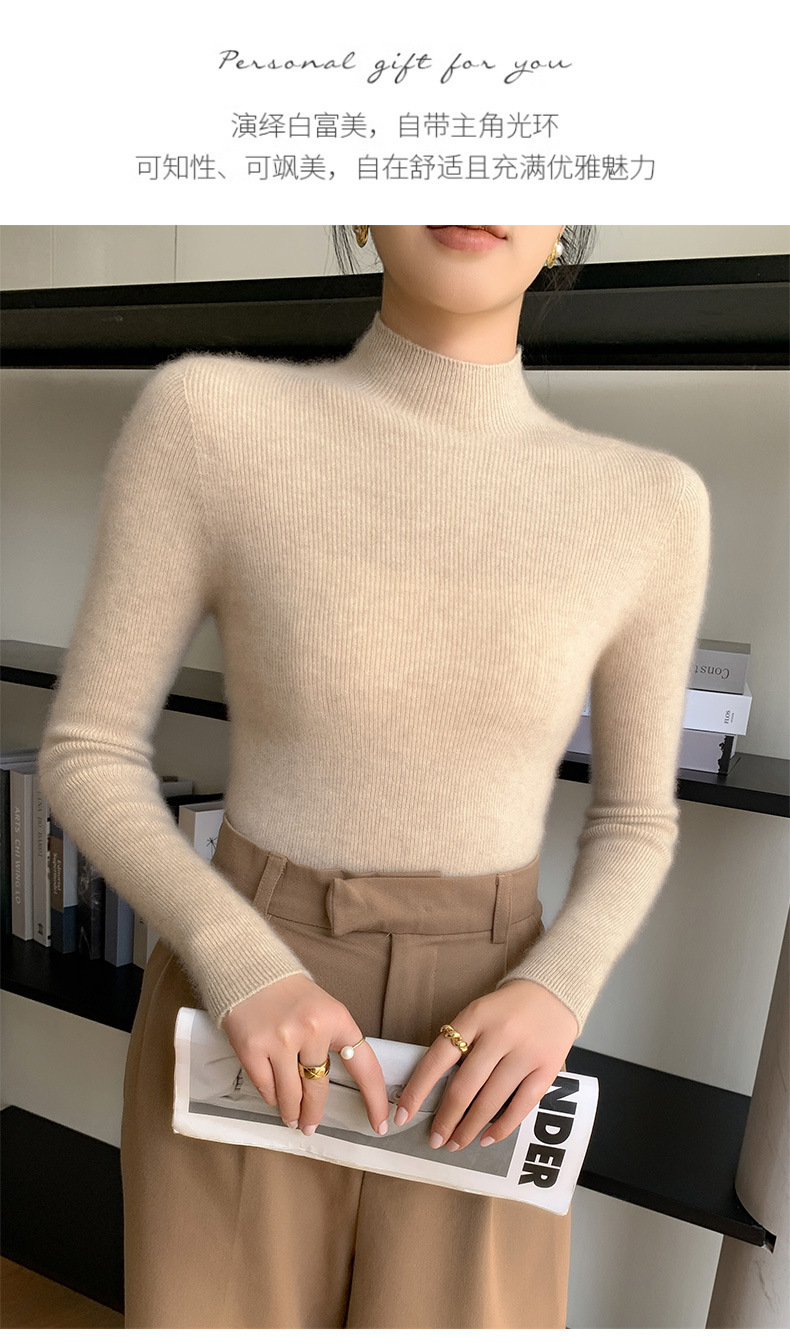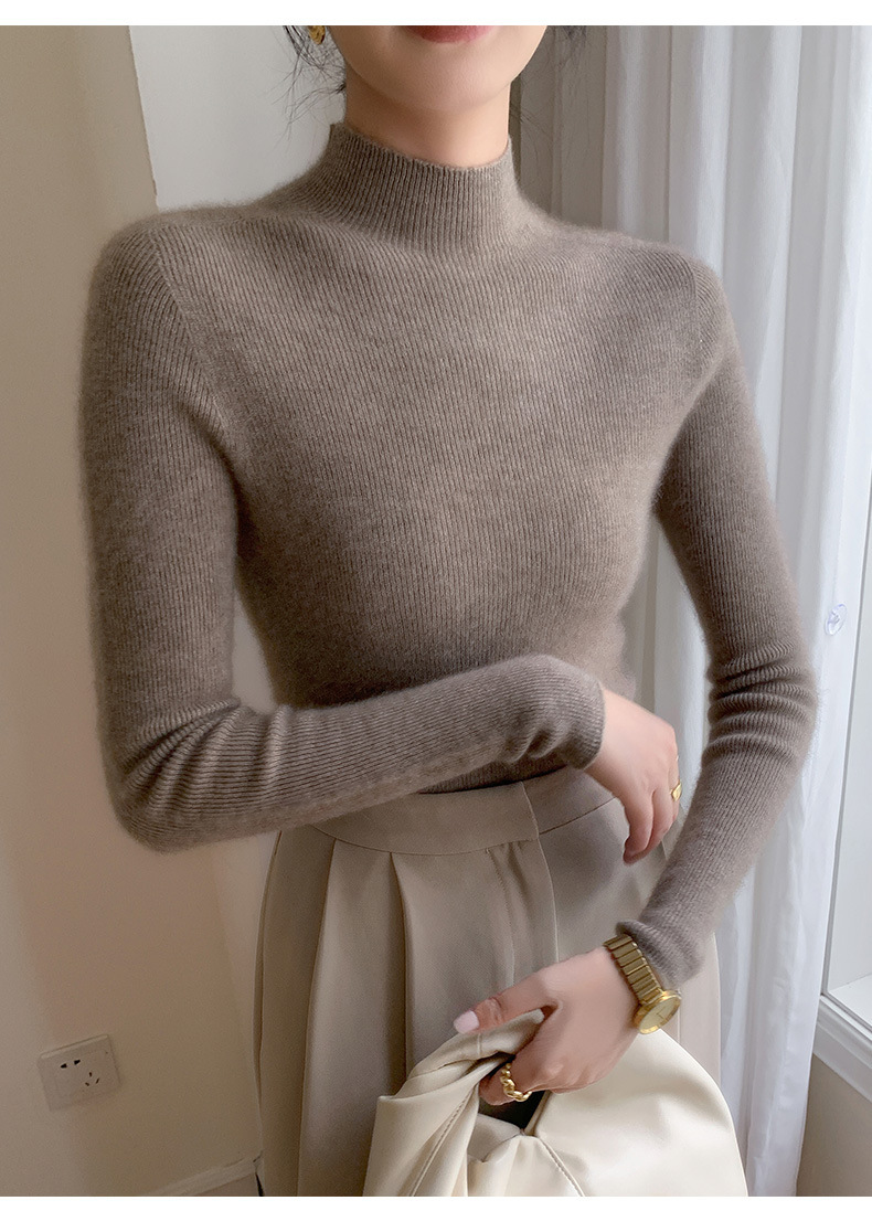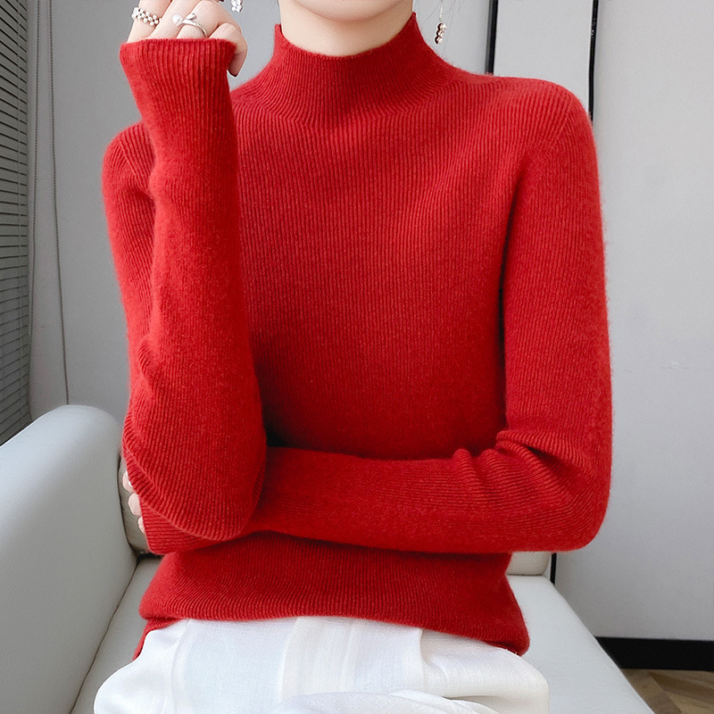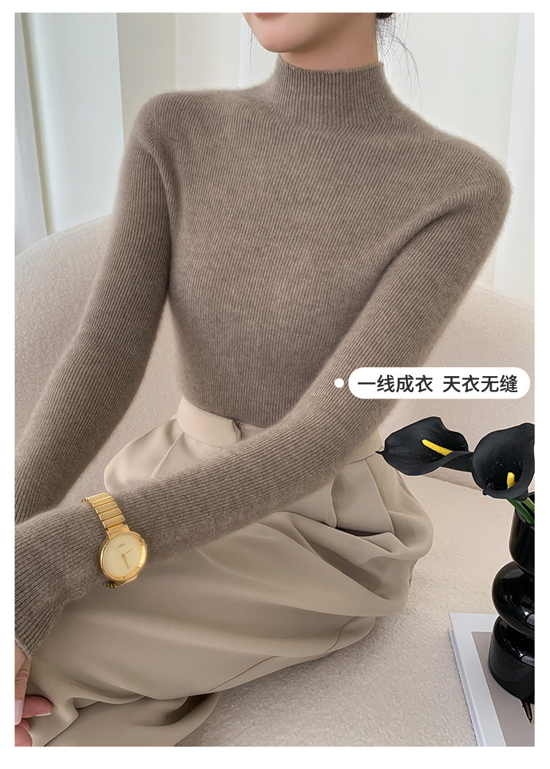 Готовая бесшовная цельная шерстяная Базовая рубашка в одну линию, Женская осенне-зимняя водолазка на 23 года, внутренний свитер, облегающий топ с длинными рукавами
