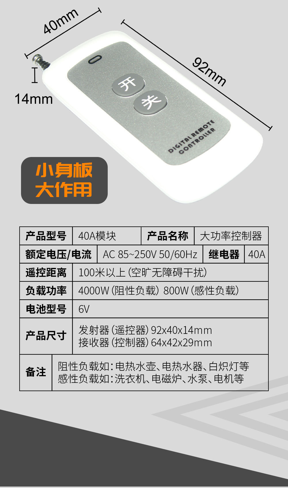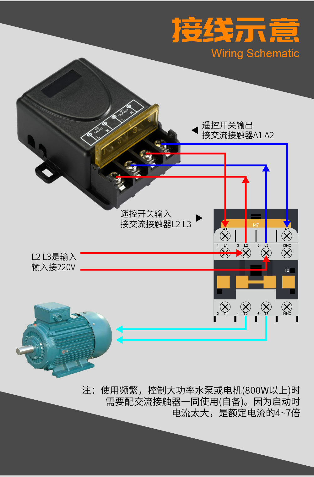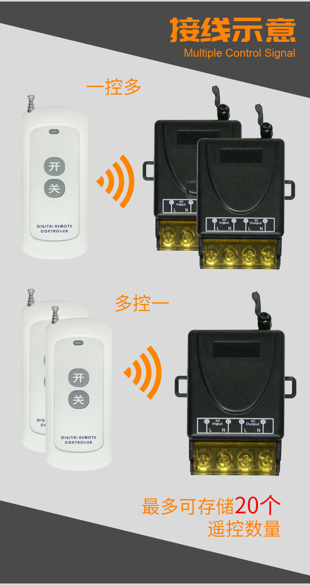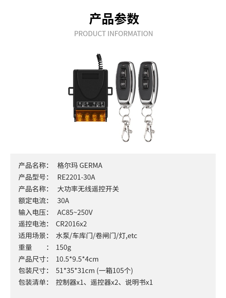 220V大功率无线遥控开关远程遥控水泵电机抽水机无线接收通断器
