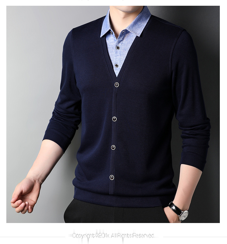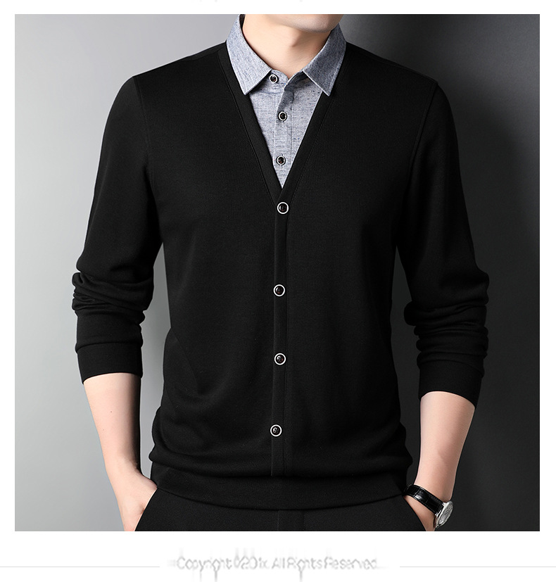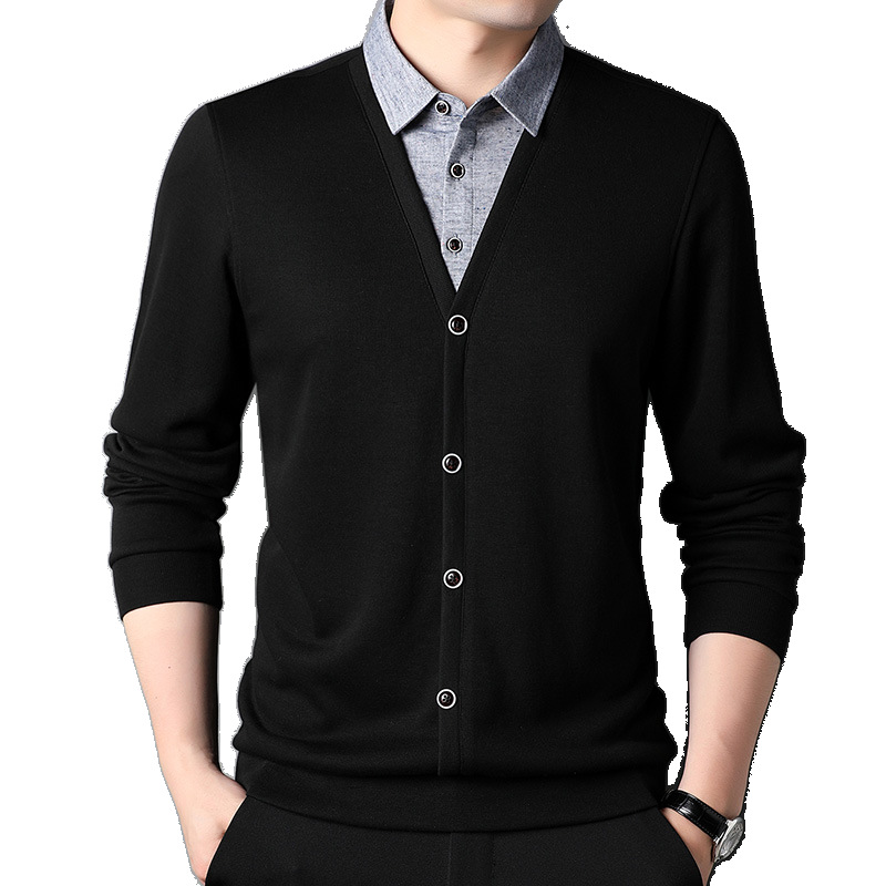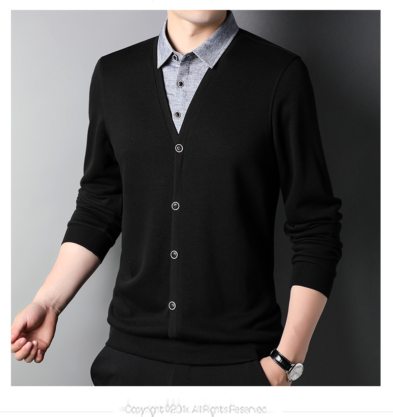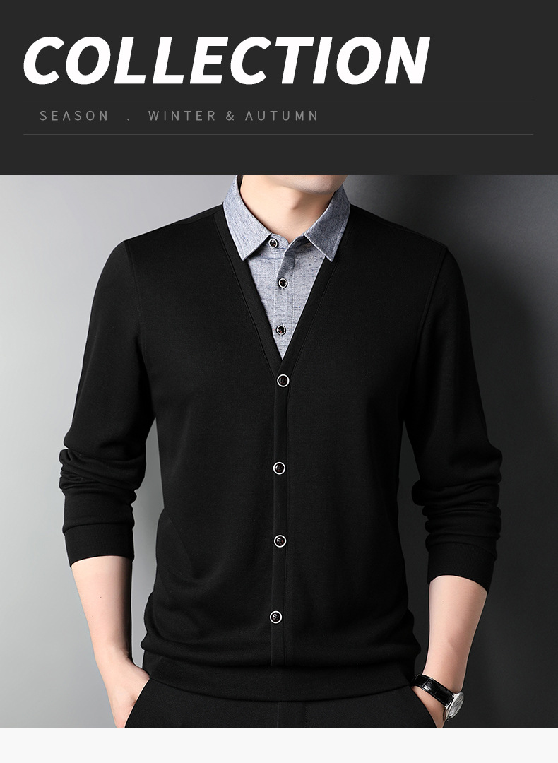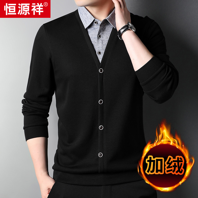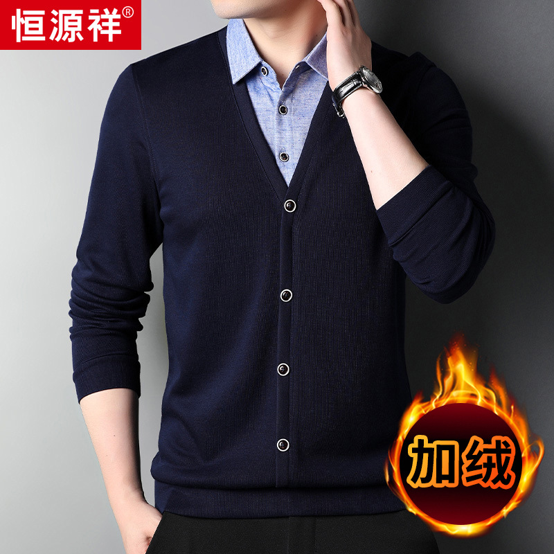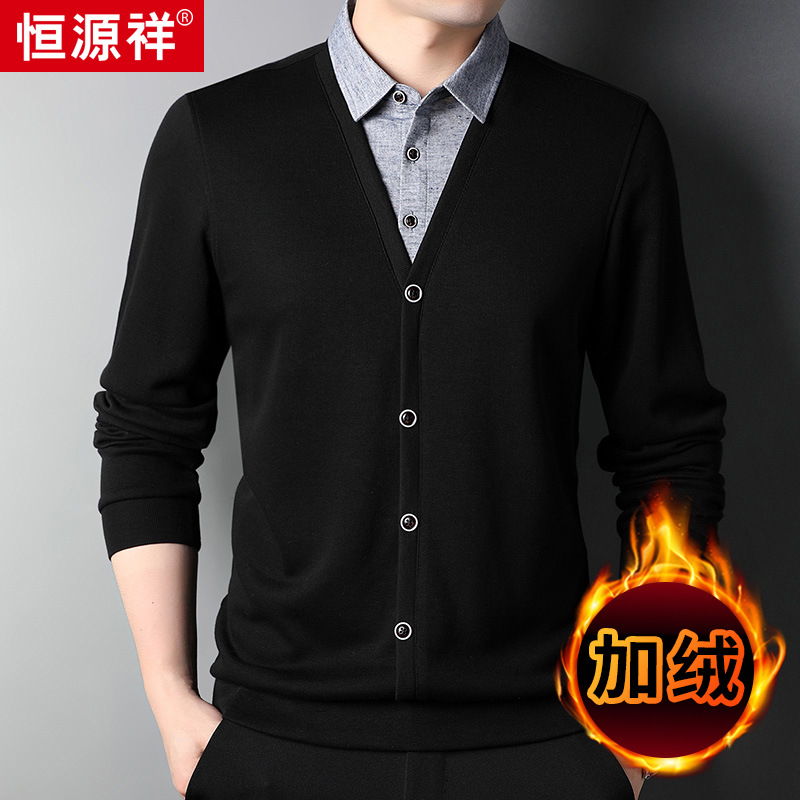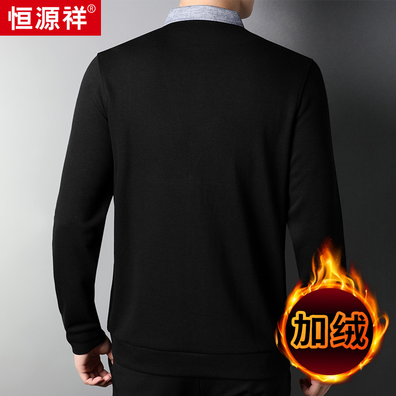Мужской свитер Hengyuanxiang из двух частей на флисовой подкладке, классический, новый стиль зимы 2024, для мужчин среднего возраста, толстый трикотаж