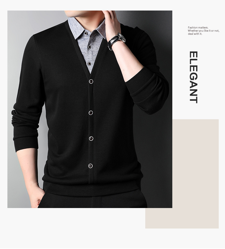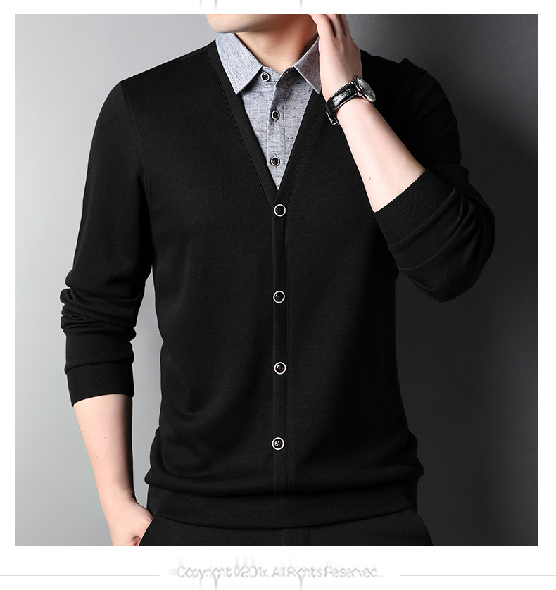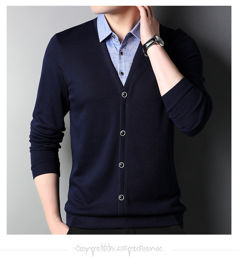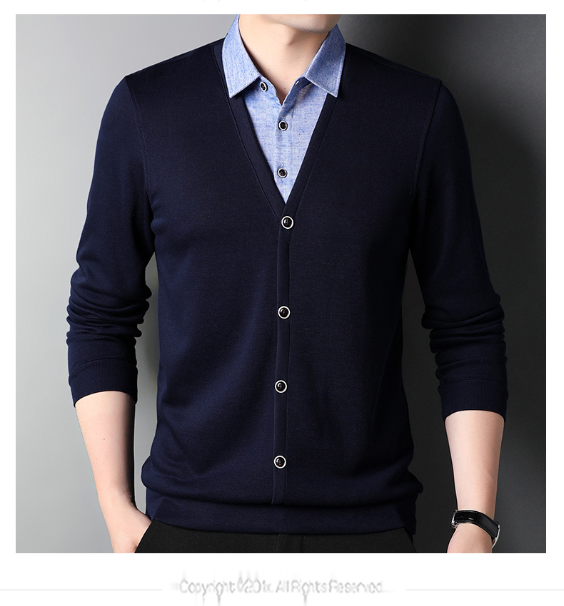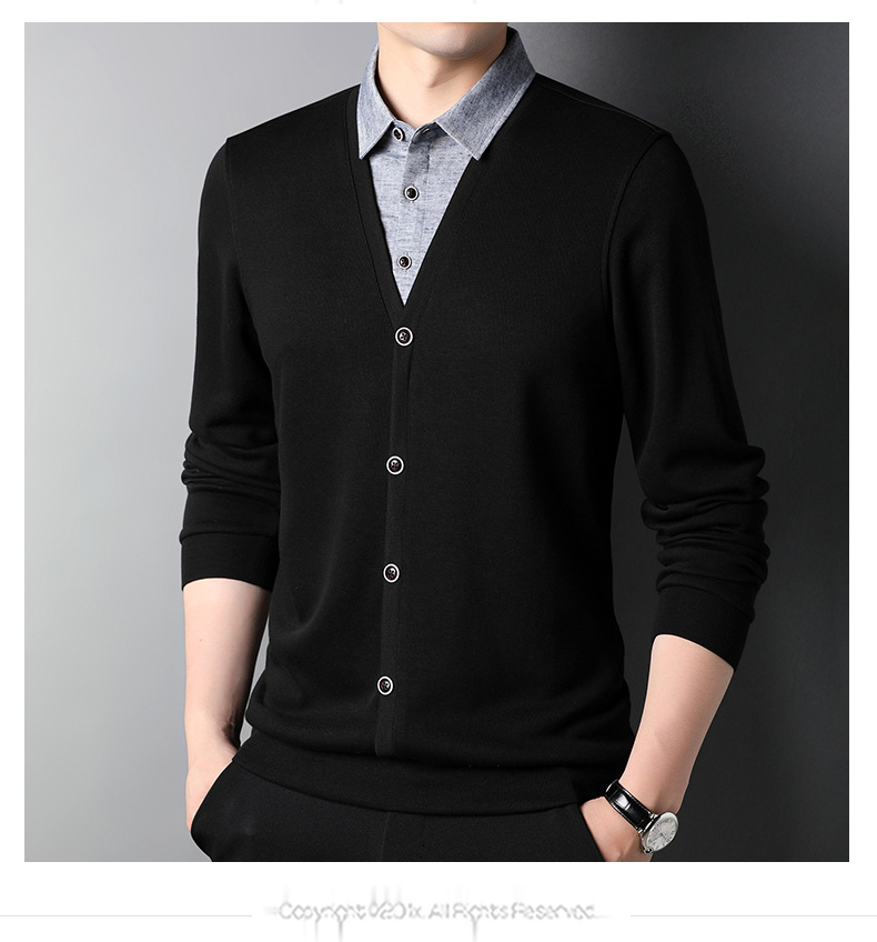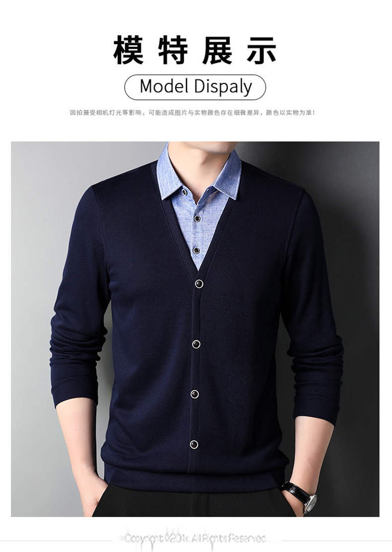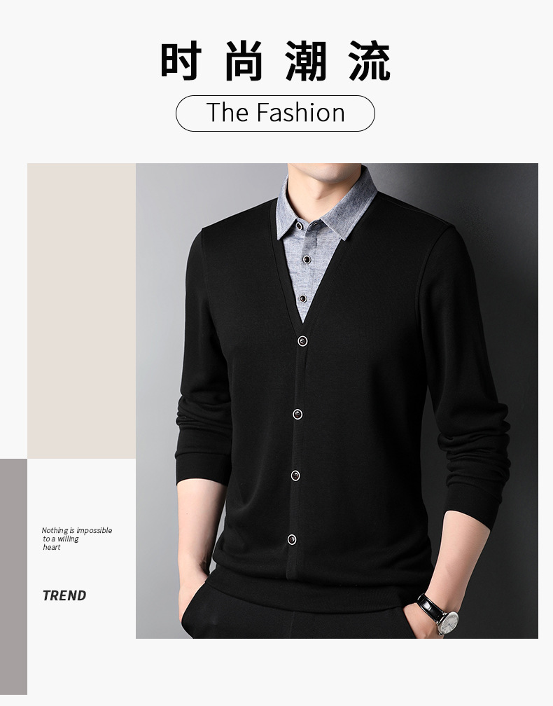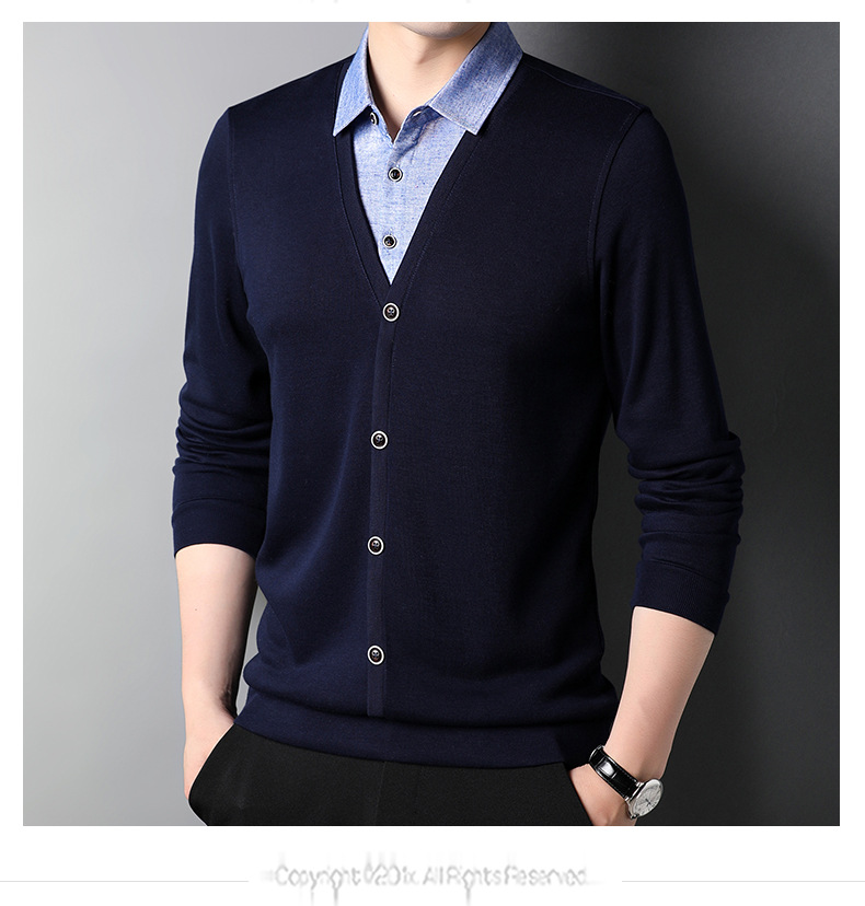 Мужской свитер Hengyuanxiang из двух частей на флисовой подкладке, классический, новый стиль зимы 2024, для мужчин среднего возраста, толстый трикотаж