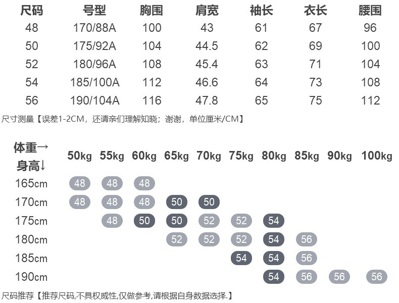 М/170; Л/175; XL/180; 2XL/185; 3XL/190