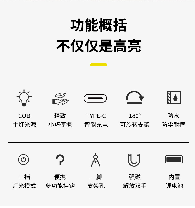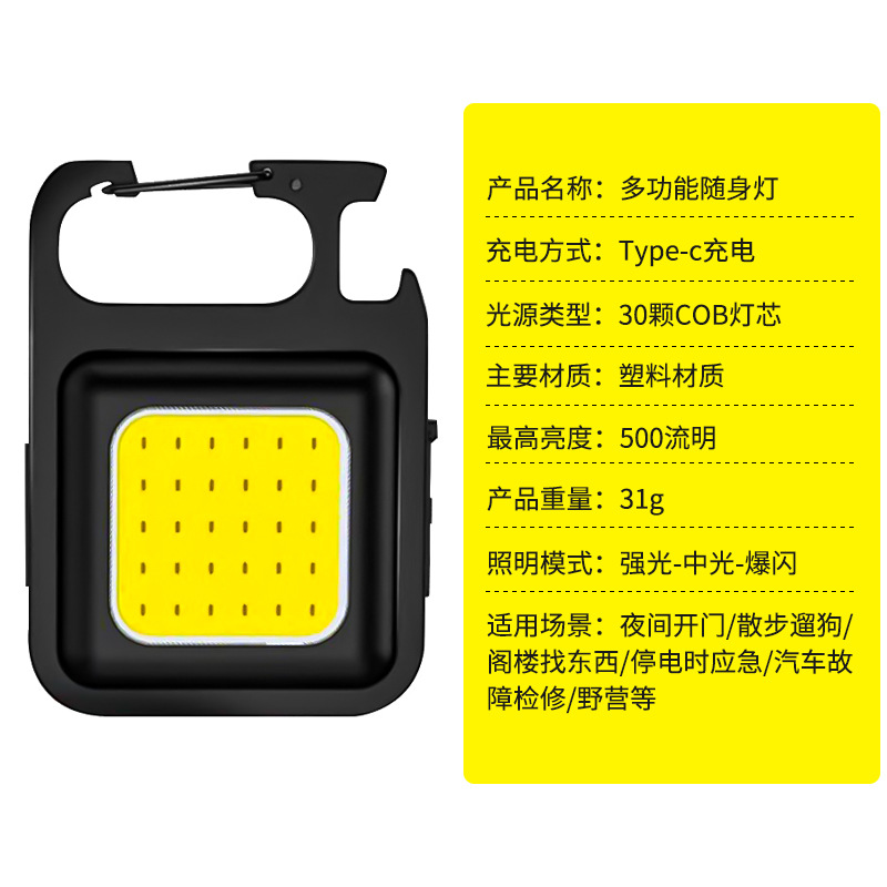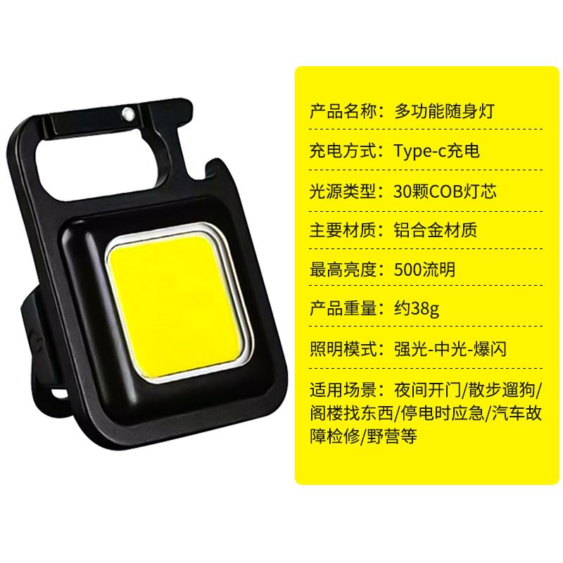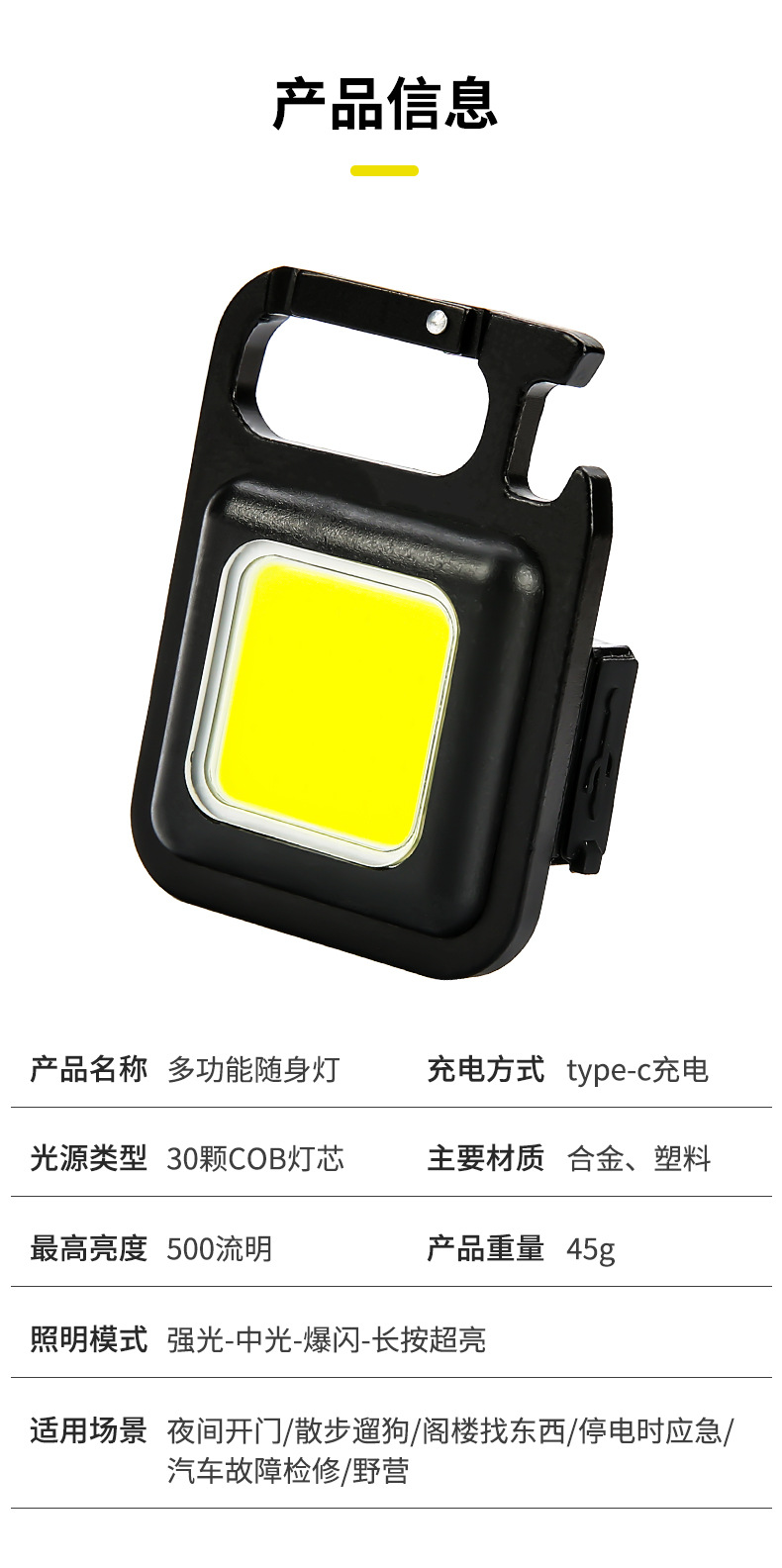 Брелок легкий трансграничный мини Сверхмаленький портативный алюминиевый сплав Магнитный всасывающий аварийный свет Тип-C зарядный початок рабочий свет