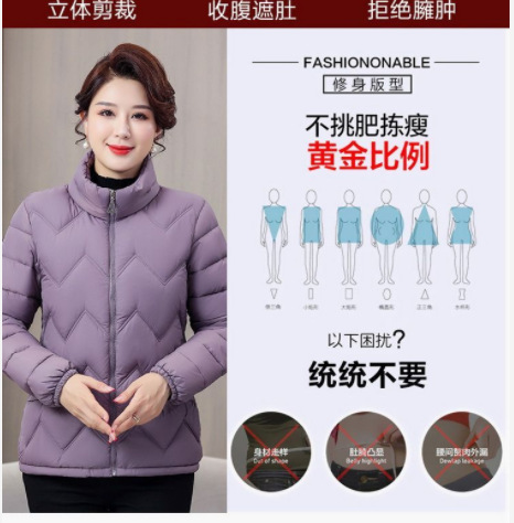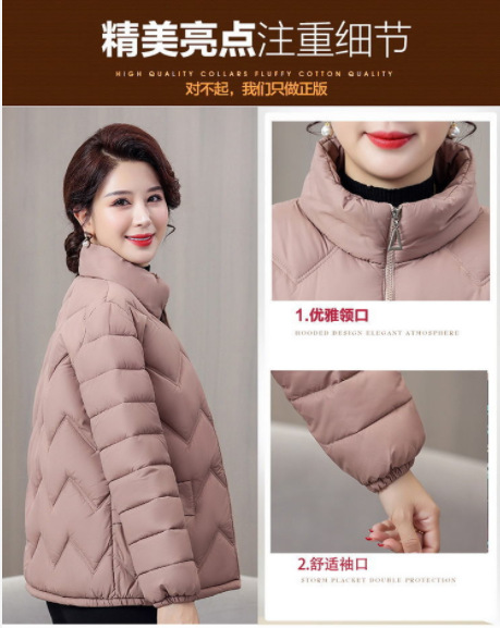 Пальто с хлопковой подкладкой для среднего и пожилого возраста, Женское пальто с воротником-стойкой, модное короткое утолщенное Женское пальто с хлопковой подкладкой больших размеров