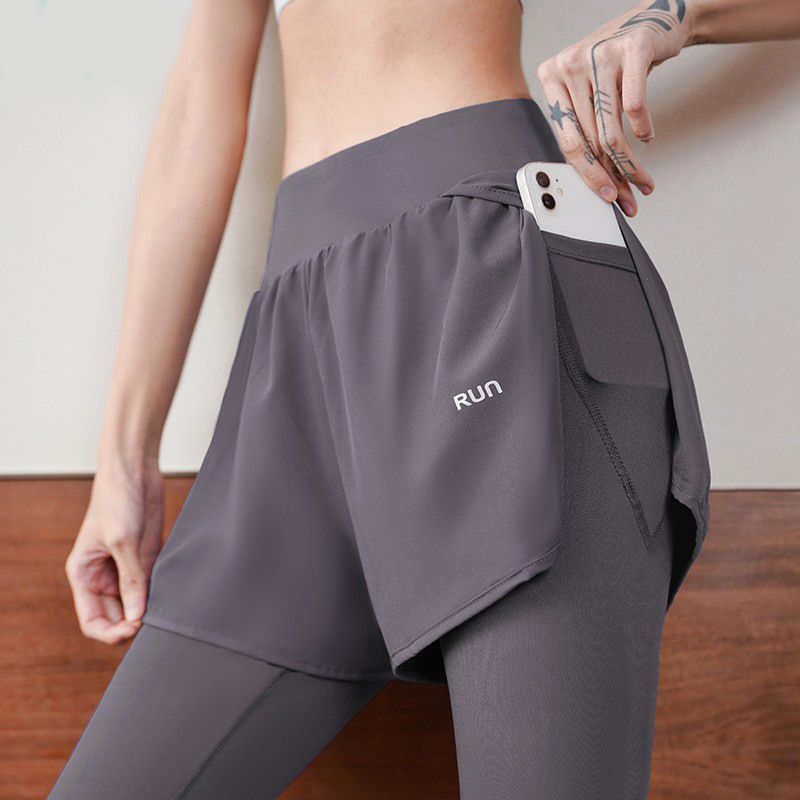 Поддельные брюки для фитнеса из двух частей, женские эластичные узкие брюки для бега с высокой талией, юбка, быстросохнущие спортивные брюки, Осенние штаны для йоги, похудение