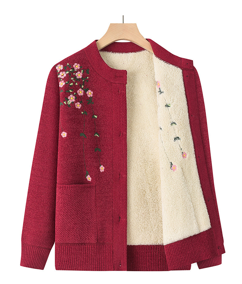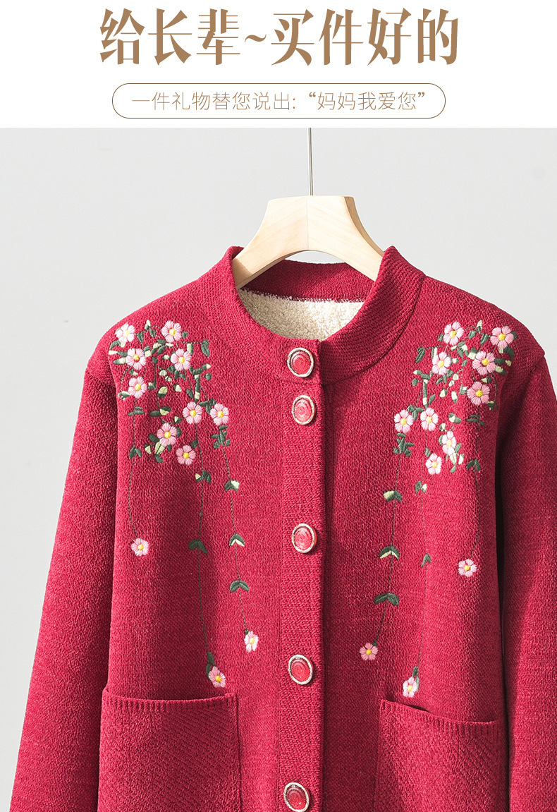 Осенняя одежда для среднего и пожилого возраста свитер для бабушки одежда для матери утолщенный вязаный кардиган на флисовой подкладке осенне-зимнее пальто Одежда для пожилых женщин