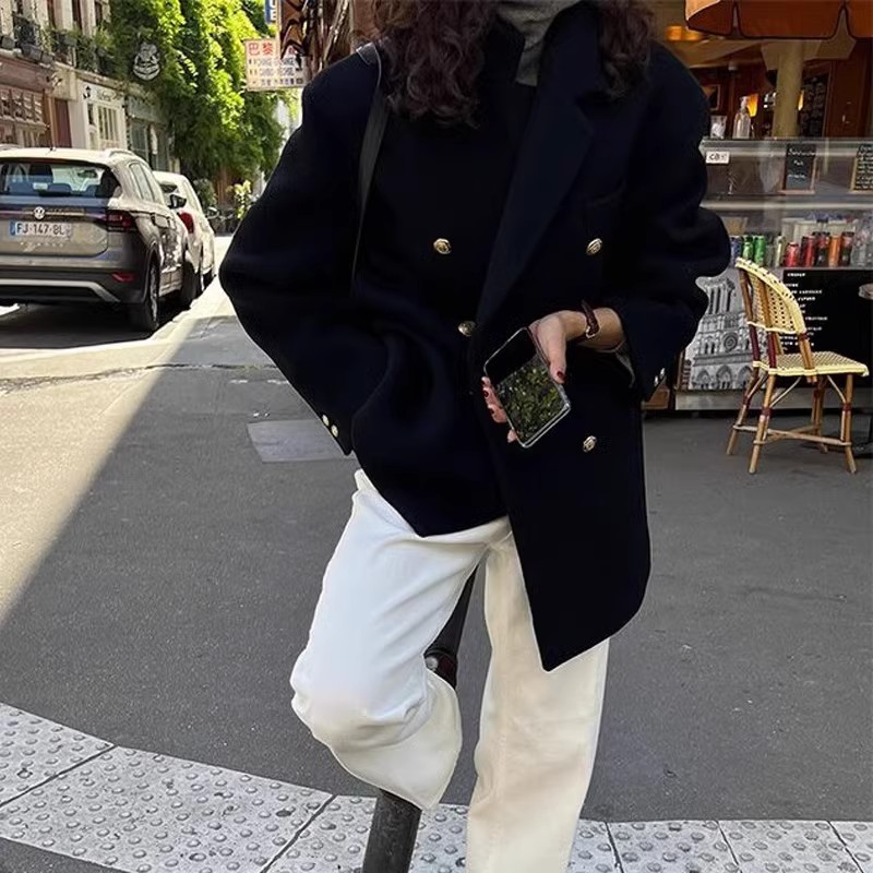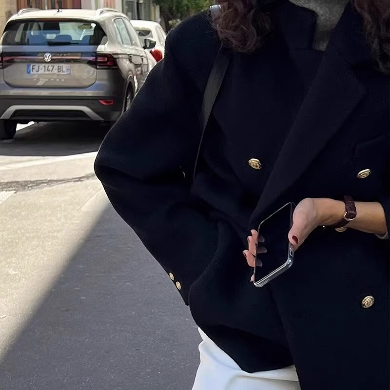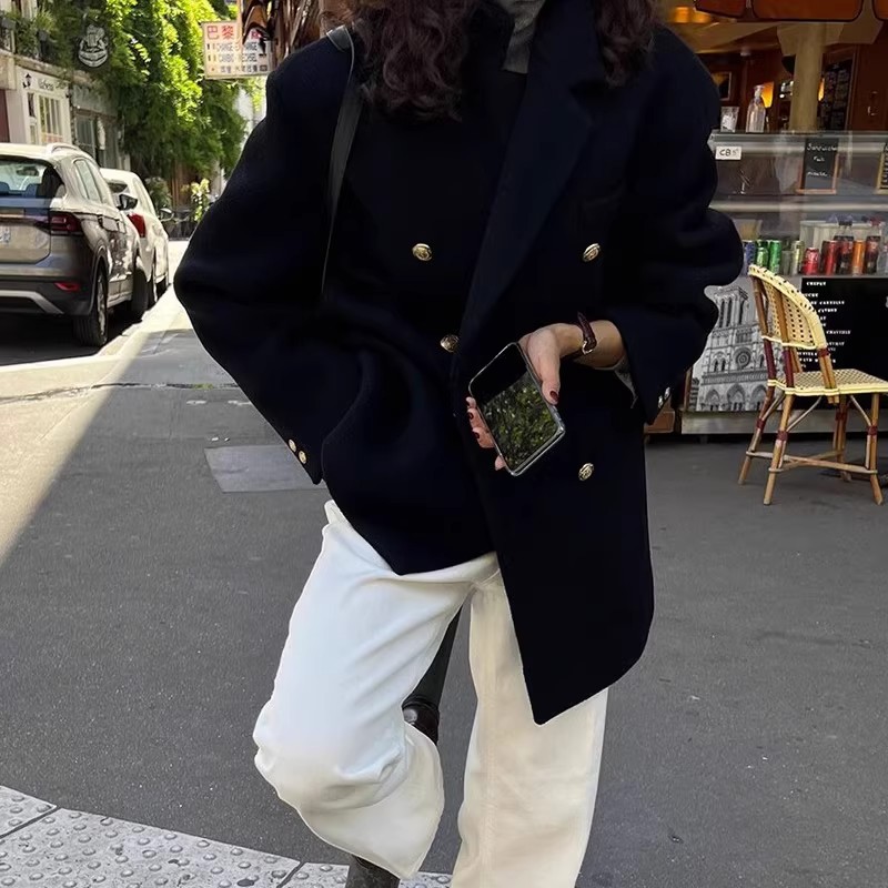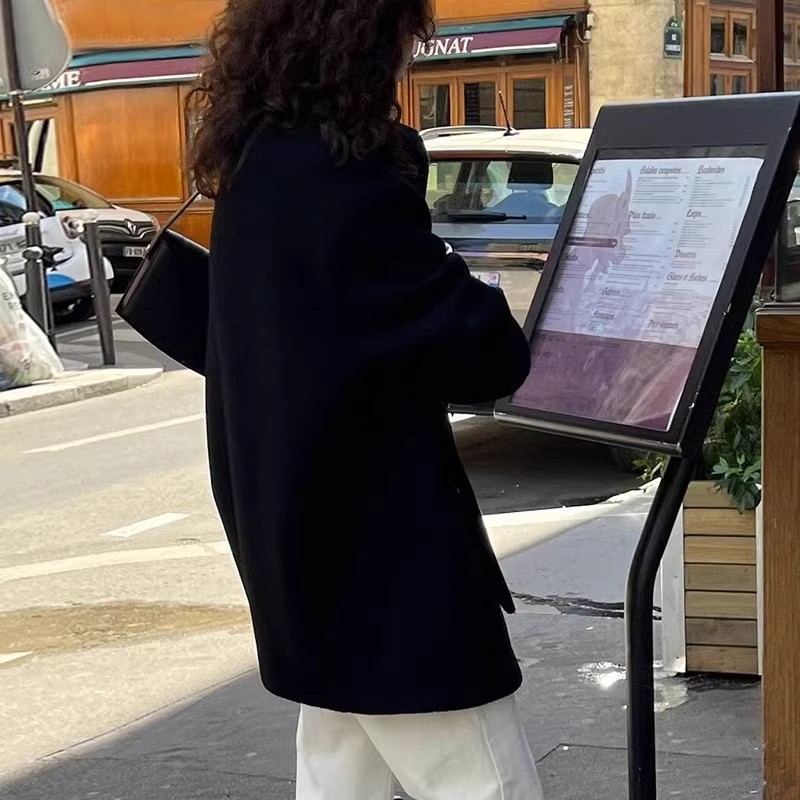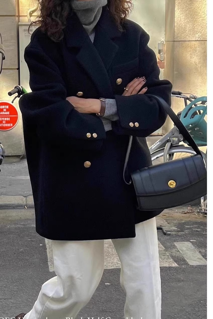 Женская одежда большого размера 2024 осень и зима новый толстый мм свободный шерстяной пиджак 200 кг тонкая [2330]