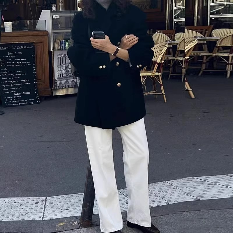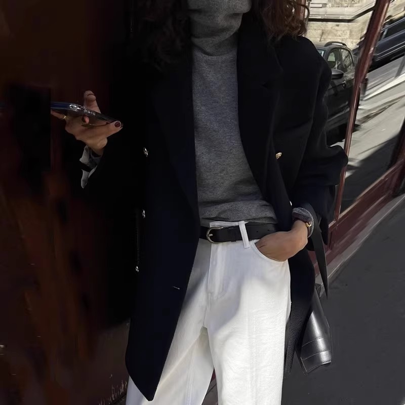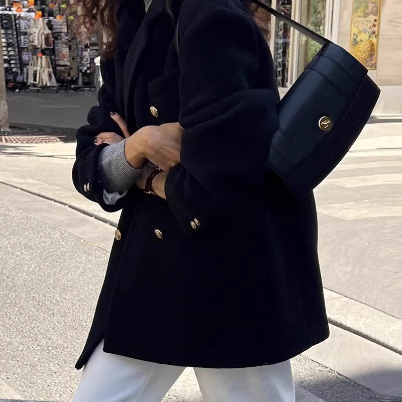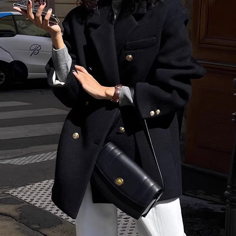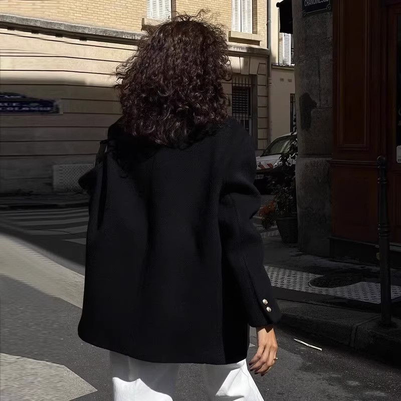 Женская одежда большого размера 2024 осень и зима новый толстый мм свободный шерстяной пиджак 200 кг тонкая [2330]