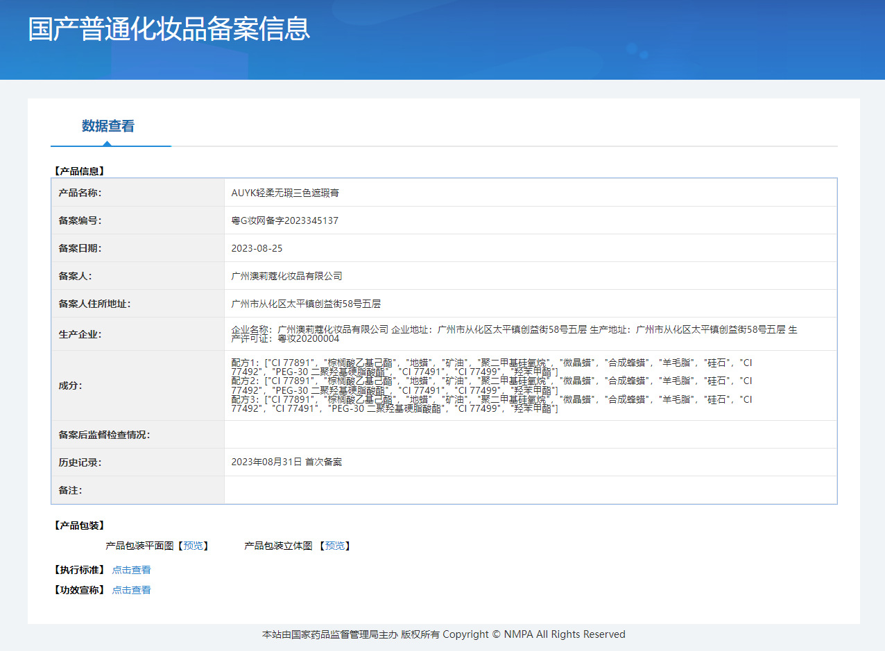 Номер записи для неспециальной косметики: