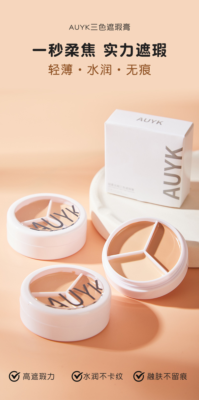 AUYK Small Cream Трехцветный консилер без макияжа Основа для лица Крем от прыщей Сухая кожа Масло для кожи Двуглавый консилер