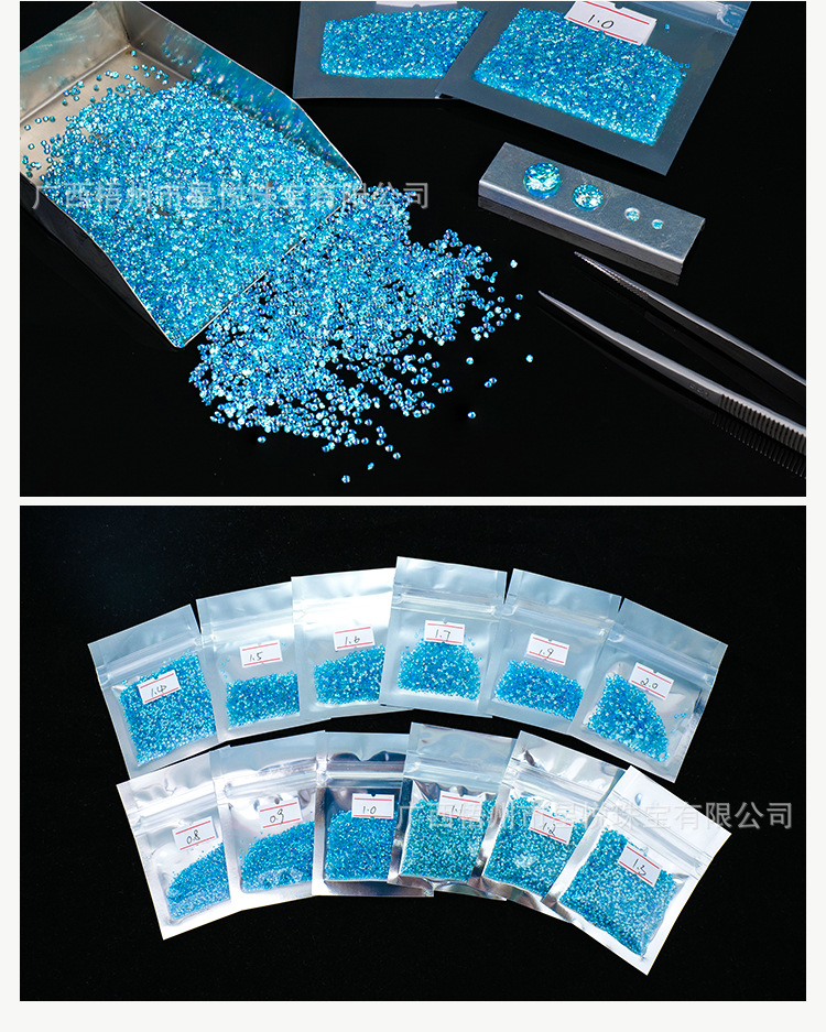0,8 мм [1 карат около 360 зерен]; 0,9 мм [1 карат около 280 зерен]; 1,0 мм [1 карат около 215 зерен]; 1,1 мм [1 карат около 165 зерен]; 1,2 мм [1 карат около 125 зерен]; 1,3 мм [1 карат около 100 зерен]; 1,4 мм [1 карат около 75 зерен]; 1,5 мм [1 карат около 65 зерен]; 1,6 мм [1 карат около 55 зерен]; 1,7 мм [1 карат около 50 зерен]; 1,8 мм [1 карат около 42 зерен]; 1,9 мм [1 карат около 39 зерен]; 2,0 мм [1 карат около 30 зерен]