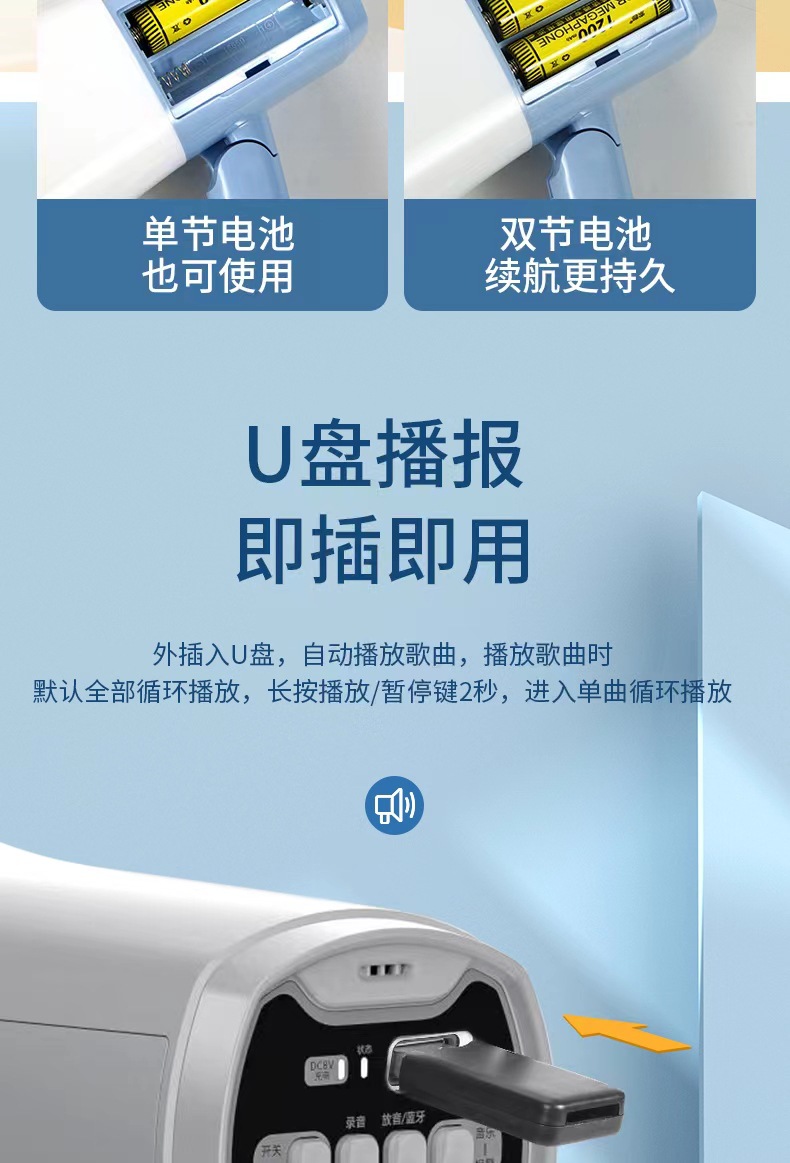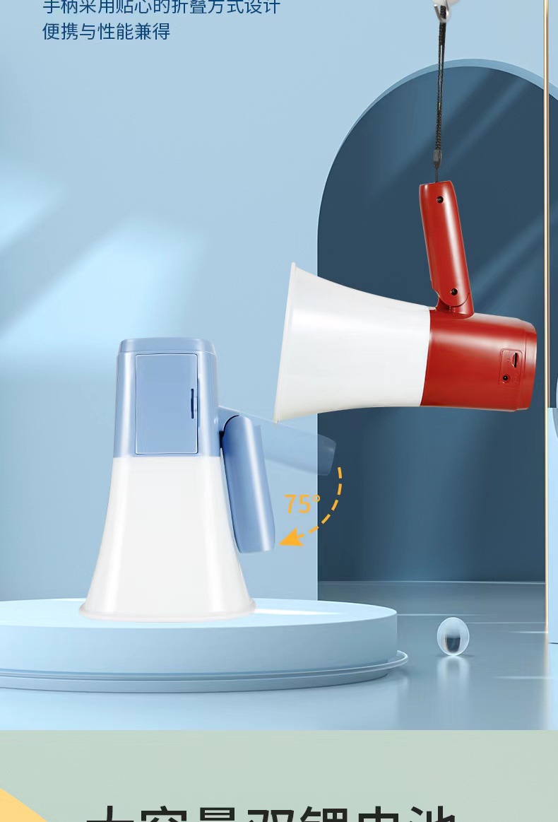 Ручной динамик, двойной аккумуляторный отсек, сверхдлительный срок службы батареи, уличный киоск, портативный уличный мегафон