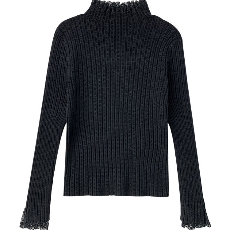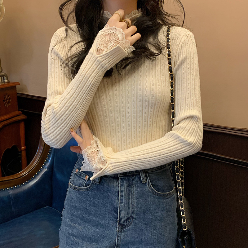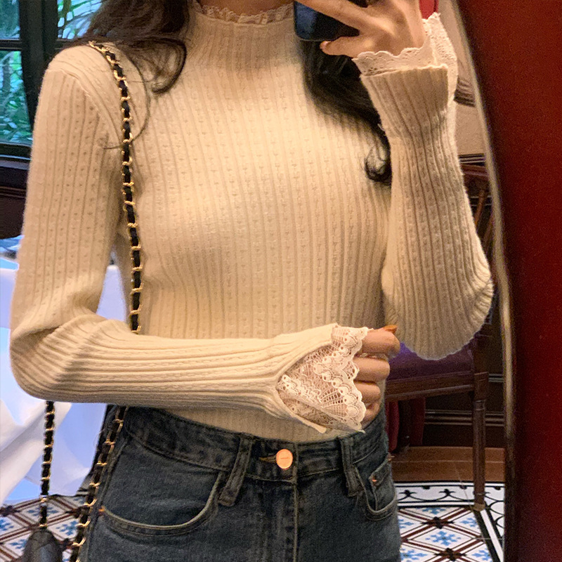 Женский кружевной внутренний свитер во французском стиле, осенне-зимний новый облегающий свитер с высоким воротом, нижняя рубашка, Топ
