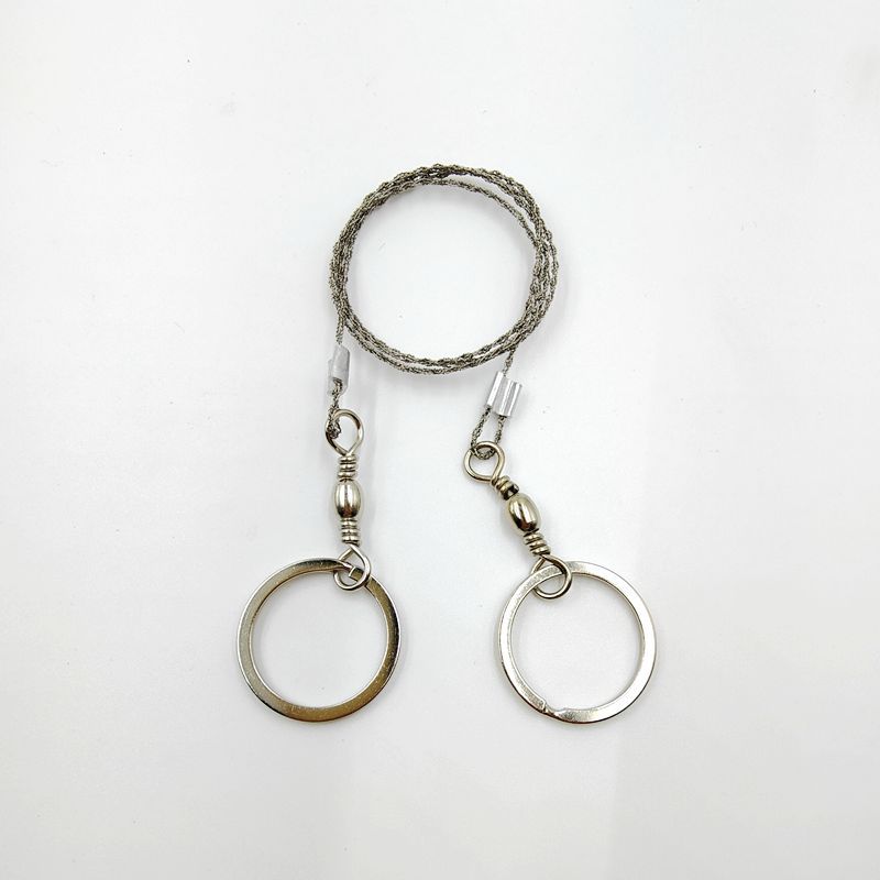 线锯,又称口袋锯,是野营装备中的一件重要物品,选用优质高强度拉伸的不锈钢丝制成。它是由细小的钢丝缠绕较粗的钢丝形成丝绕丝式锯齿,再由四股丝绕丝制成锯锋,具有锯齿锋利而又平滑不伤手的特点。可以从任意方向锯断树枝、木头、塑料、橡胶、骨头、软金属等,操作方便,容易携带,不伤手和衣物,使用寿命长。选用不锈钢材料制作,无须特别保养,用完后擦干净并保持干燥即可。