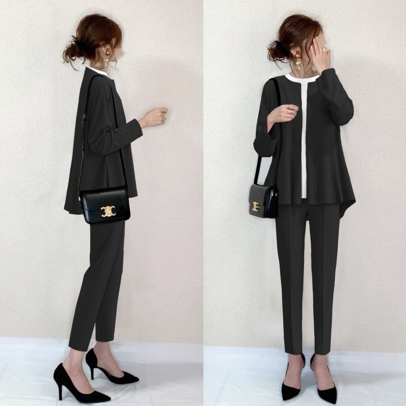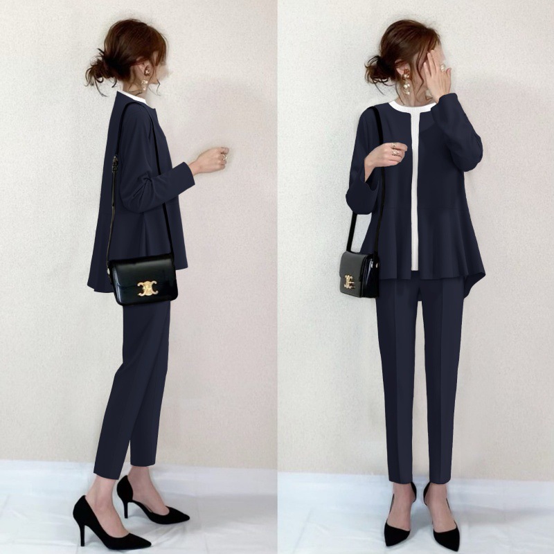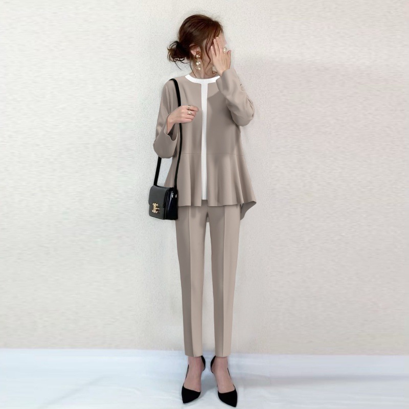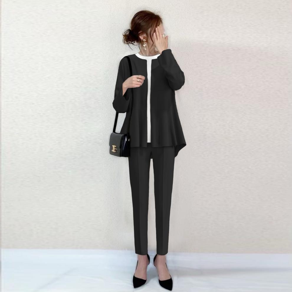 Южная Корея chic2023 Весна и осень Новый кардиган с круглым вырезом Зимняя юбка с длинными рукавами и оборками Топ + брюки костюм