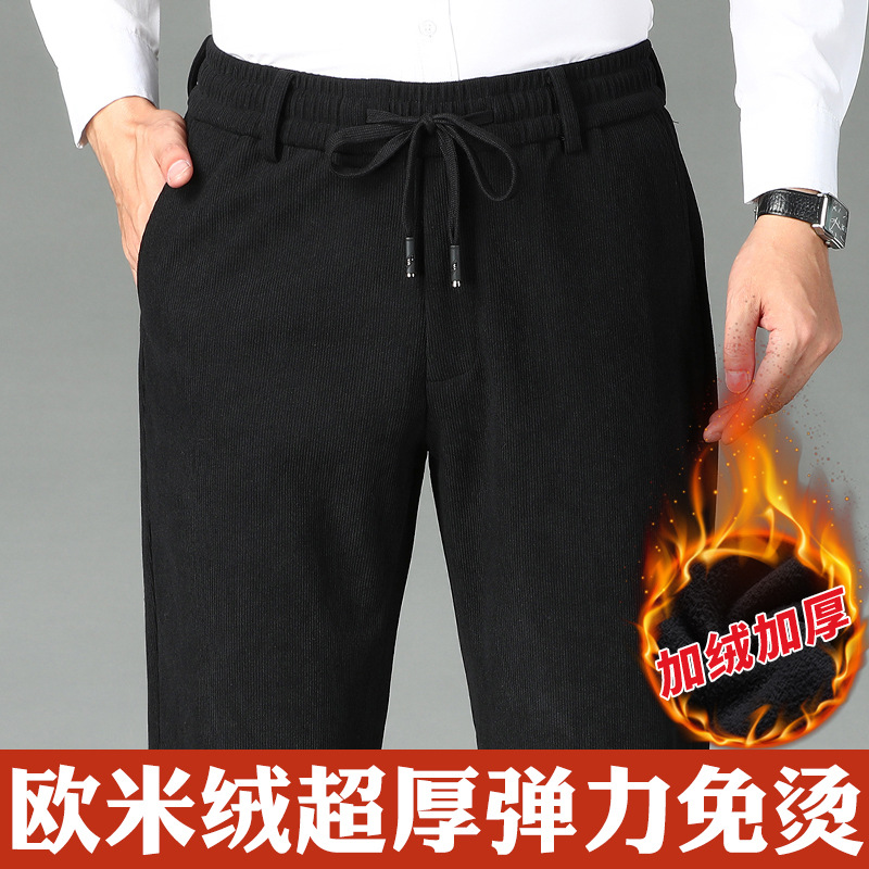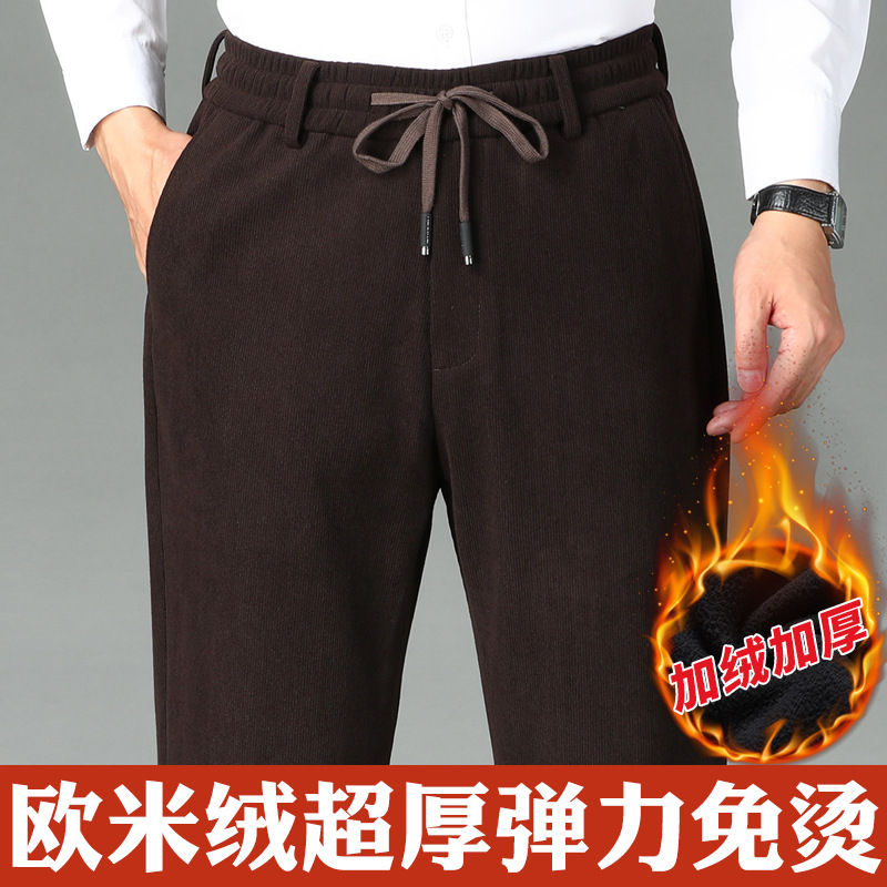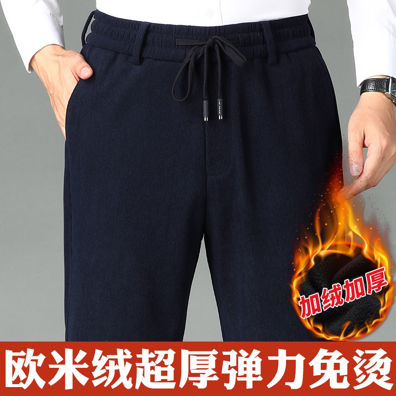 Заводская оптовая продажа зимний бархат вельветы мужские брюки с высокой талией прямой бархат длинные брюки среднего и пожилого возраста повседневный папа мужская одежда