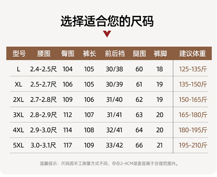 Рекомендация L: 50kg-60kg; Рекомендации XL: 60kg-70kg; Рекомендации 2XL: 70kg-80kg; Рекомендации 3XL: 80kg-90kg; Рекомендации 4XL: 90kg-100kg; Рекомендации 5XL: 100kg-110kg