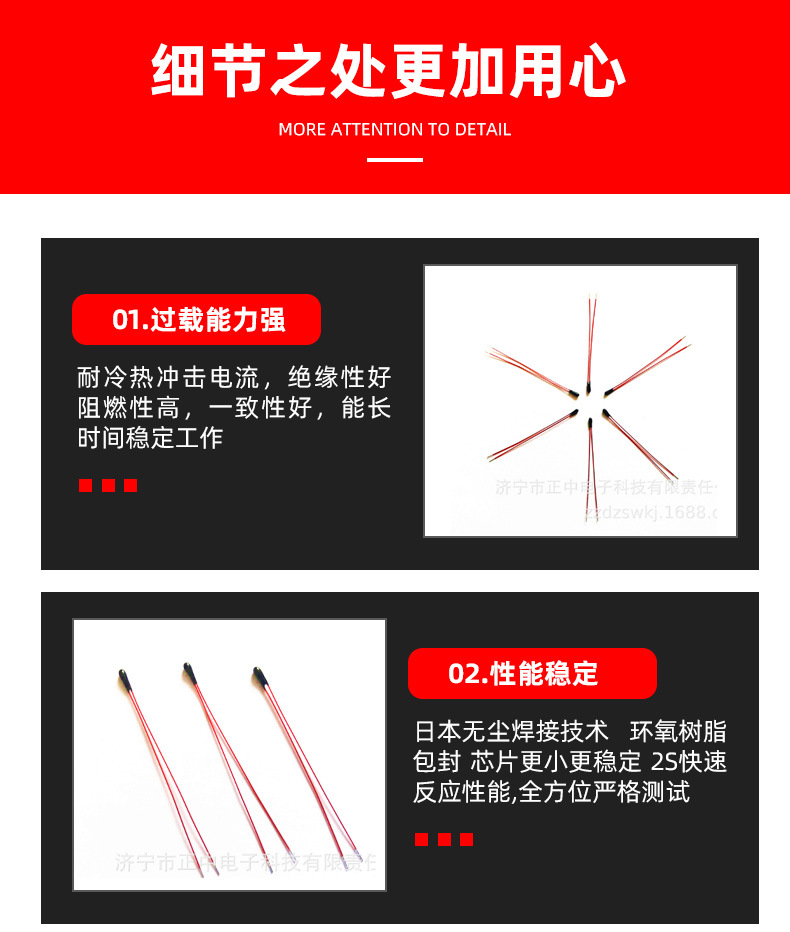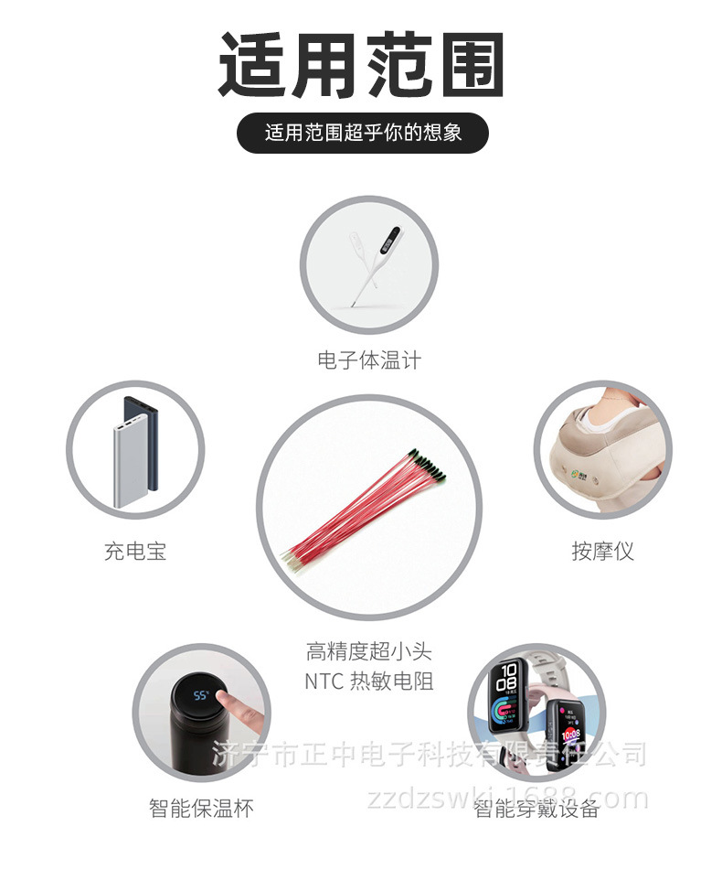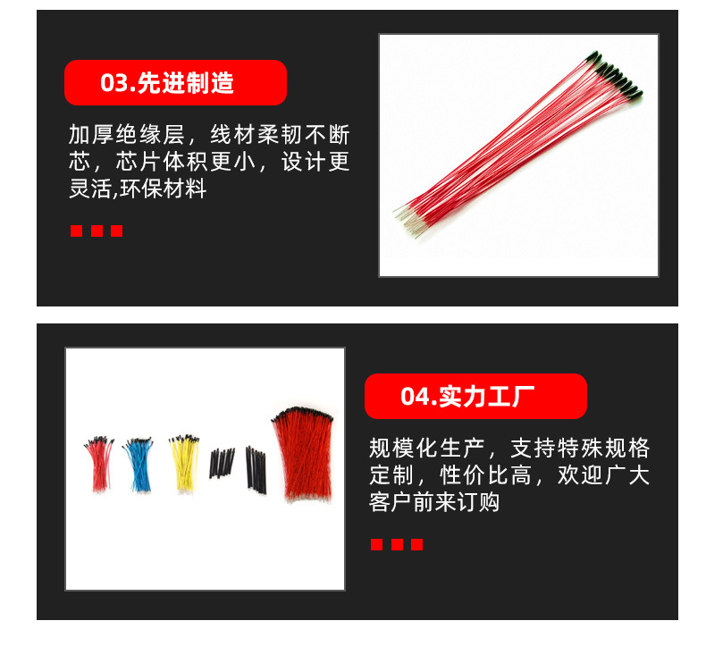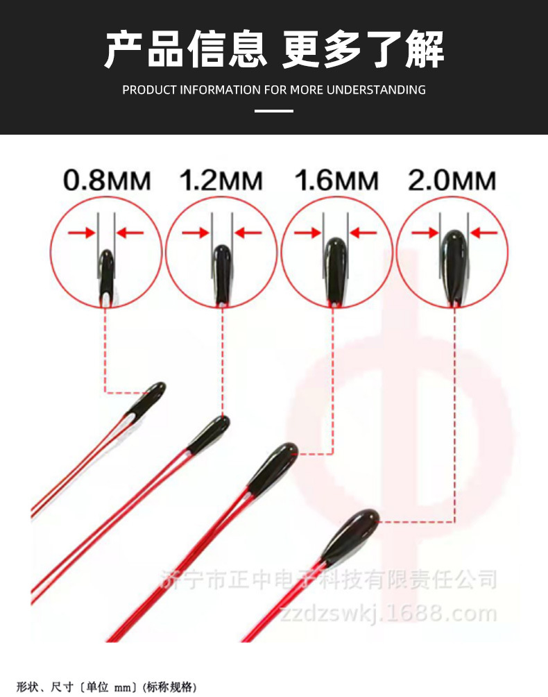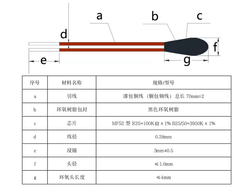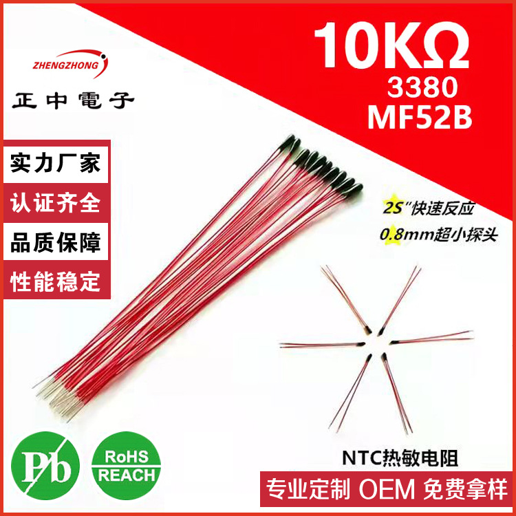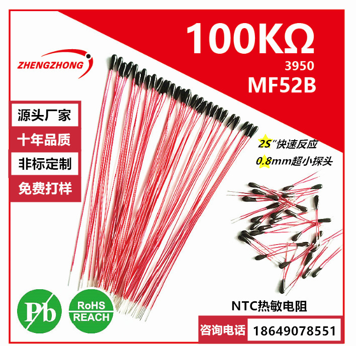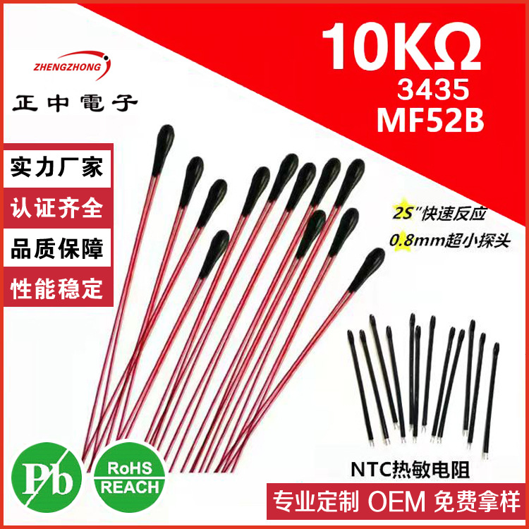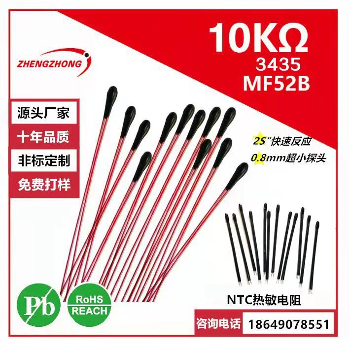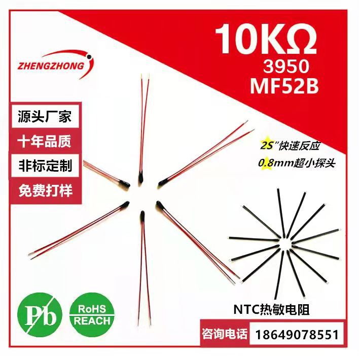 Термистор NTC 10k3950±1% для повербанка 3C, с эмалированным проводом, малый, с черным наконечником, датчик температуры