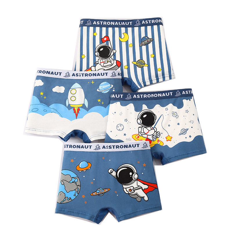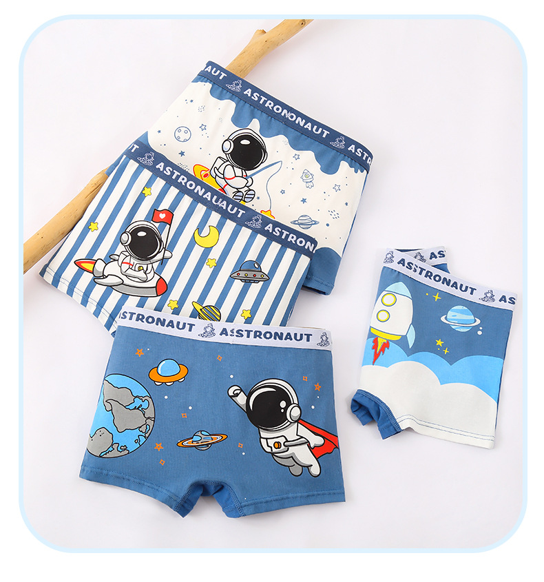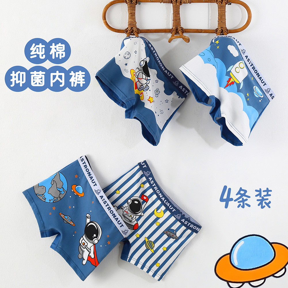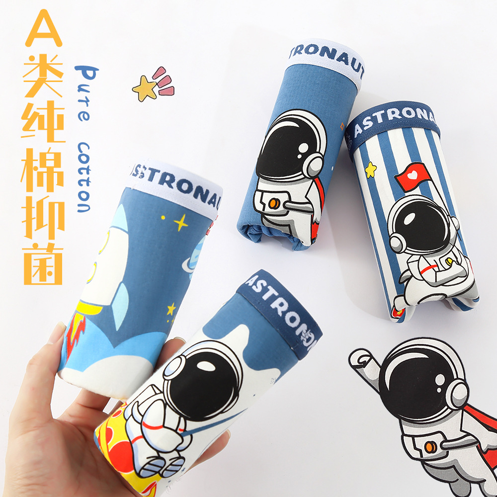 Детское нижнее белье с героями мультфильмов для мальчиков, антибактериальные трусы-боксеры из чистого хлопка, трусы-боксеры маленького и среднего размера для мальчиков-космонавтов