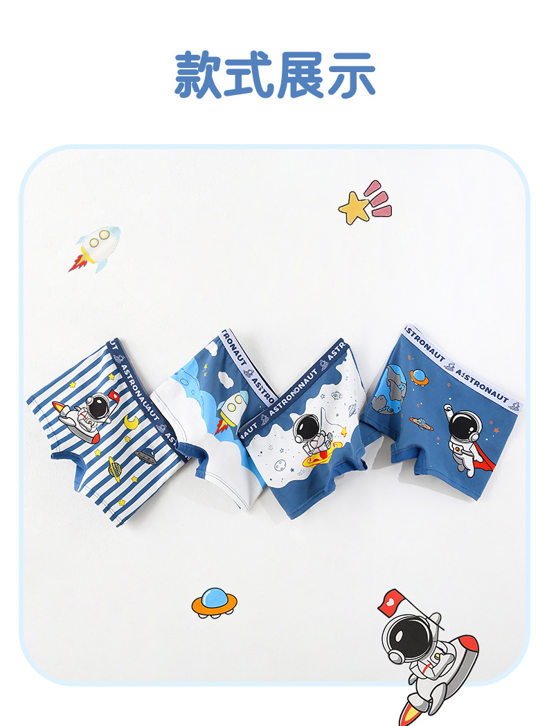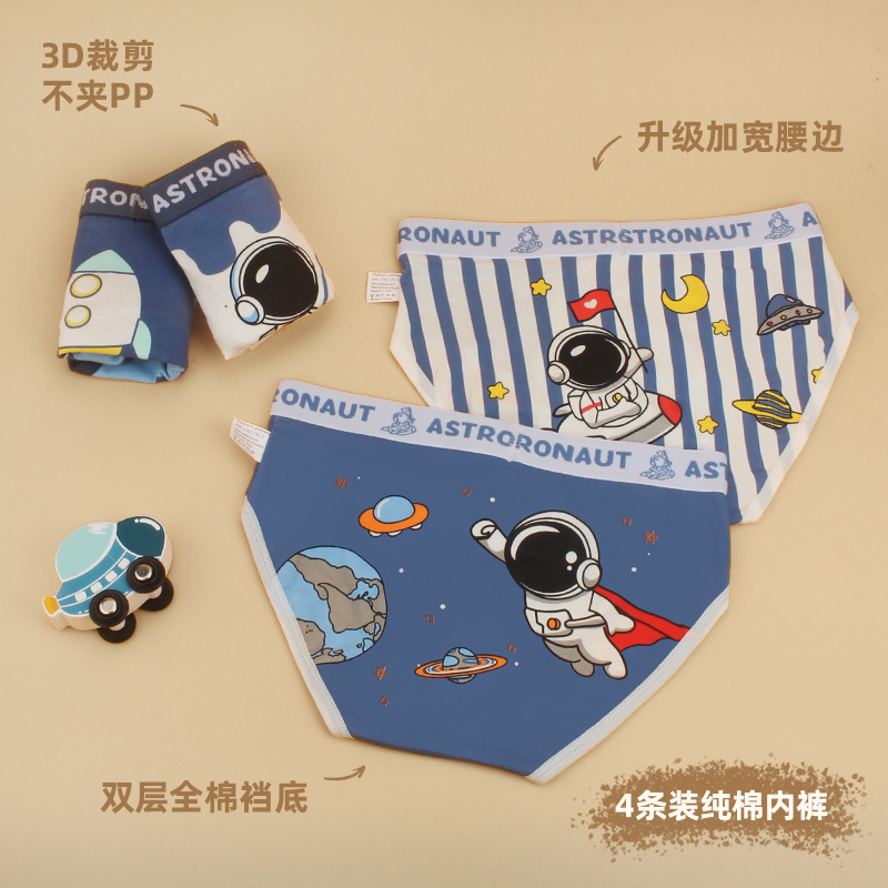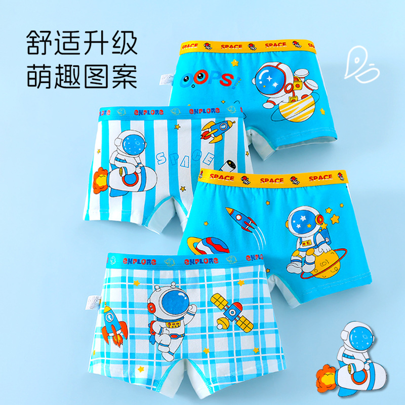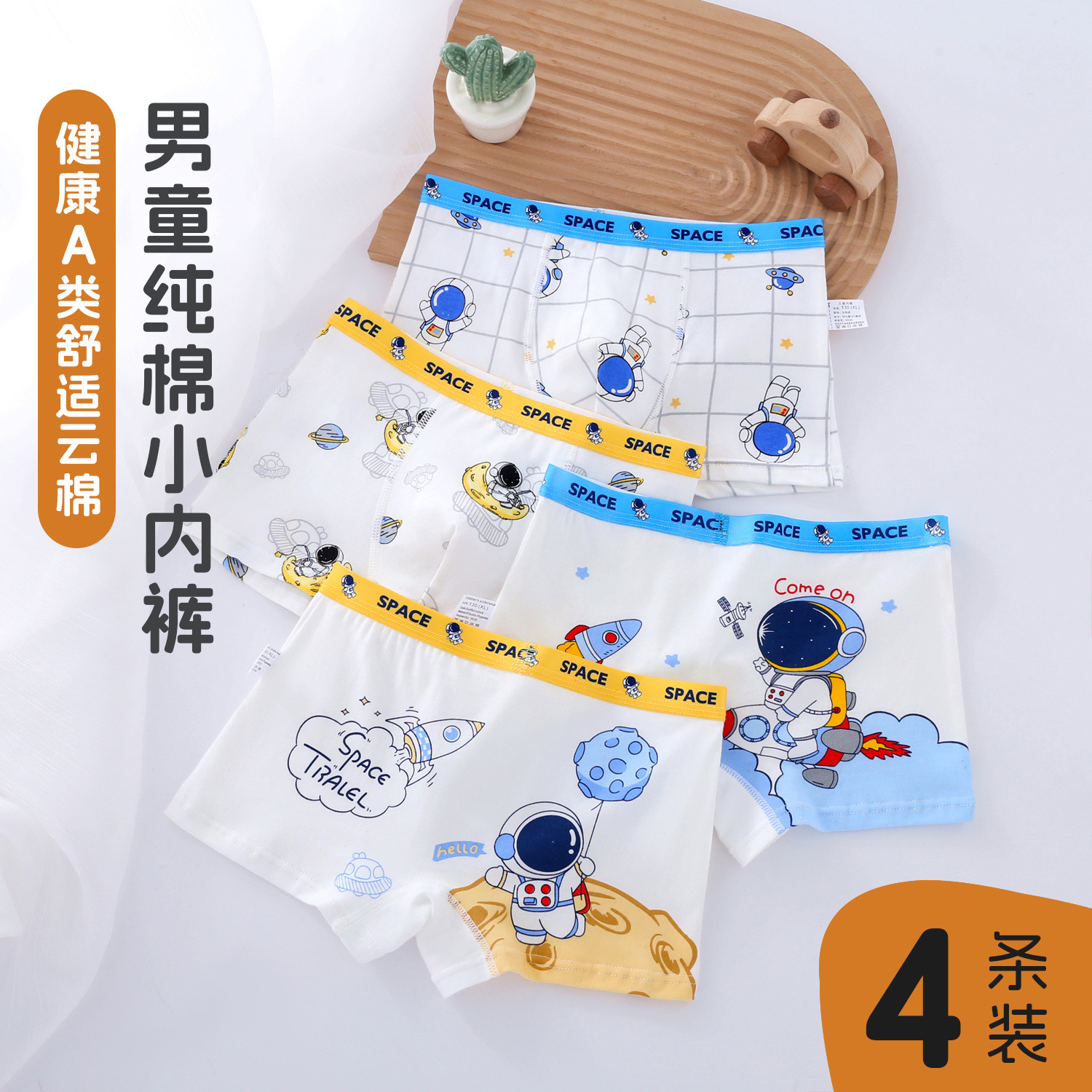 Детское нижнее белье с героями мультфильмов для мальчиков, антибактериальные трусы-боксеры из чистого хлопка, трусы-боксеры маленького и среднего размера для мальчиков-космонавтов