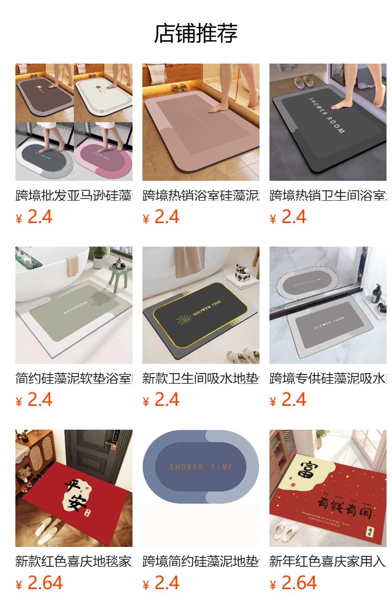 Хит продаж: трансграничный коврик для ванной из диатомовой грязи, быстросохнущий, впитывающий, нескользящий коврик для туалета, бытовой напольный ковер