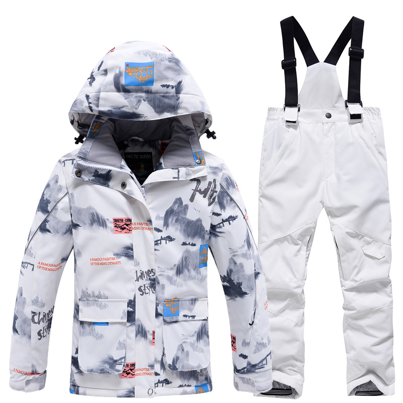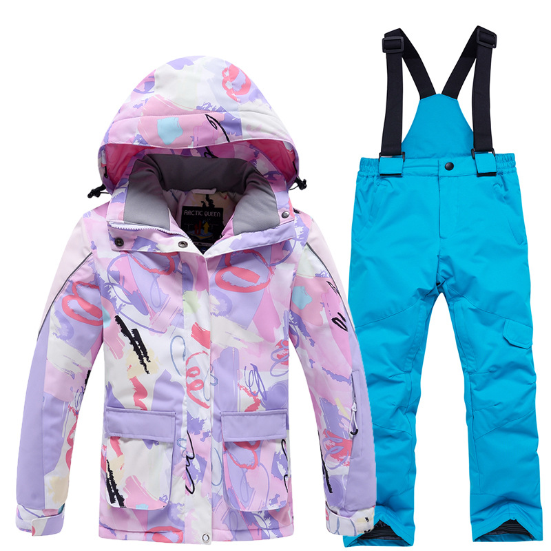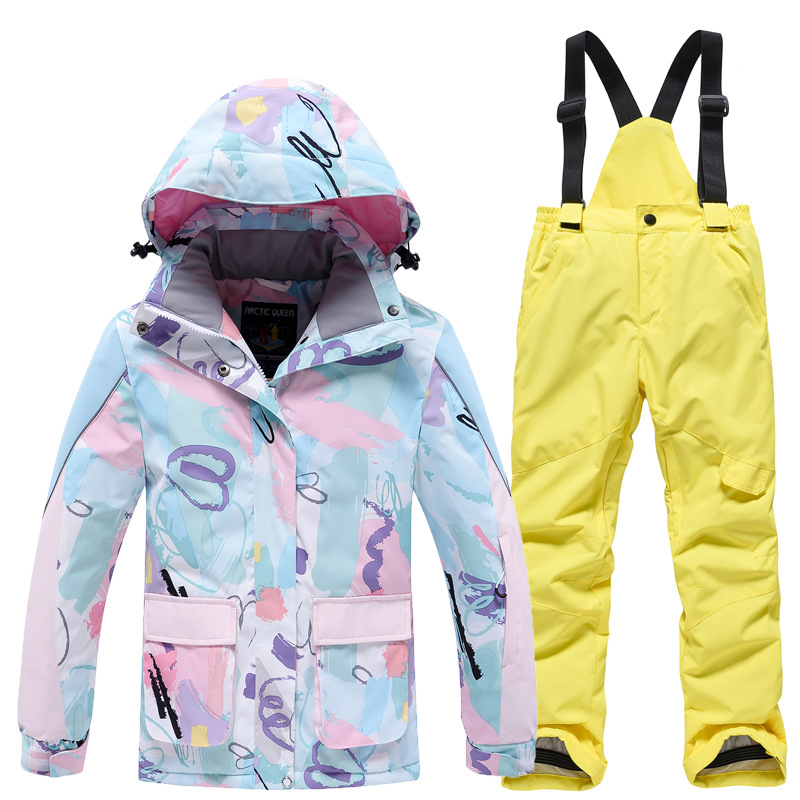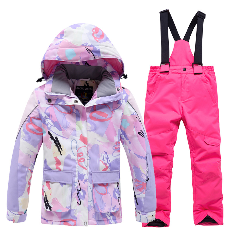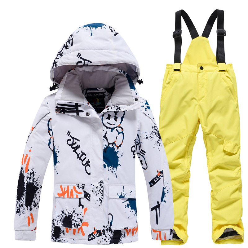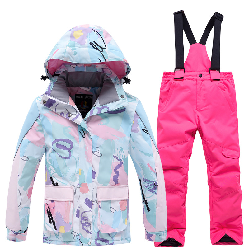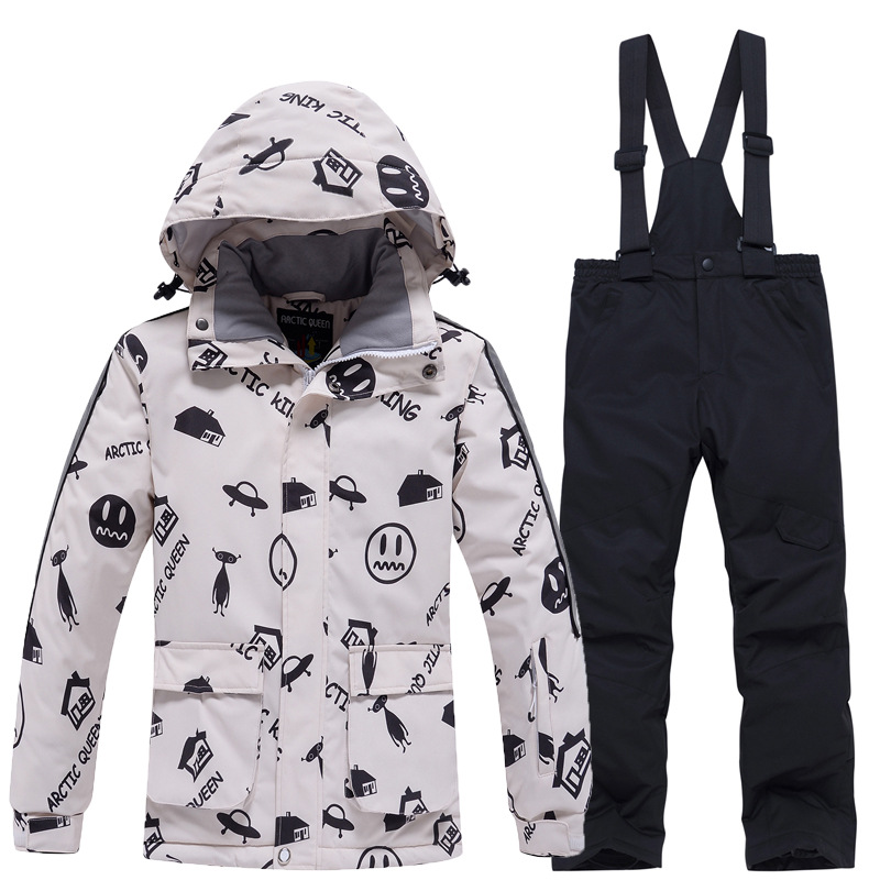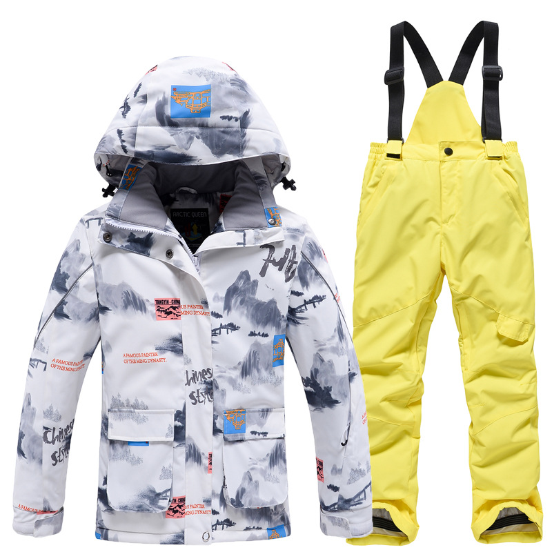 Детский лыжный костюм для мальчиков и девочек, зимний уличный ветрозащитный водонепроницаемый теплый утолщенный лыжный костюм, брючный костюм