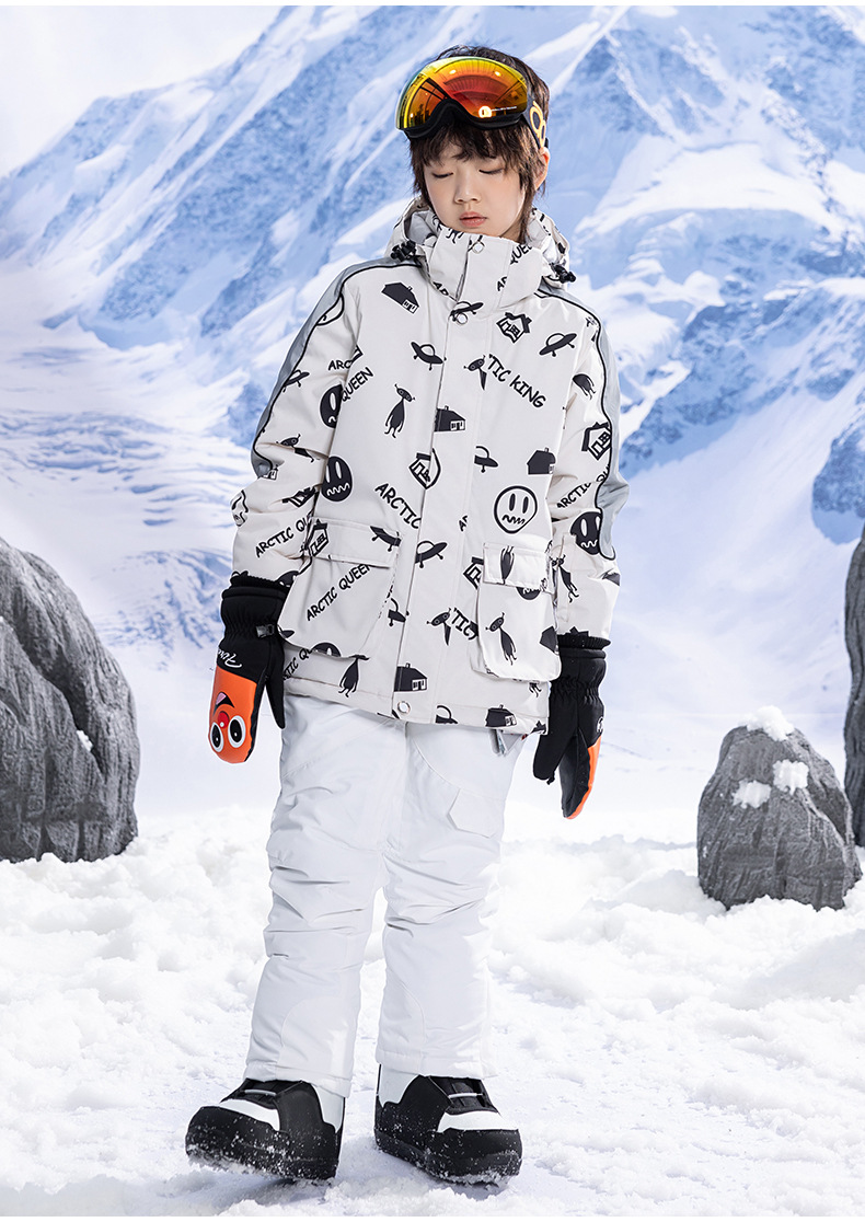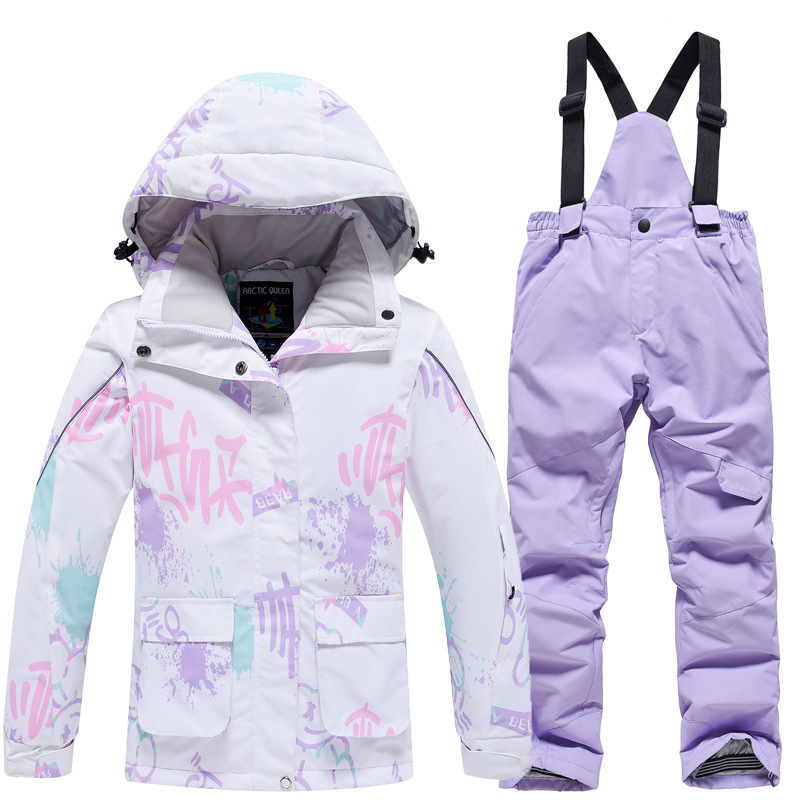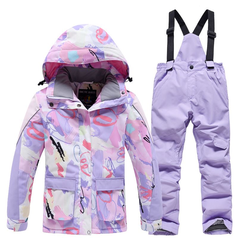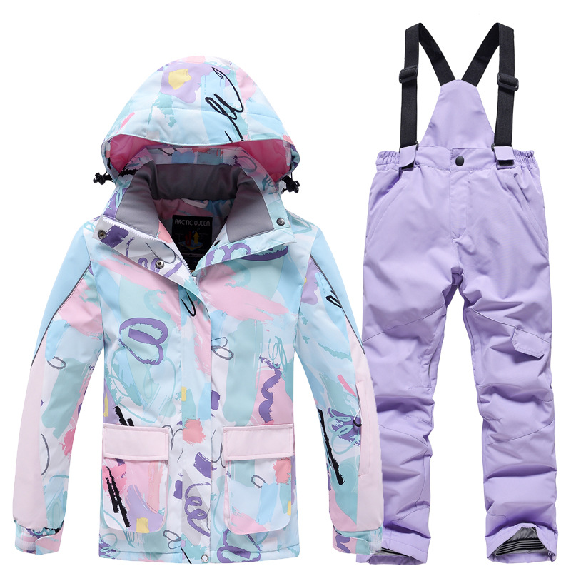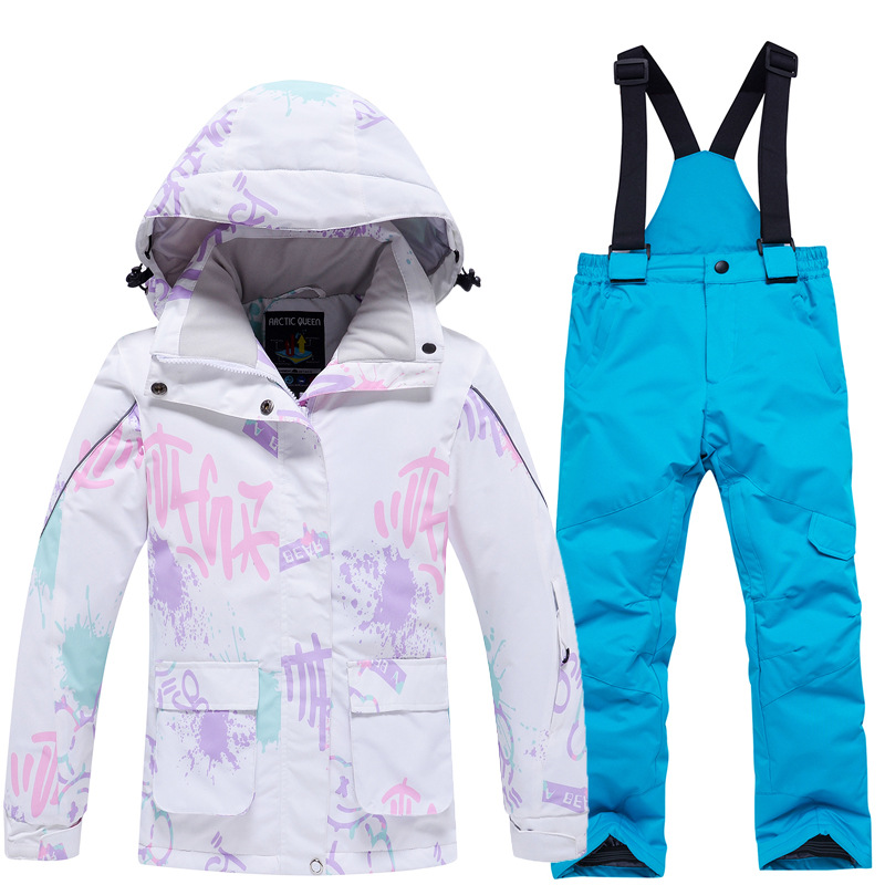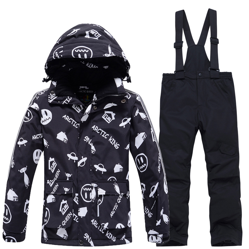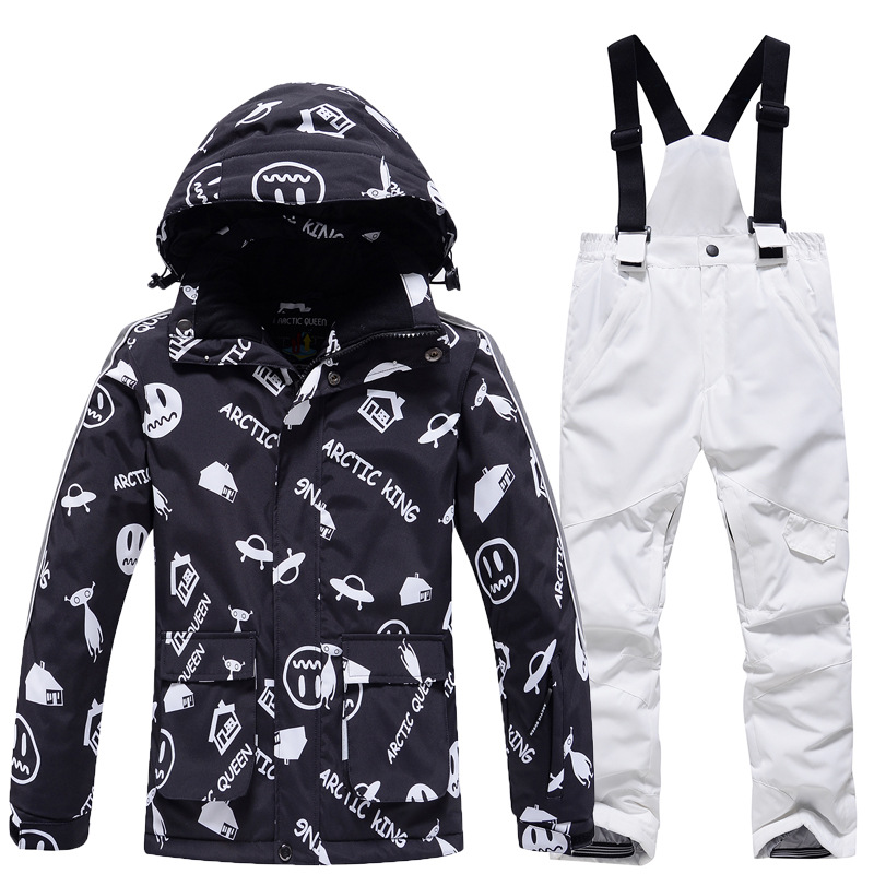 Детский лыжный костюм для мальчиков и девочек, зимний уличный ветрозащитный водонепроницаемый теплый утолщенный лыжный костюм, брючный костюм