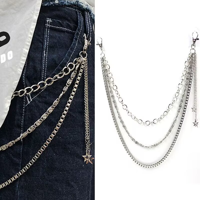 Трансграничная металлическая подвеска с пятиконечной звездой, поясная цепочка, стильная многослойная цепочка, цепочка для брюк, персонализированные аксессуары для одежды