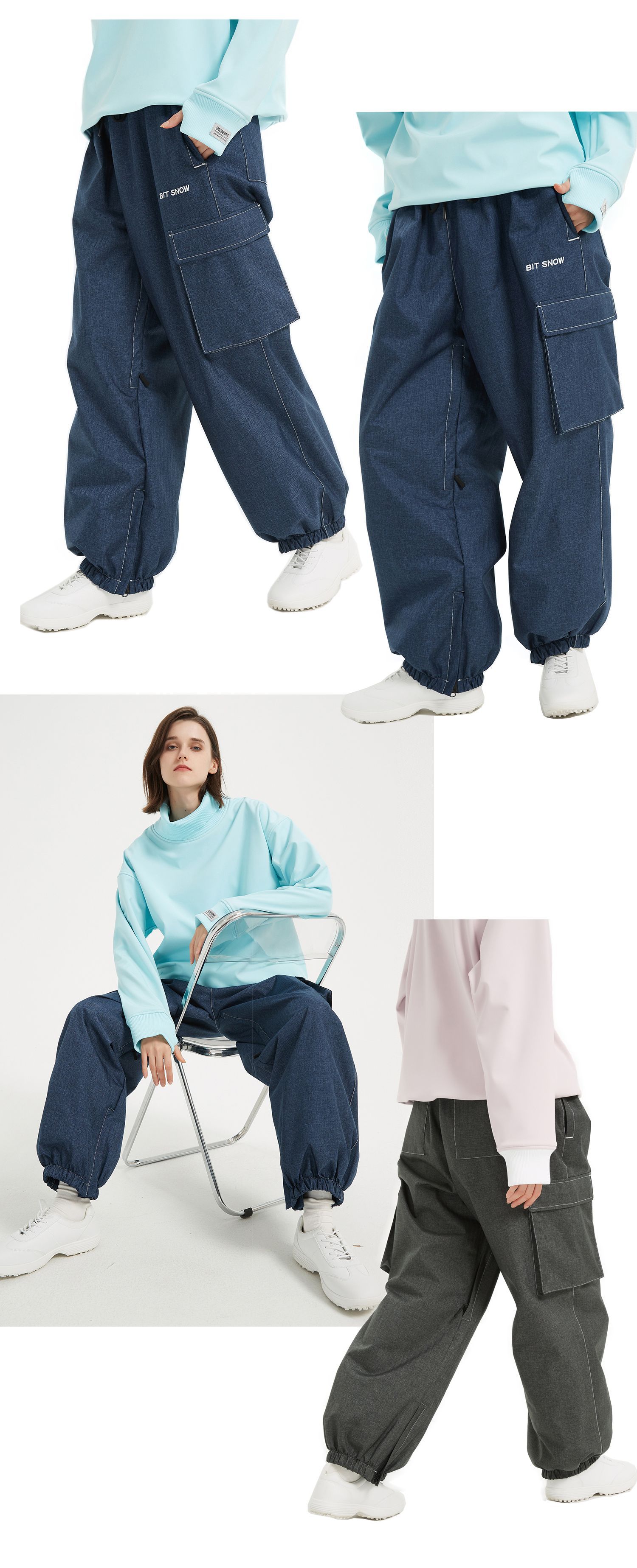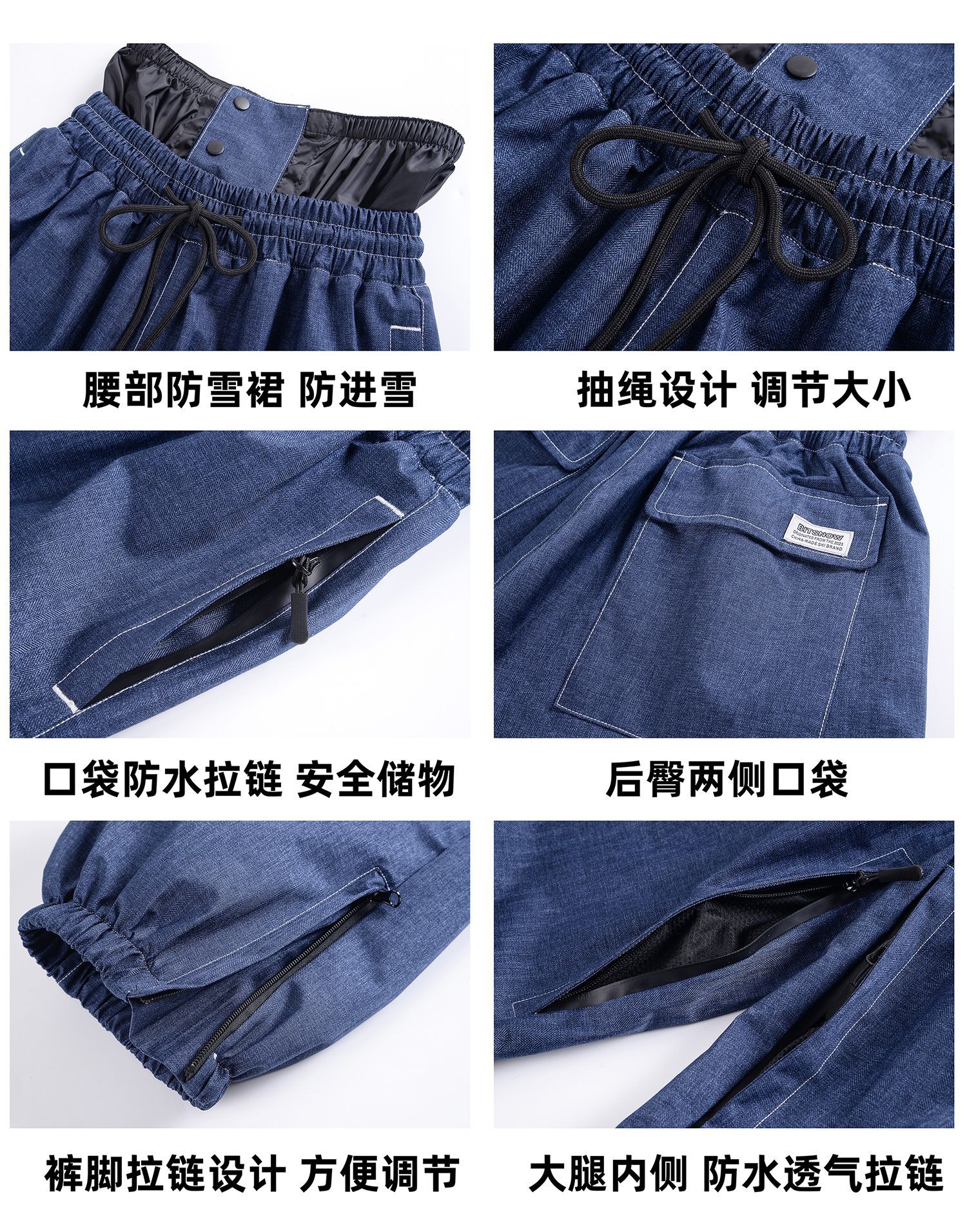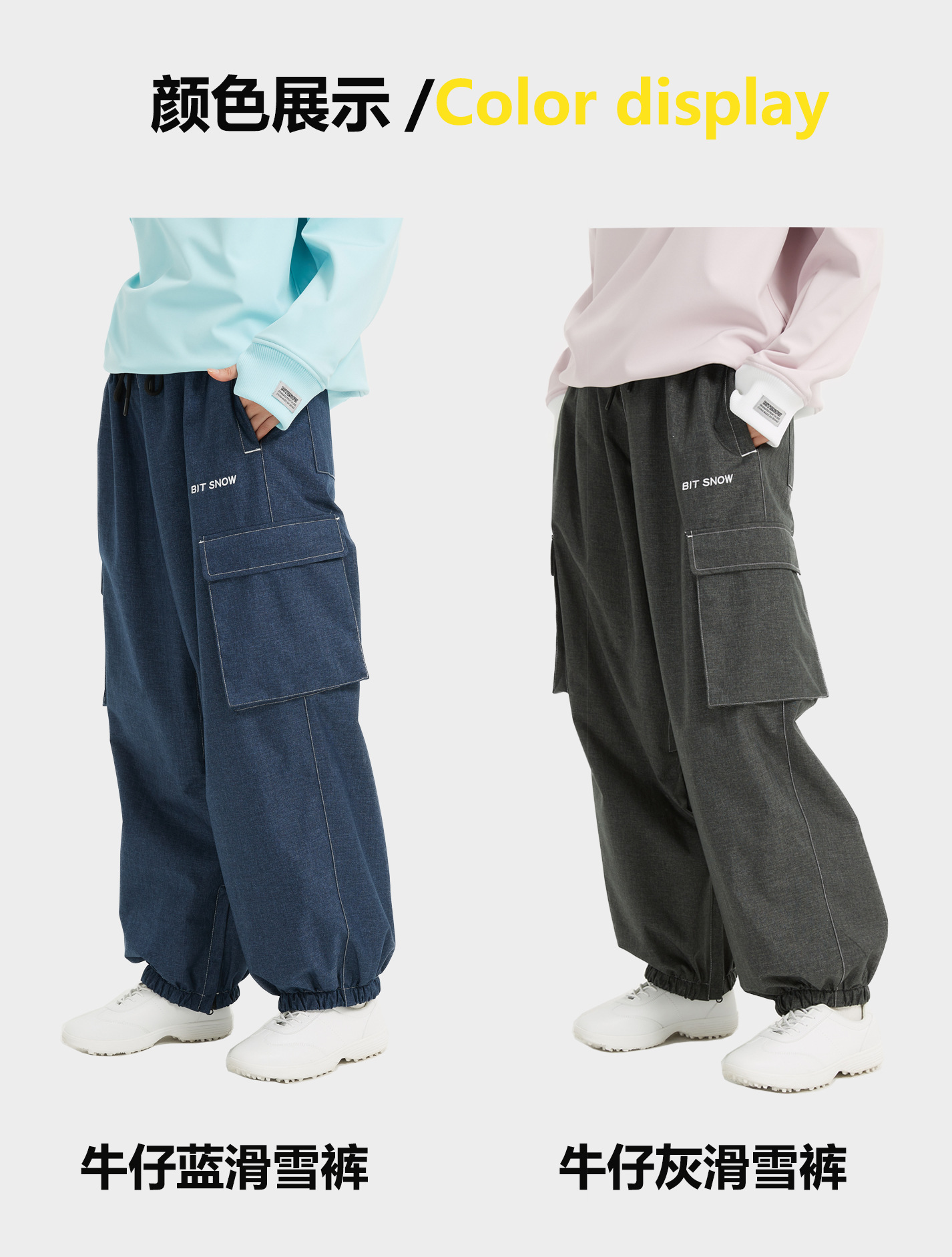 Snow Bit больших размеров Инструменты для сноуборда Джинсовые лыжные штаны для мужчин и женщин Пара Утолщенные теплые ветрозащитные и водонепроницаемые