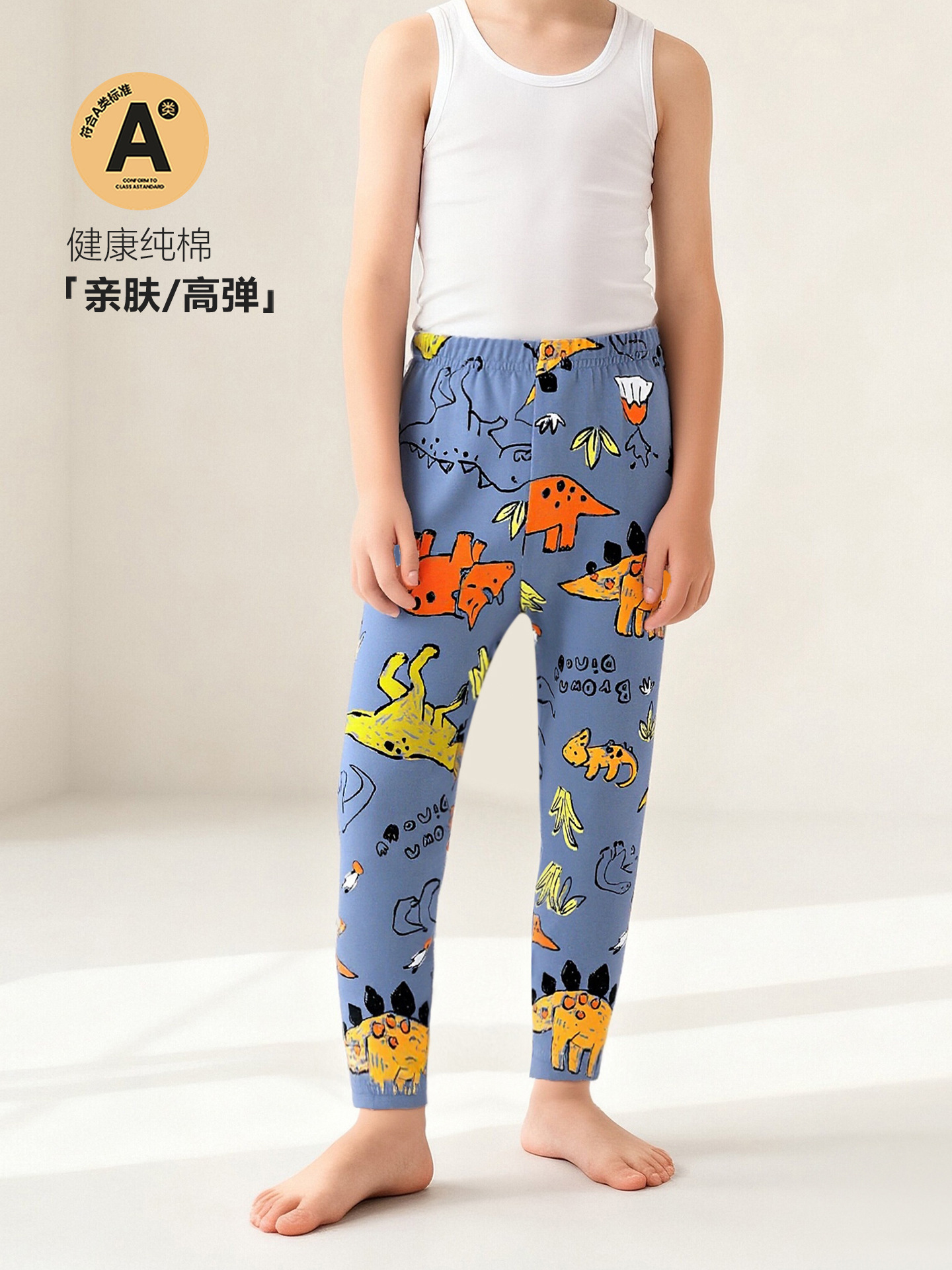 Новые осенние детские хлопковые термобельевые штаны, эластичные штаны для девочек, домашние штаны с принтом, мягкие пижамы для мальчиков.