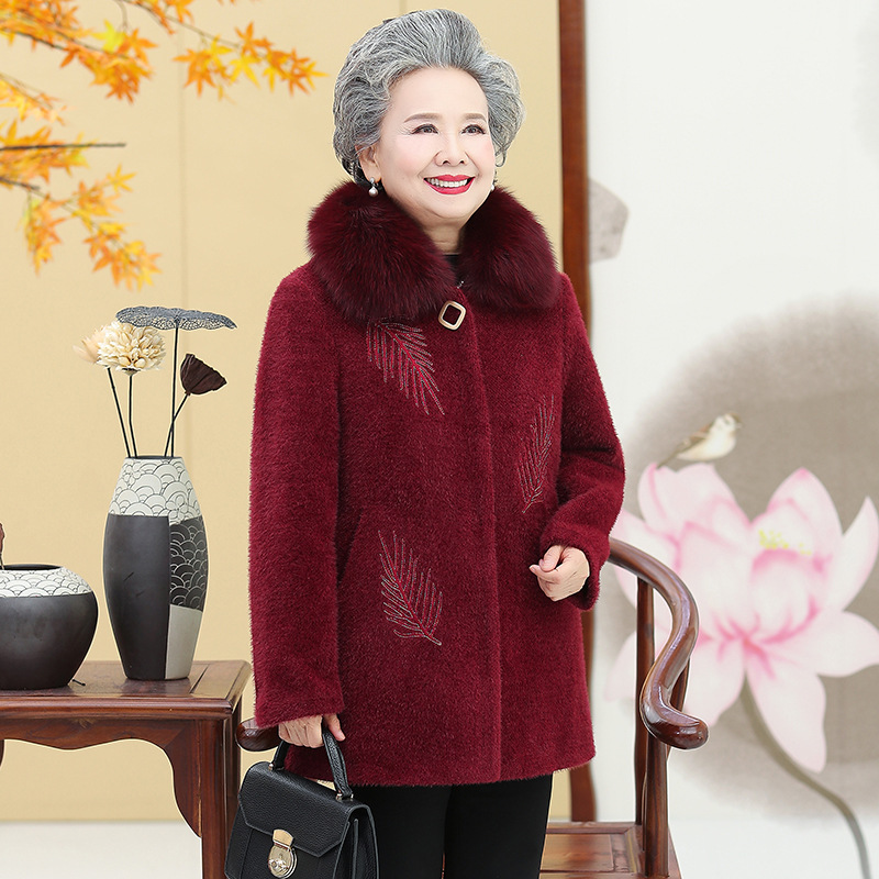 Утепленное флисовое пальто для женщин среднего и старшего возраста, зимнее хлопковое пальто для бабушки, одежда из норкового вельвета для пожилых.