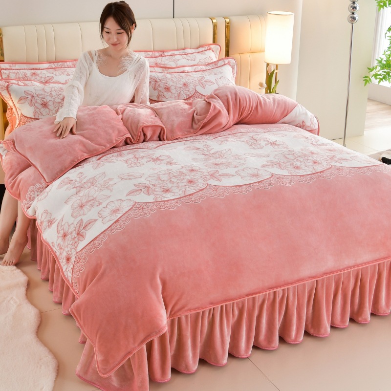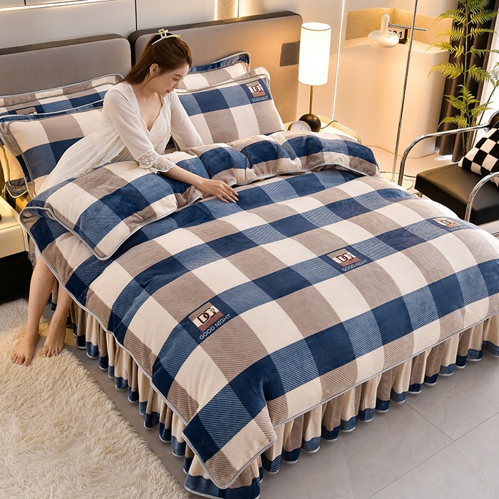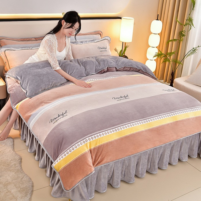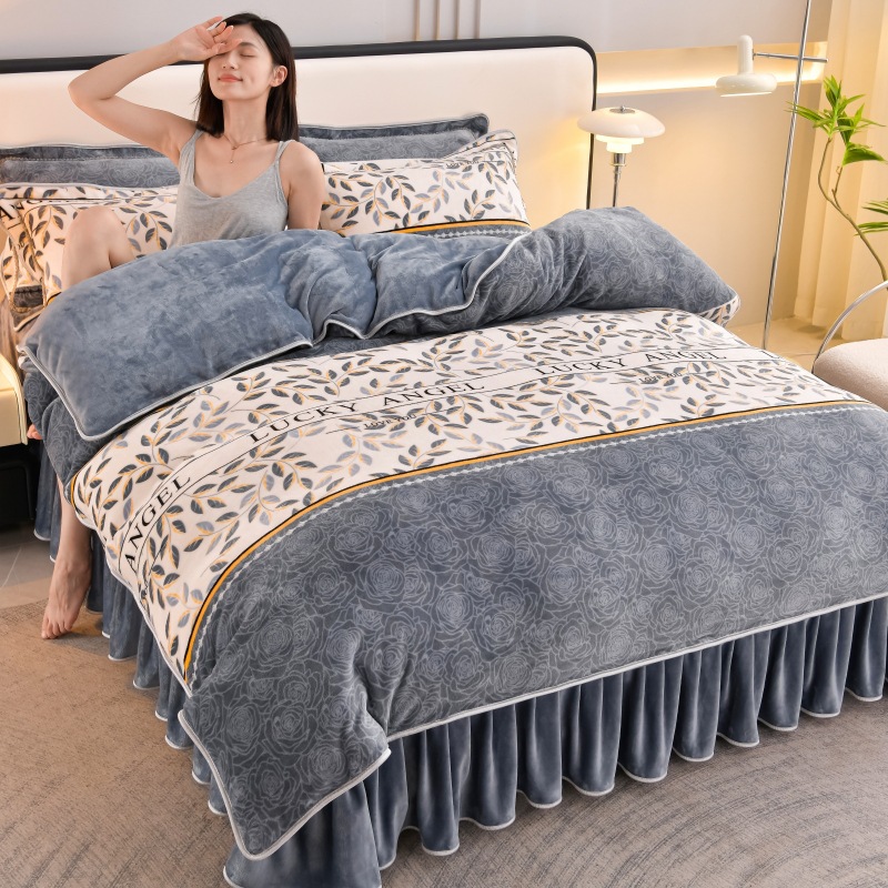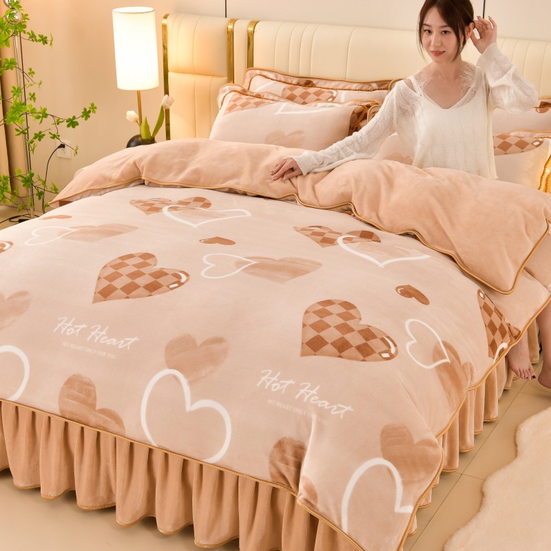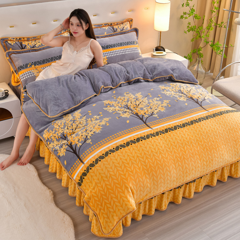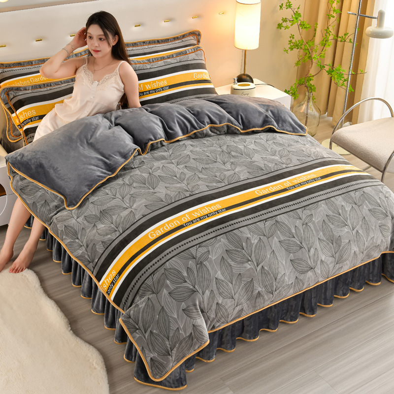 Элитный комплект из четырех предметов из утолщенного молочного вельвета, зимнее теплое покрывало, двусторонний комплект из трех предметов из кораллового вельвета с антистатическим эффектом