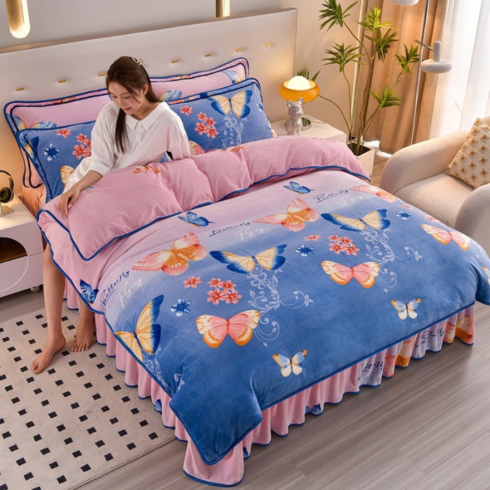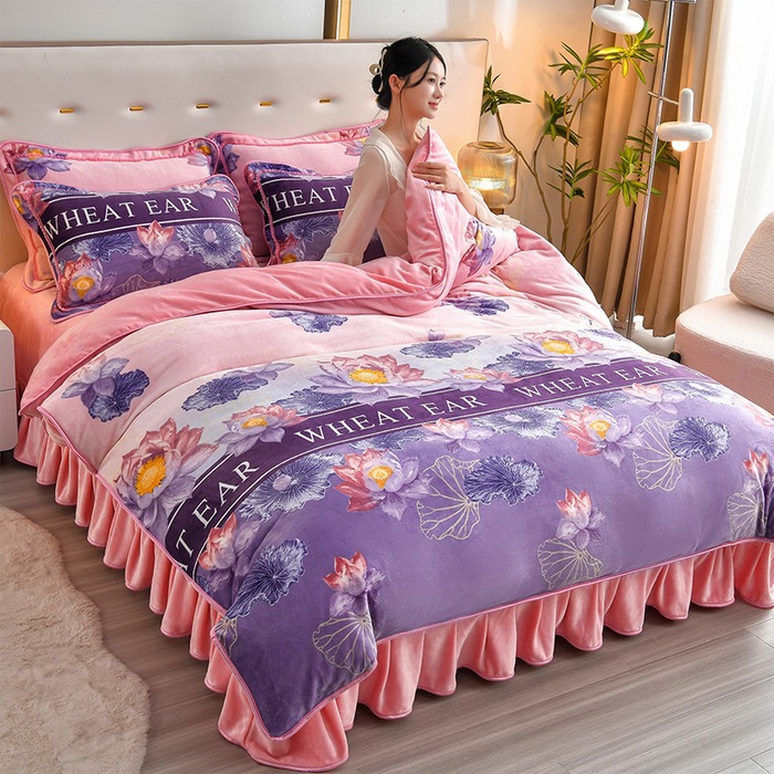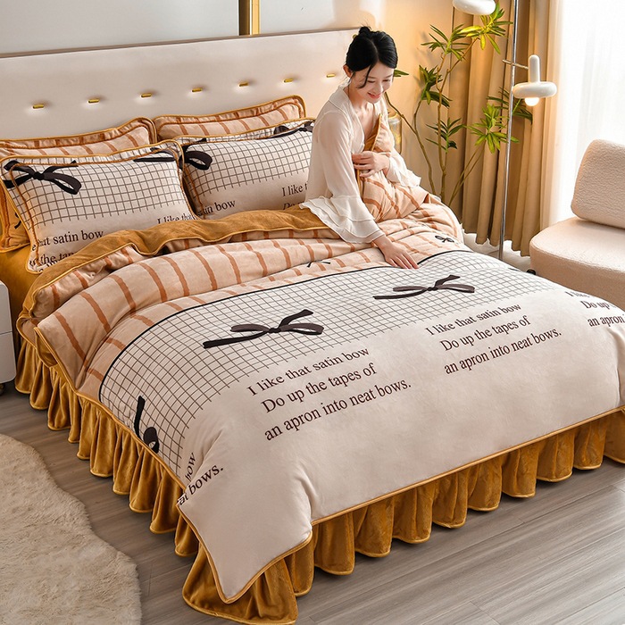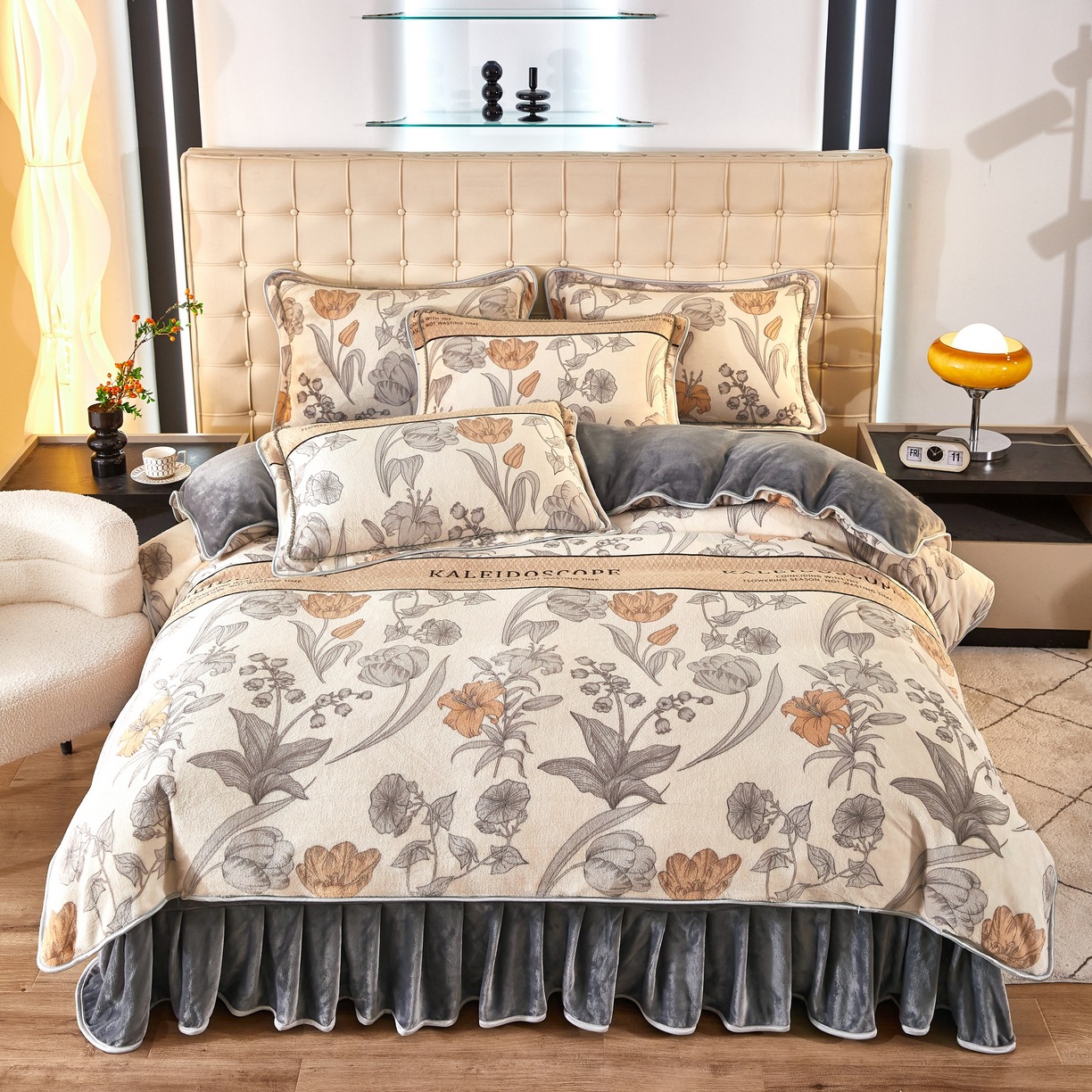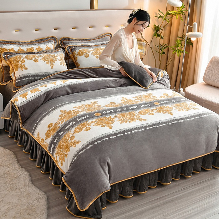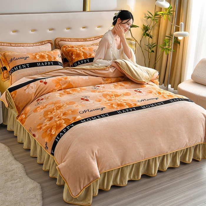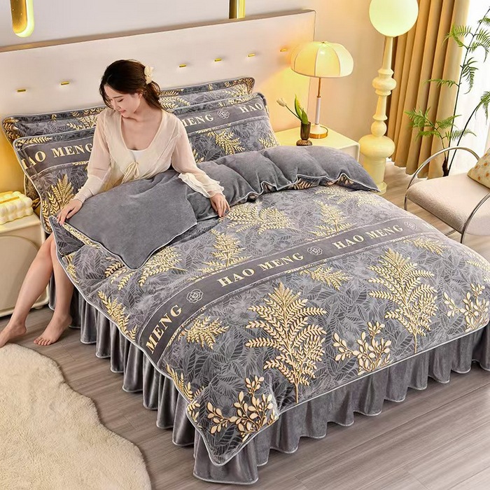 Элитный комплект из четырех предметов из утолщенного молочного вельвета, зимнее теплое покрывало, двусторонний комплект из трех предметов из кораллового вельвета с антистатическим эффектом