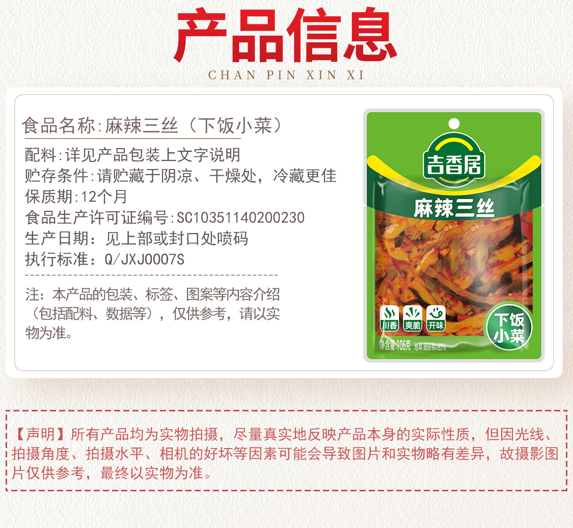 Jixiangju food 106 г хрустящая вигна пряный три шелка Маринованный горчичный клубень редис сушеные маринованные овощи закуска поколение волос