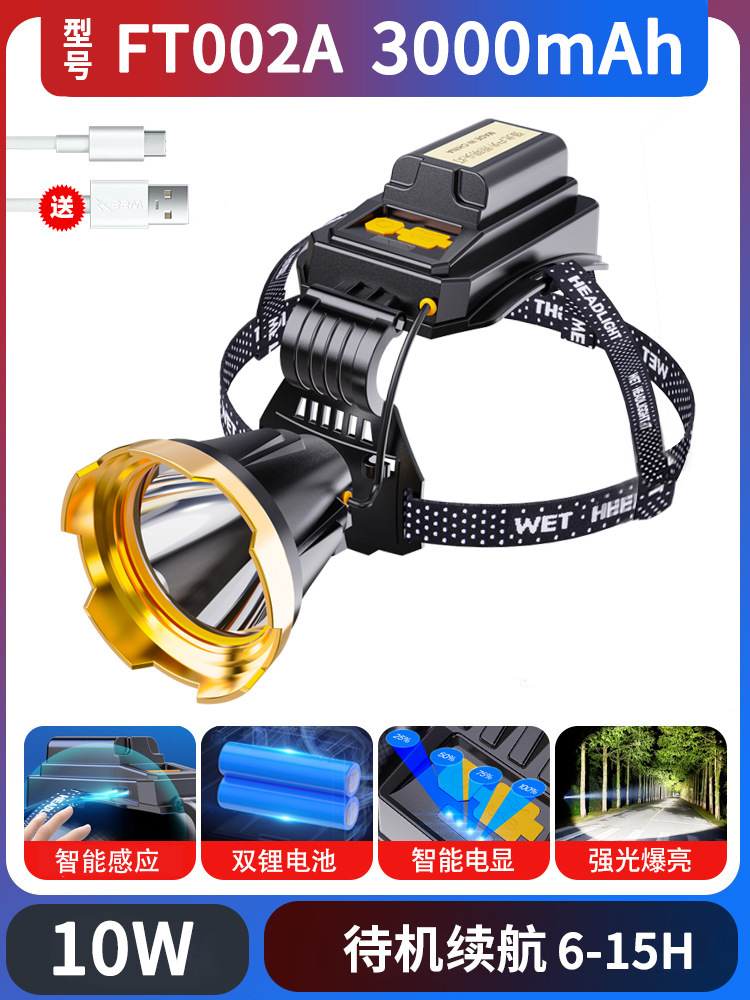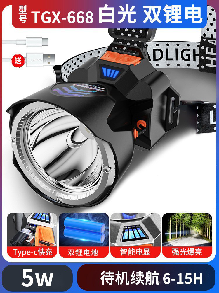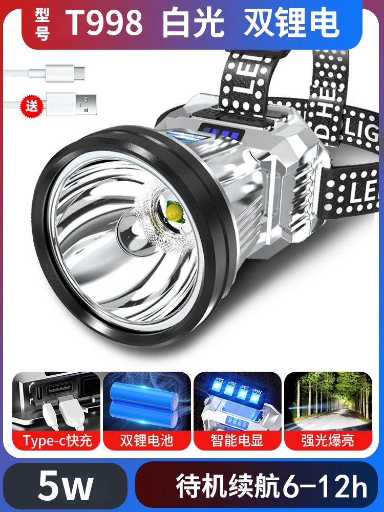 Трансграничная сильная фара, перезаряжаемая на большие расстояния, водонепроницаемая, сверхяркая налобная фара для рыболовного шахтера, фара со сверхдлительным сроком службы батареи.