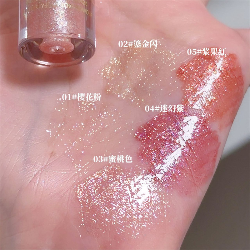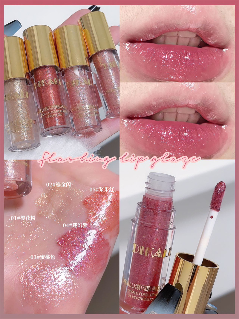 Внезапный порошок сакуры поливы Но.01 губы; Вспышка золота поливы Но.02 губы вспышки; Вспышка Глазурь No.03 Персиковая вспышка; Flash Lip Glaze No.04 Психоделический фиолетовый; Вспышка губ Глазурь No.05 Berry Red