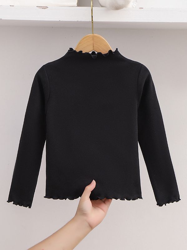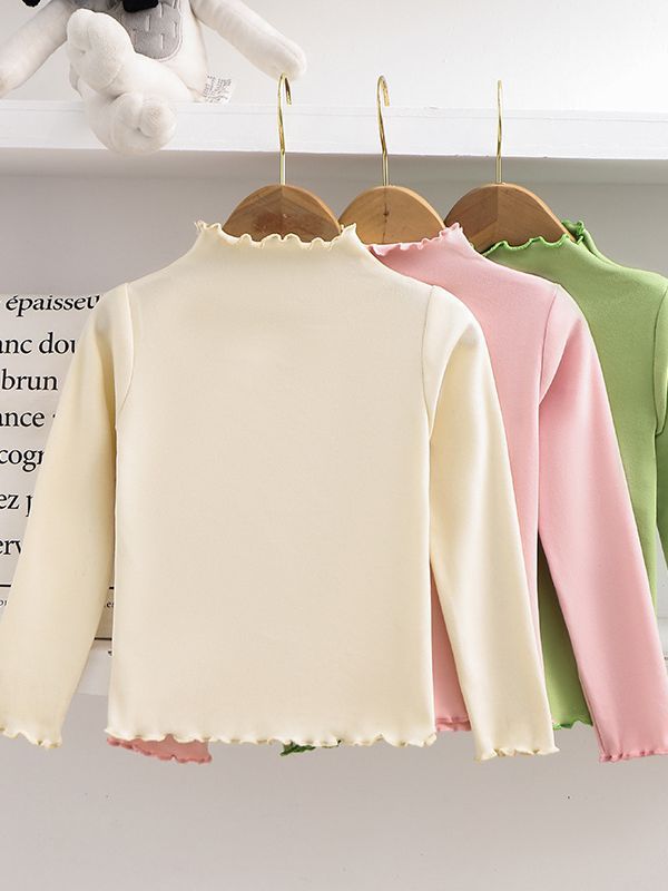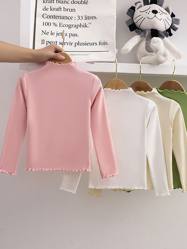 [Оптовая Продажа с фабрики] Базовая рубашка для девочек Осень и зима 2023 Новая детская Однотонная футболка с длинным рукавом в западном стиле с деревянными ушками