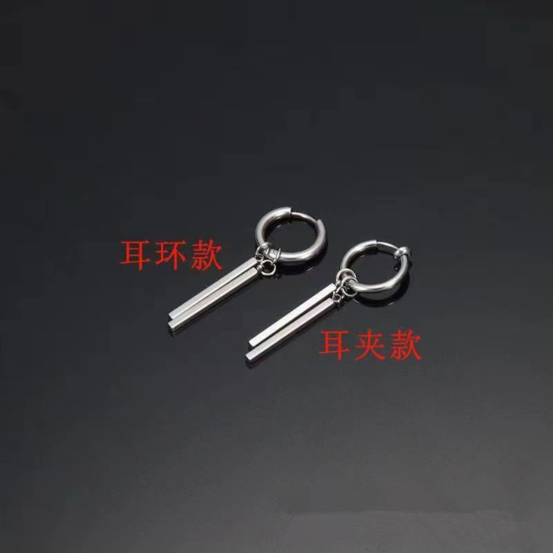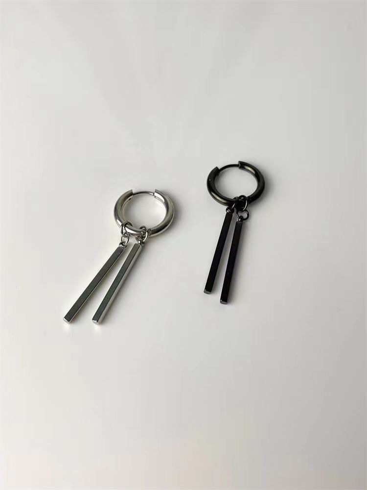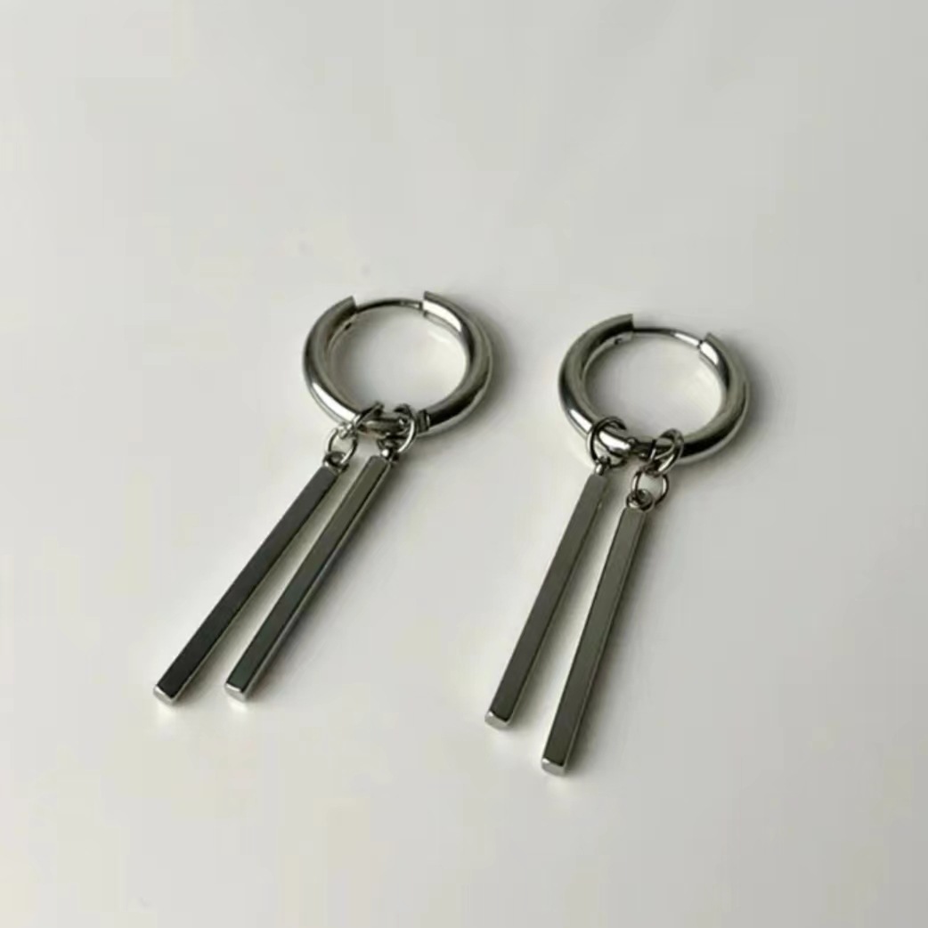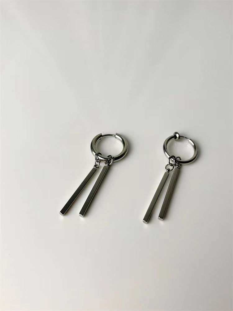 Серьги из титановой стали мужские приливы высокого уровня чувство ушные гвозди женские прямоугольные палки двойные серьги серьги серьги длинные полоски ins холодный ветер