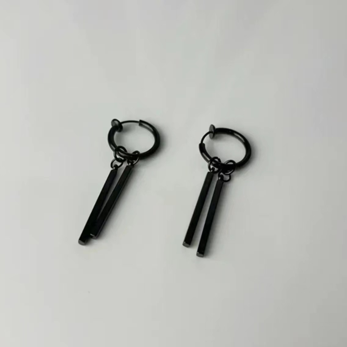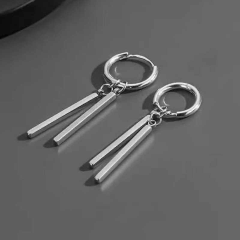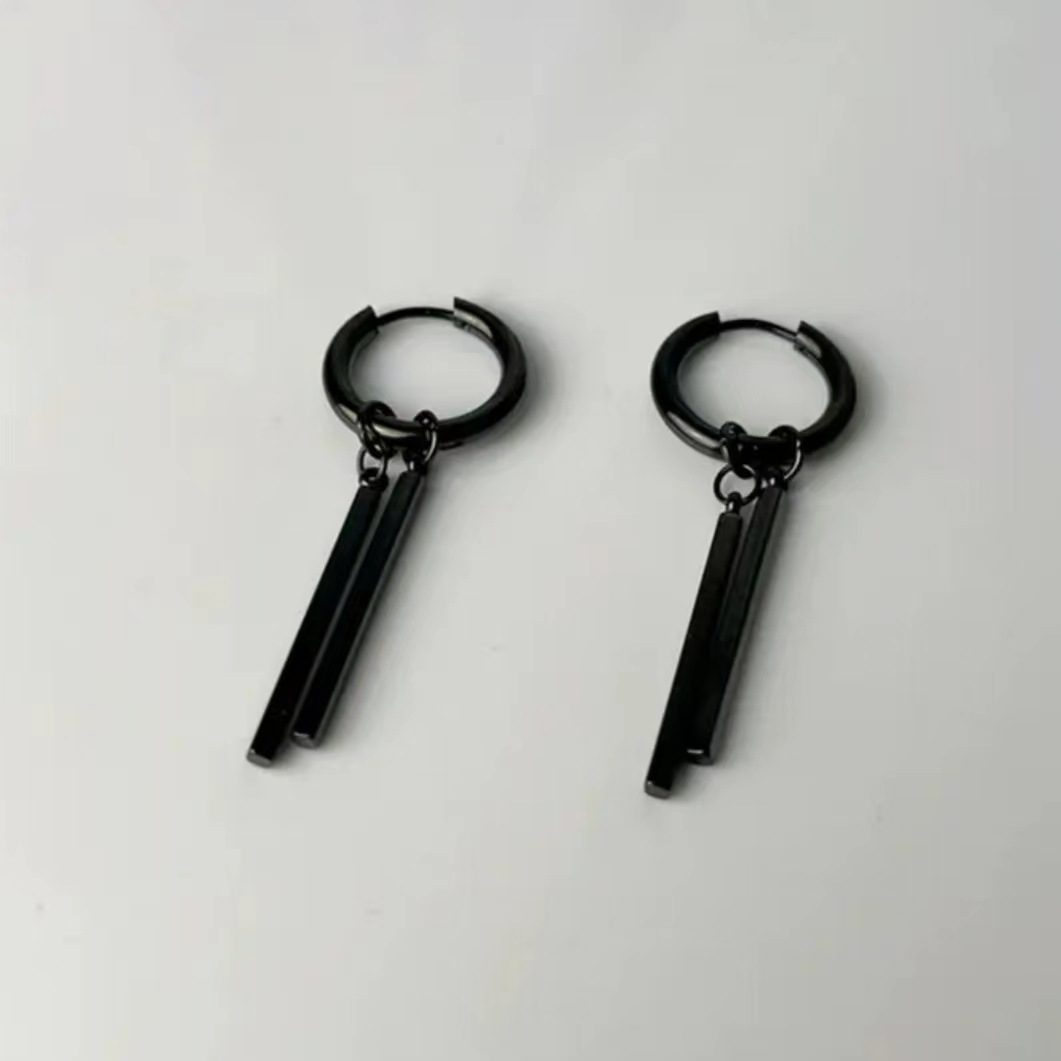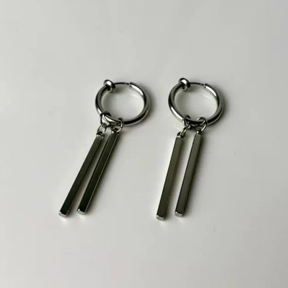 Серьги из титановой стали мужские приливы высокого уровня чувство ушные гвозди женские прямоугольные палки двойные серьги серьги серьги длинные полоски ins холодный ветер