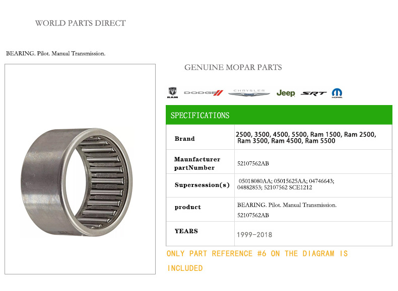 Для 1999-2018 DODGE RAM 1500 2500 направляющий подшипник сцепления 52107562AB