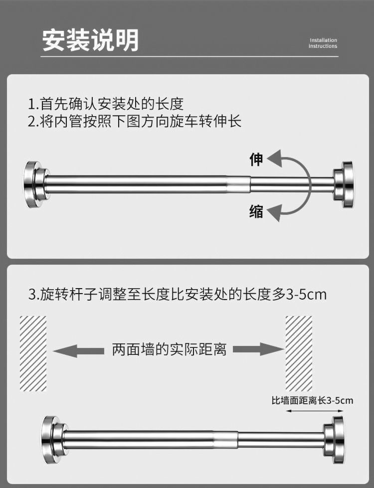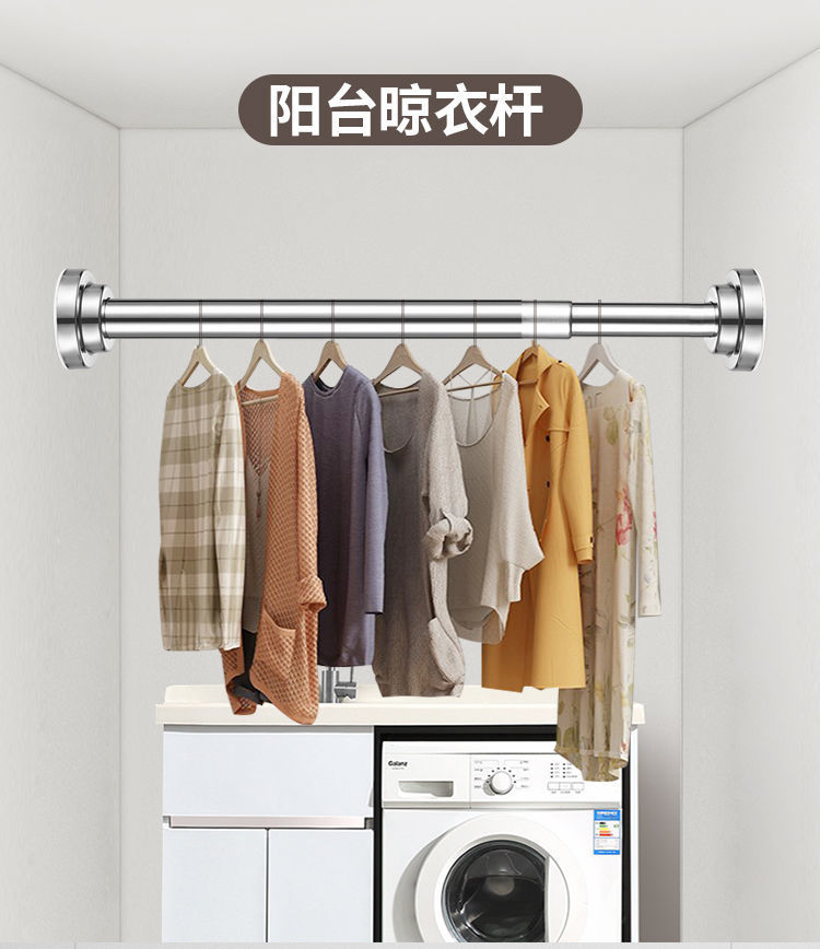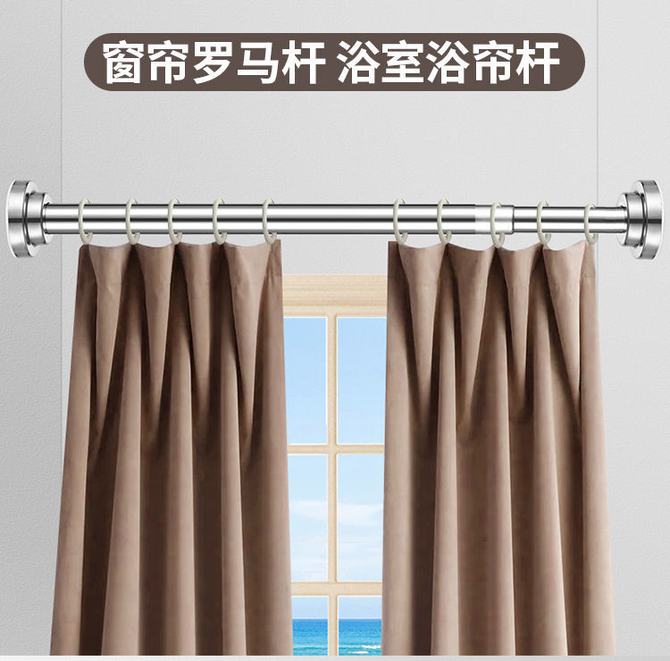 Телескопический стержень из нержавеющей стали без отверстий Стержень для сушки одежды Ванная комната Занавес для душа Карниз Дверной карниз Спальня Шкаф Опорный стержень
