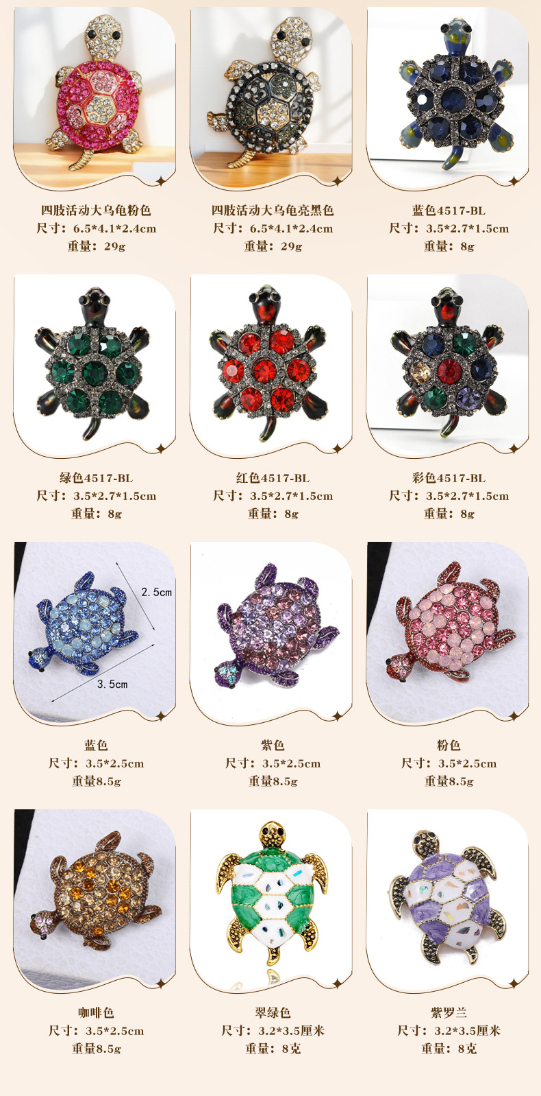 Размер белого цвета: около 5,7* 4cm Вес: 17 грамм; Зеленый размер: около 5,7* 4cm Вес: 17 грамм; Розовый Размер: около 5,7* 4cm Вес: 17 г; Малахитовый зеленый размер: около 5,7* 4cm Вес: 17 грамм; Темно-синий размер: около 5,7* 4cm Вес: 17 грамм; Размер голубого озера: около 5,7* 4cm Вес: 17 грамм; Цвет соответствует маслу темно-синего цвета. Размер: около 6,7 * 5cm Вес: 33,8 грамма.; Ретро-золото Размер: 6,1*4 см Вес: 19,3 г; Ретро-серебро Размер: 6,1*4 см Вес: 19,3 г; Размер древнего серебра: 4,5*3,8 см. Вес: 9,91 г.; Размер имитации золота: 4,5*3,8 см. Вес: 9,91 г.; Размер темного кофе: 3,4*3,3 см. Вес: 10 г.; Размер легкого кофе: 3,4*3,3 см, вес: 10 г.; Размер голубого озера: 3,4*3,3 см. Вес: 10 г.; Синий 4475-BL Размер: 3,5*3,1*1,1 см Вес: 8,2 г; Цвет 4475-BL Размер: 3,5*3,1*1,1 см Вес: 8,2 г; Размер серии с синим бриллиантом: 4,1*4,2*1,7, вес: 19,5 г.; Оливково-зеленый размер: 4,1*4,2*1,7 вес: 19,5 г; Белый размер: 4,1*4,2*1,7 Вес: 19,5 г; Серебристо-белая серия Размер: 4,1*4,2*1,7 Вес: 19,5 г; Цвет шампанского Размер: 4,1*4,2*1,7 Вес: 19,5 г; Размер серебра 5,5*3,2*1,4 см, вес: 11,8 г.; Размер золота 5,5*3,2*1,4 см, вес: 11,8 г.; Размер золота: 7,4*4,9*1,1 см. Вес: 21,9 г.; Размер бриллианта серебра AB: 7,4*4,9*1,1 см. Вес: 21,9 г.; Размер серебряного белого бриллианта: 7,4*4,9*1,1 см, вес: 21,9 г.; Большая черепаха с подвижными конечностями. Синий. Размер: 6,5*4,1*2,4 см. Вес: 29 г.; Большая черепаха с подвижными конечностями. Розовый. Размер: 6,5*4,1*2,4 см. Вес: 29 г.; Большая черепаха с подвижными конечностями, ярко-черного цвета. Размер: 6,5*4,1*2,4 см. Вес: 29 г.; Синий 4517-BL Размер: 3,5*2,7*1,5 см: Вес: 8 г; Зеленый 4517-BL Размер: 3,5*2,7*1,5 см: Вес: 8 г; Красный 4517-BL Размер: 3,5*2,7*1,5 см: Вес: 8 г; Цвет 4517-BL Размер: 3,5*2,7*1,5 см: Вес: 8 г; Синий размер: 3,5*2,5 см, вес 8,5 г.; Фиолетовый размер: 3,5*2,5 см, вес 8,5 г.; Розовый размер: 3,5*2,5 см, вес 8,5 г.; Размер коричневого цвета: 3,5*2,5 см, вес 8,5 г.; Изумрудно-зеленый размер: 3,2* 3.5cm Вес: 8 грамм; Фиолетовый Размер: 3,2* 3.5cm Вес: 8г