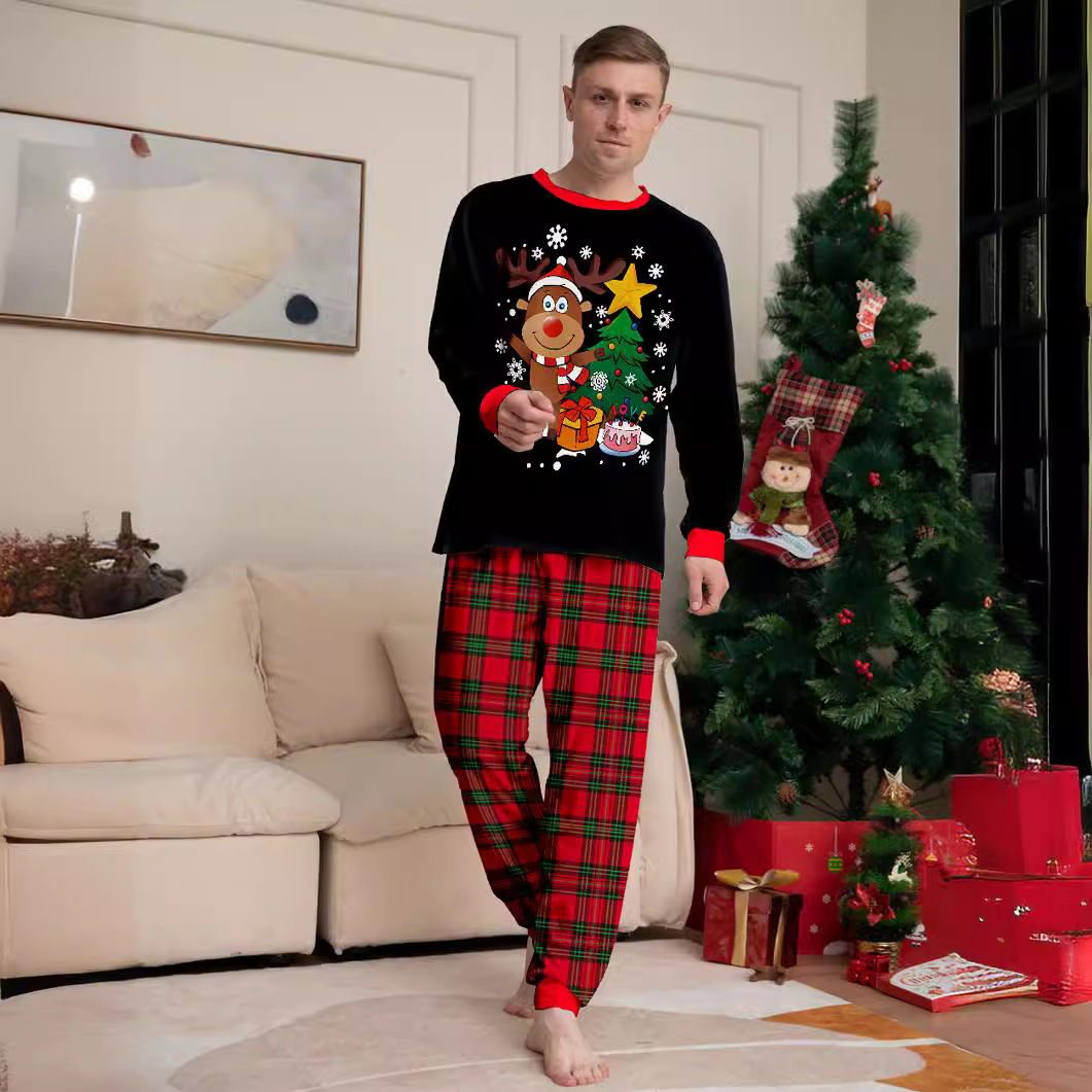 2023 Европа и Америка Amazon Cross-Border New Deer Snowflake Клетка Рождественская Домашняя одежда с принтом для родителей и детей