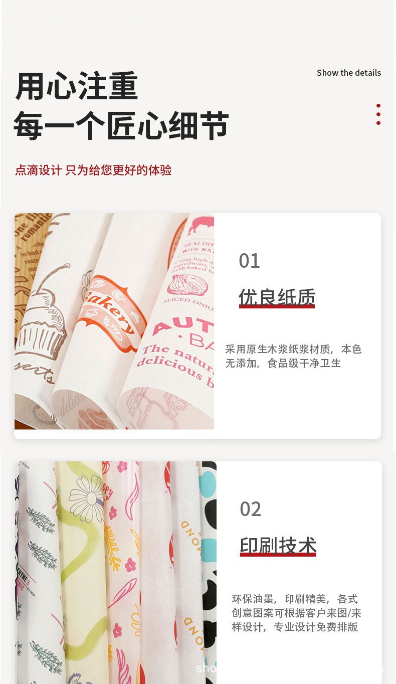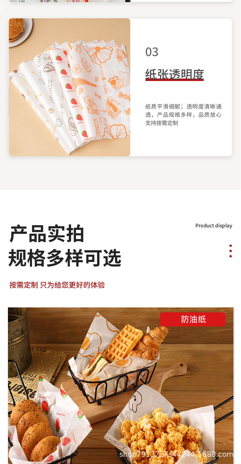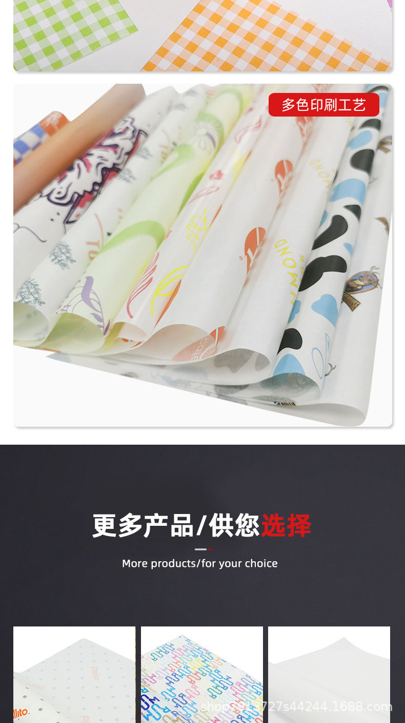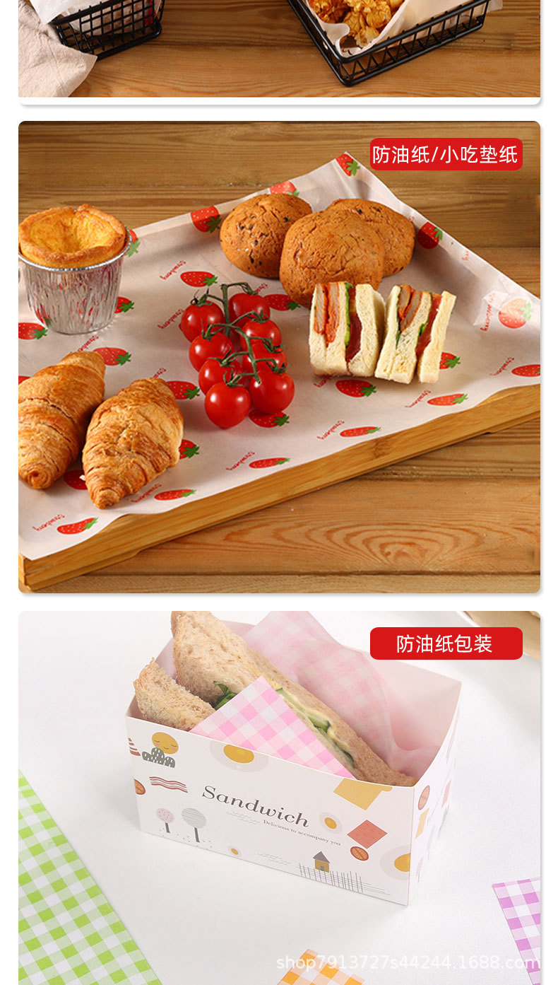 Изготовленная на заказ пищевая маслостойкая бумажная тарелка Подушка Бумага маслостойкая тарелка бумага гамбургер куриный рулон рисовые шарики упаковочная бумага для сэндвичей