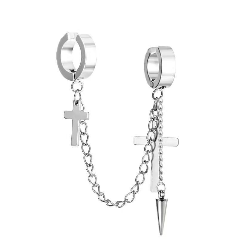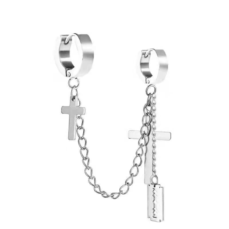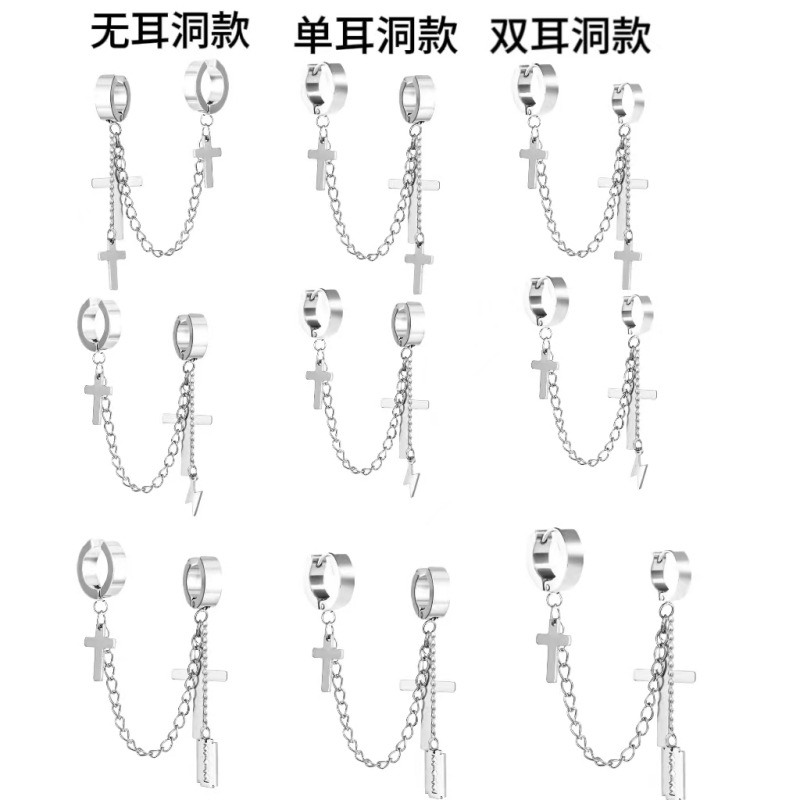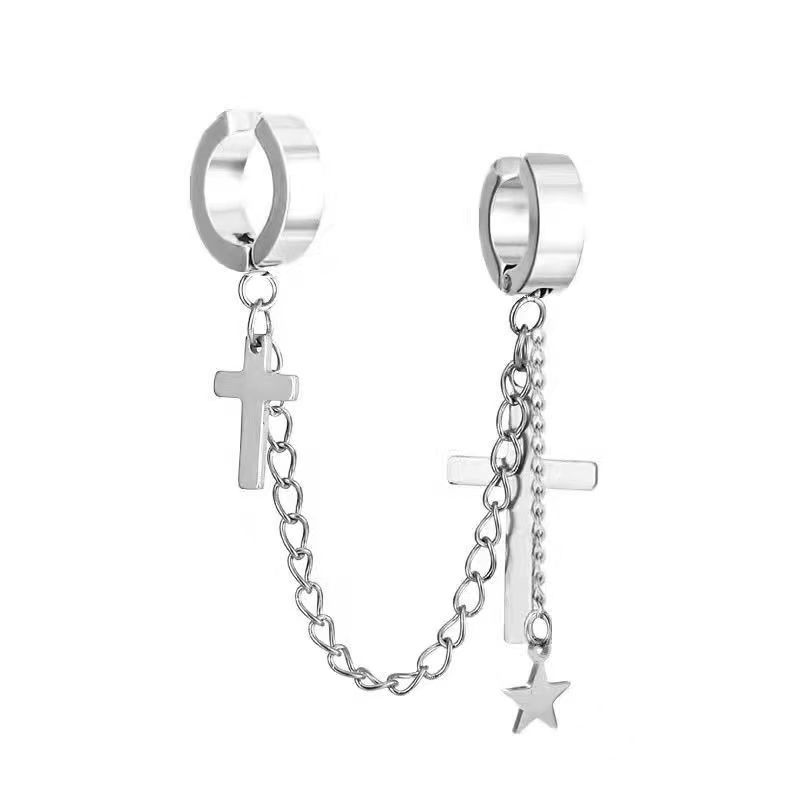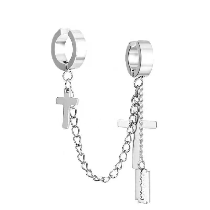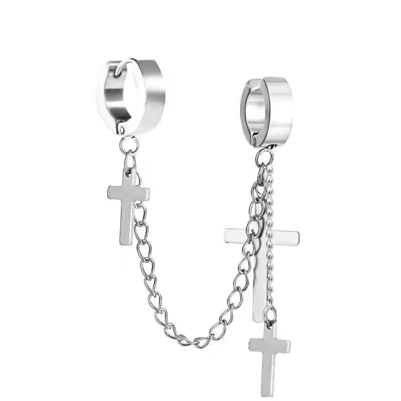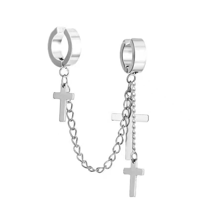 Маленькие оптовые серьги-клипсы из нержавеющей стали, креативные аксессуары в виде креста, серьги-клипсы с цепочкой и кисточками, модные мужские персонализированные украшения, серьги.
