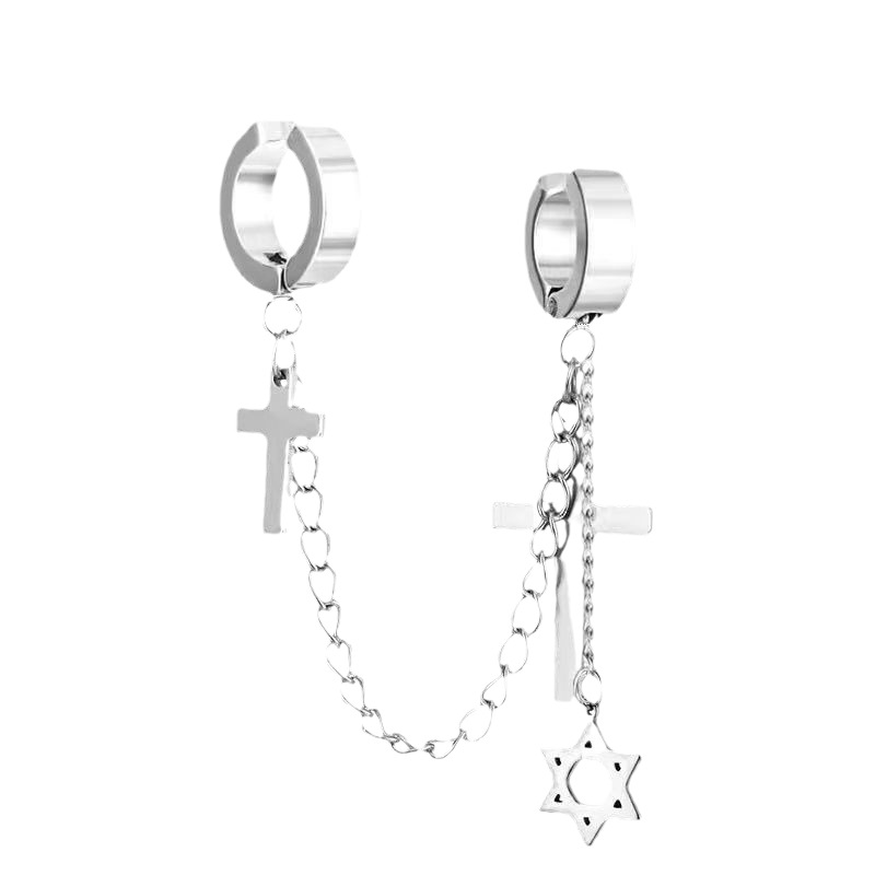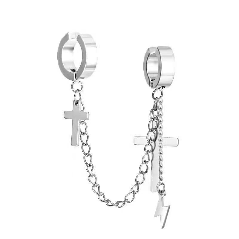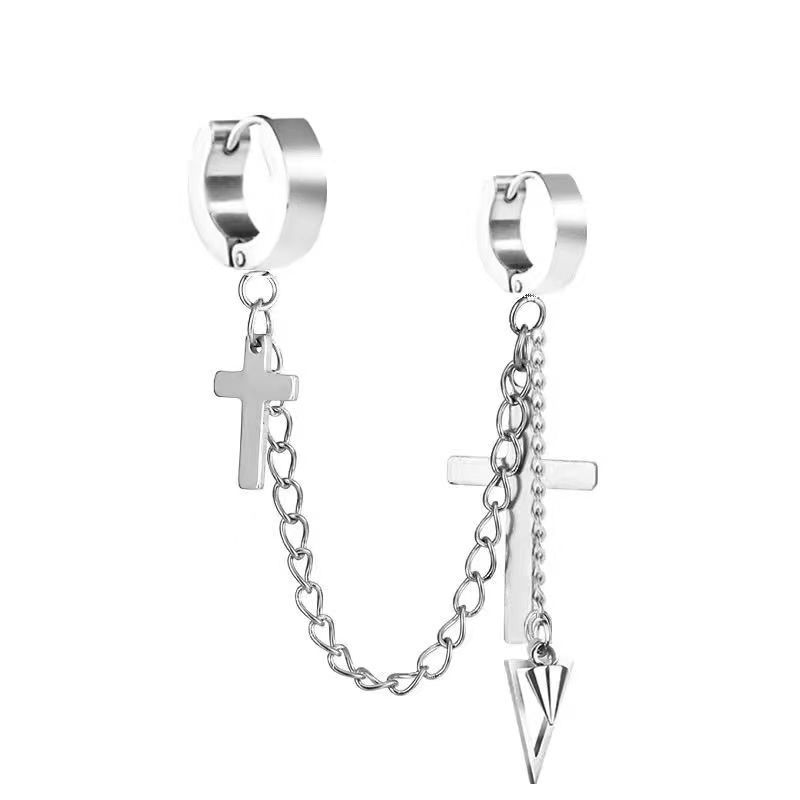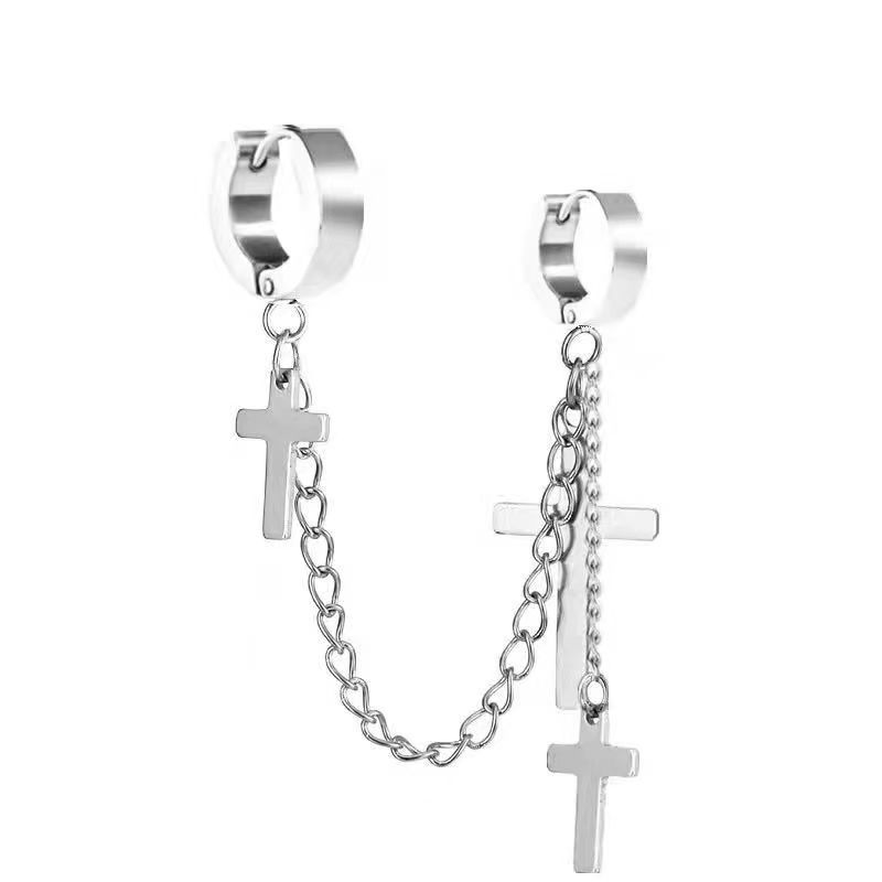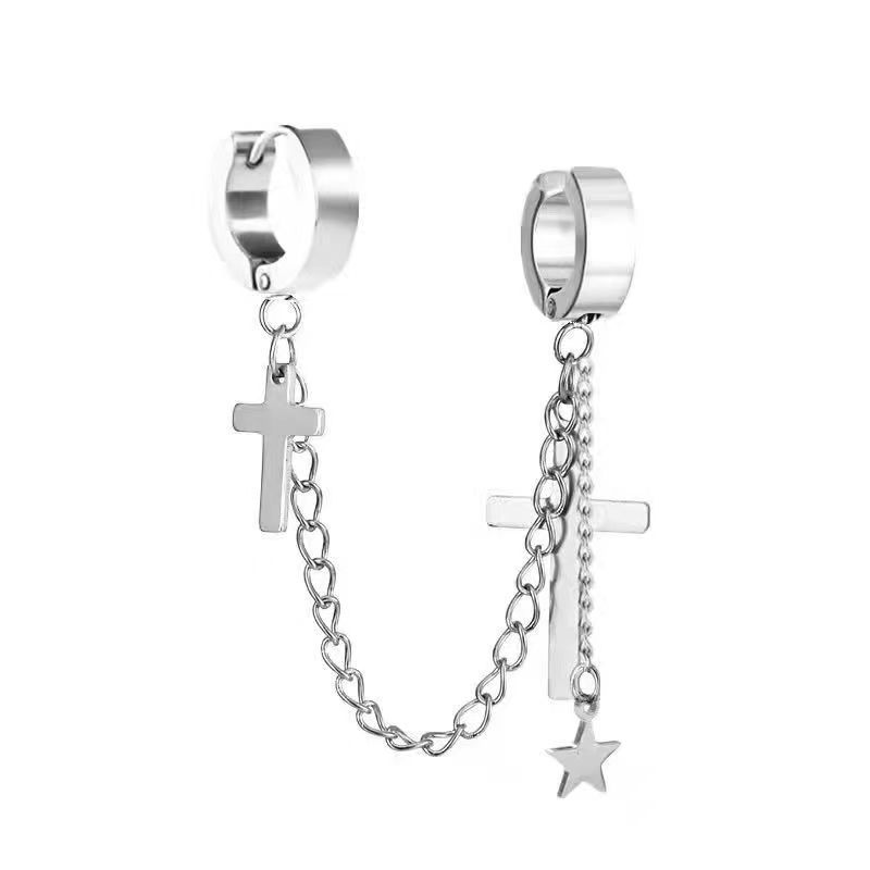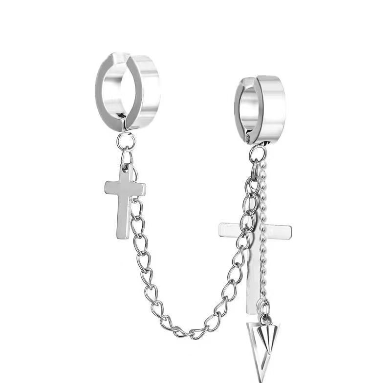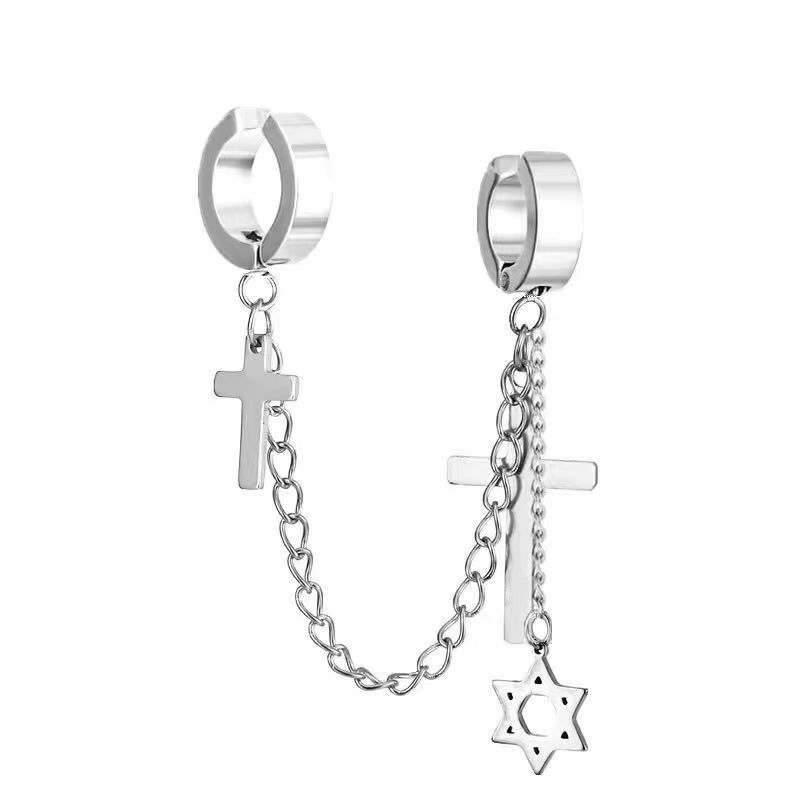 Маленькие оптовые серьги-клипсы из нержавеющей стали, креативные аксессуары в виде креста, серьги-клипсы с цепочкой и кисточками, модные мужские персонализированные украшения, серьги.
