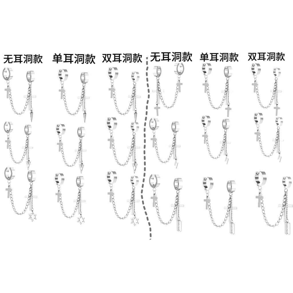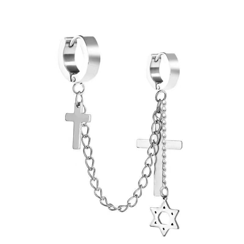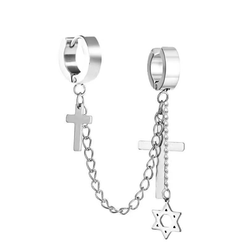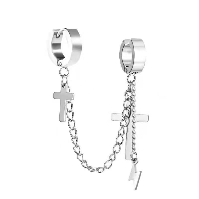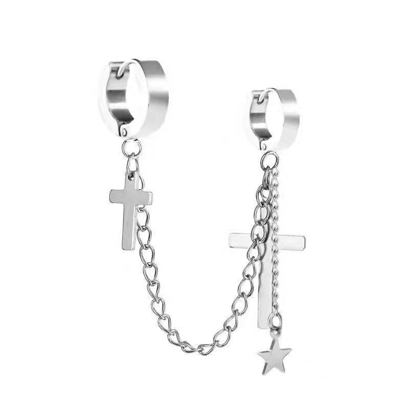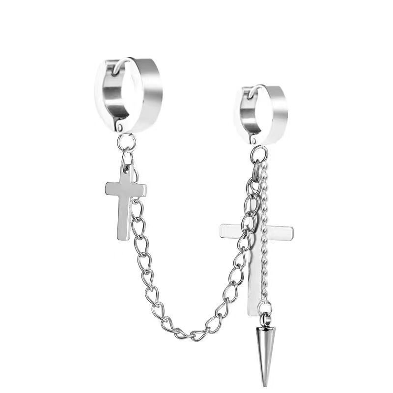Маленькие оптовые серьги-клипсы из нержавеющей стали, креативные аксессуары в виде креста, серьги-клипсы с цепочкой и кисточками, модные мужские персонализированные украшения, серьги.