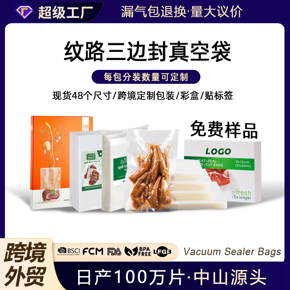 Пищевой вакуумный упаковочный пакет с трехсторонней уплотнением, самозапечатленный мешок нейлон пластиковый насос прозрачный пластиковый пакет на заказ производитель